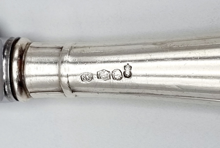 | Afmetingen | Mes lengte 21,2 cm en zilver gewicht (minus messen) 537 gram. | |