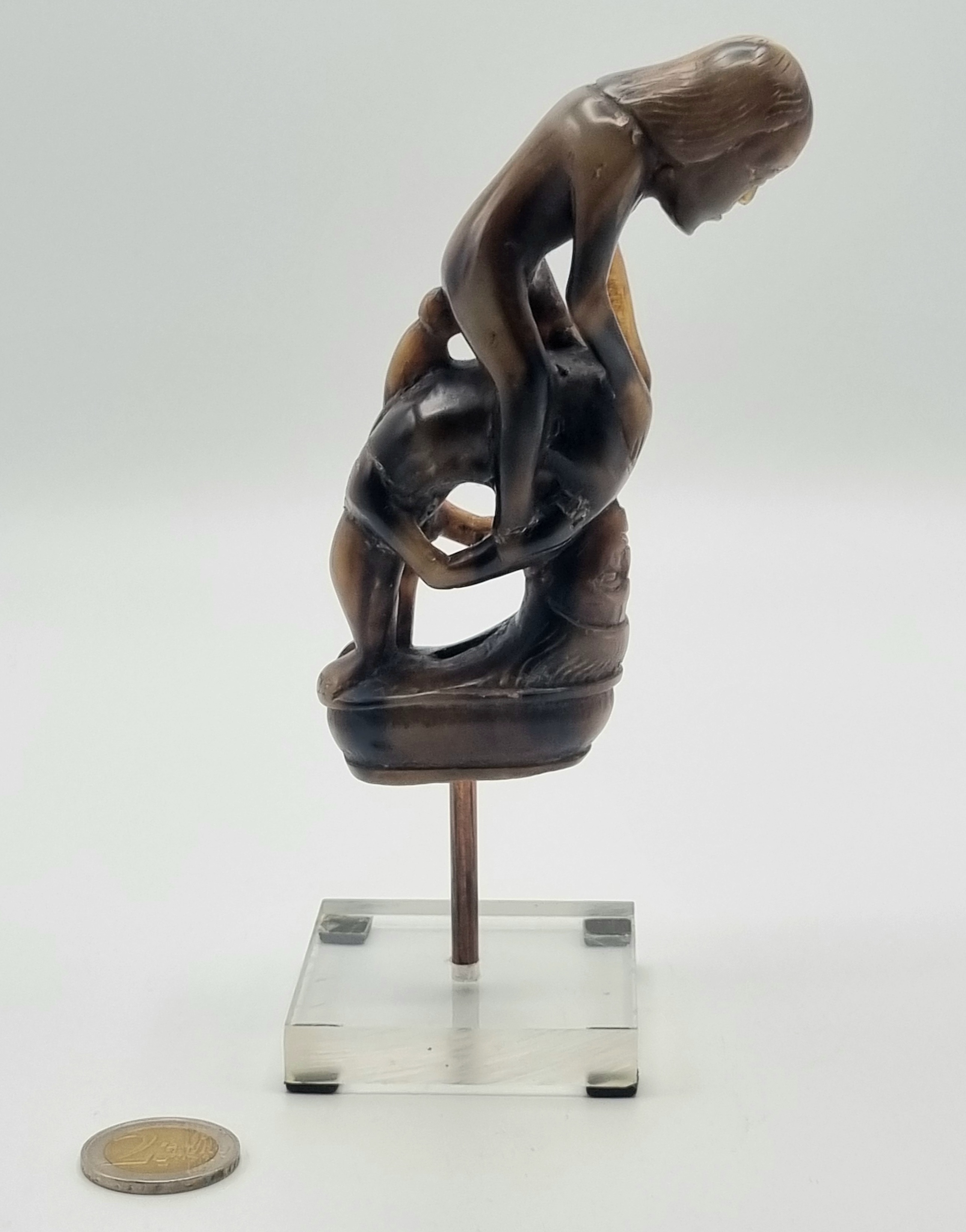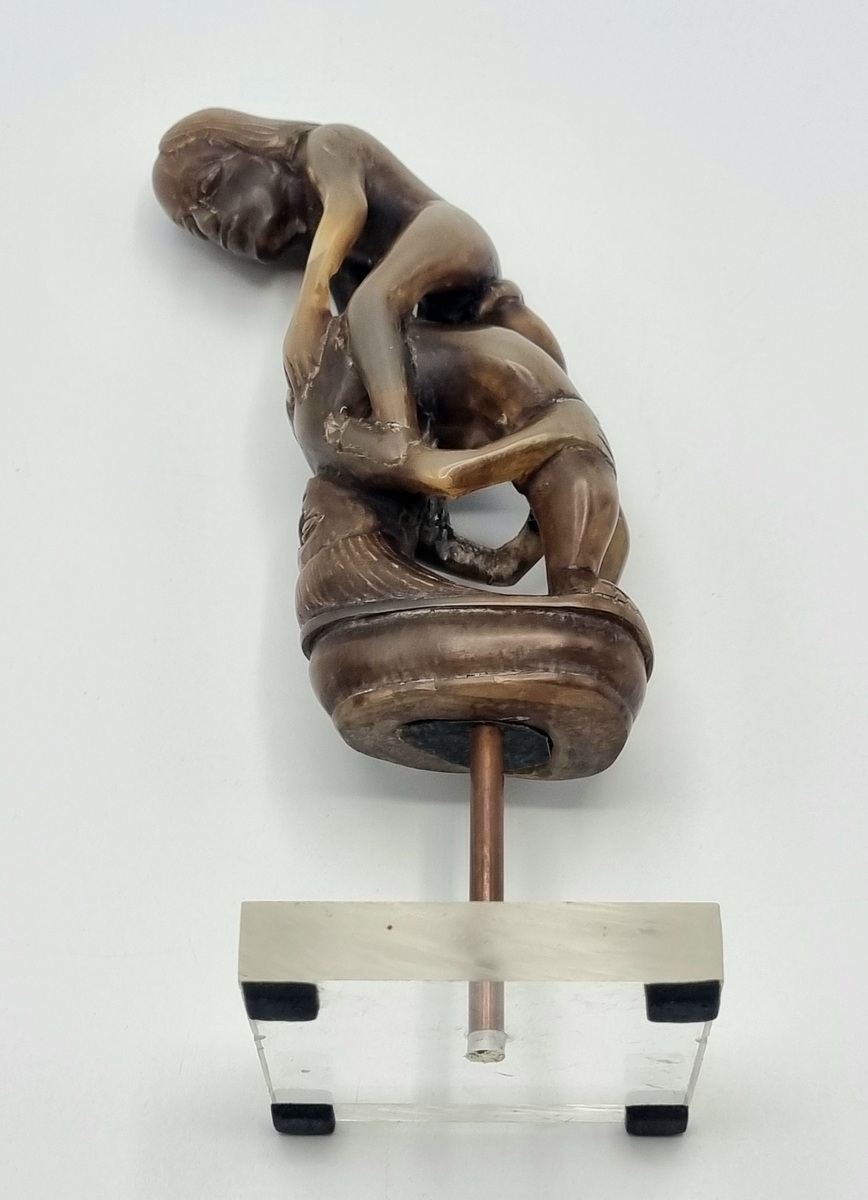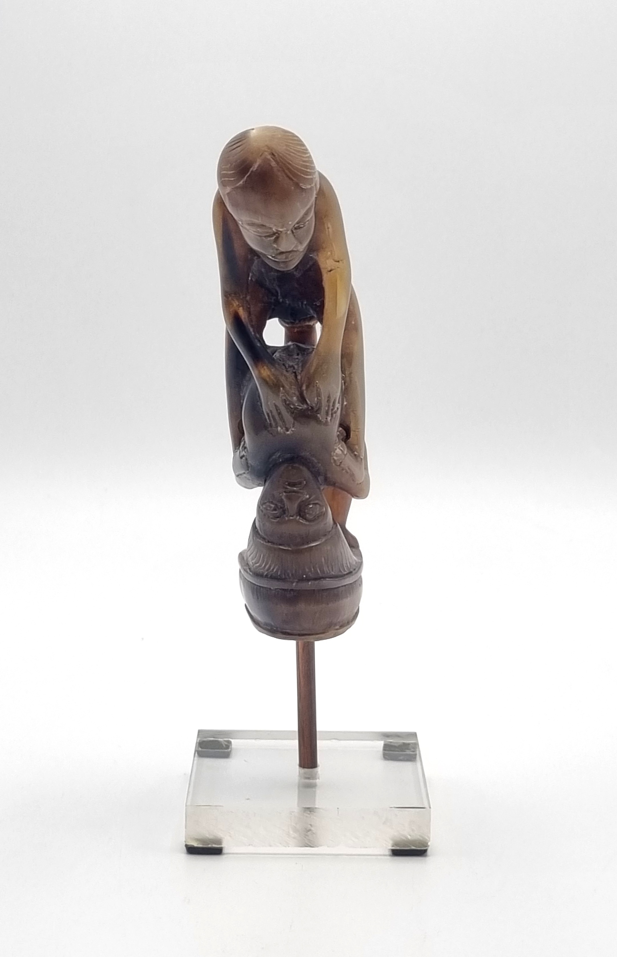 Hoornen beeldje met erotische voorstelling, oorspronkelijke een heft behorend bij een mes. Indonesië, begin 20e eeuw. |