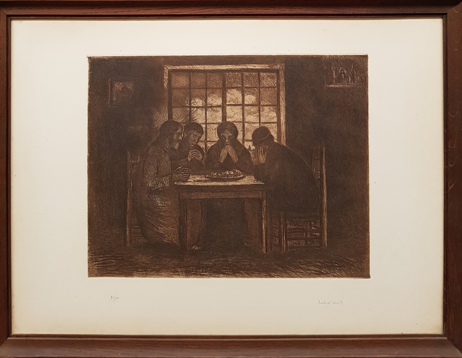 Ets "Het symbool der Kempen" door Jacob Smits (Rotterdam 1855 - Achterbos Mol 1928. Met potlood gesigneerd en genummerd. Omstreeks 1900. |