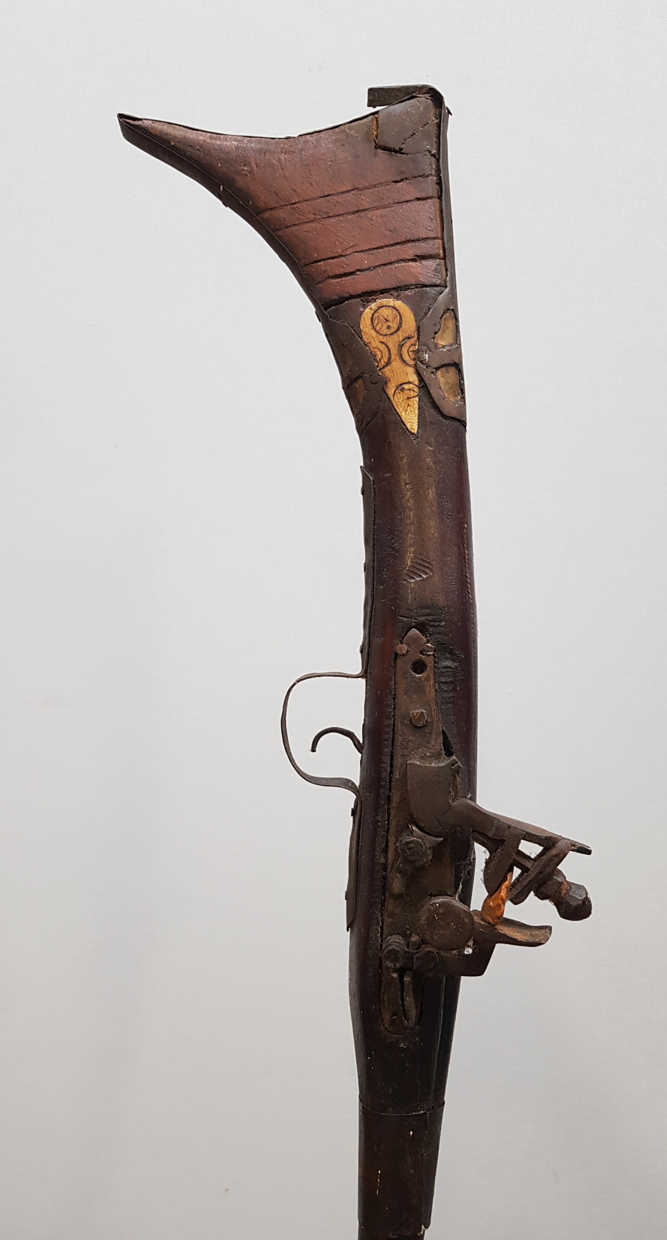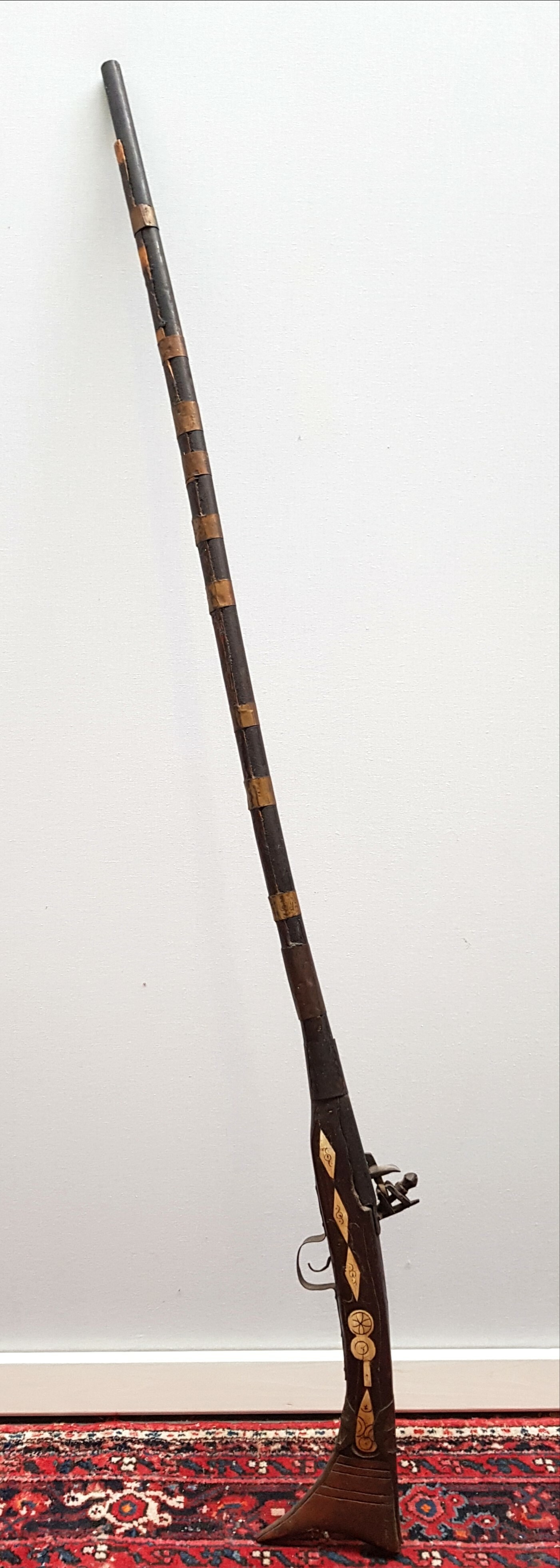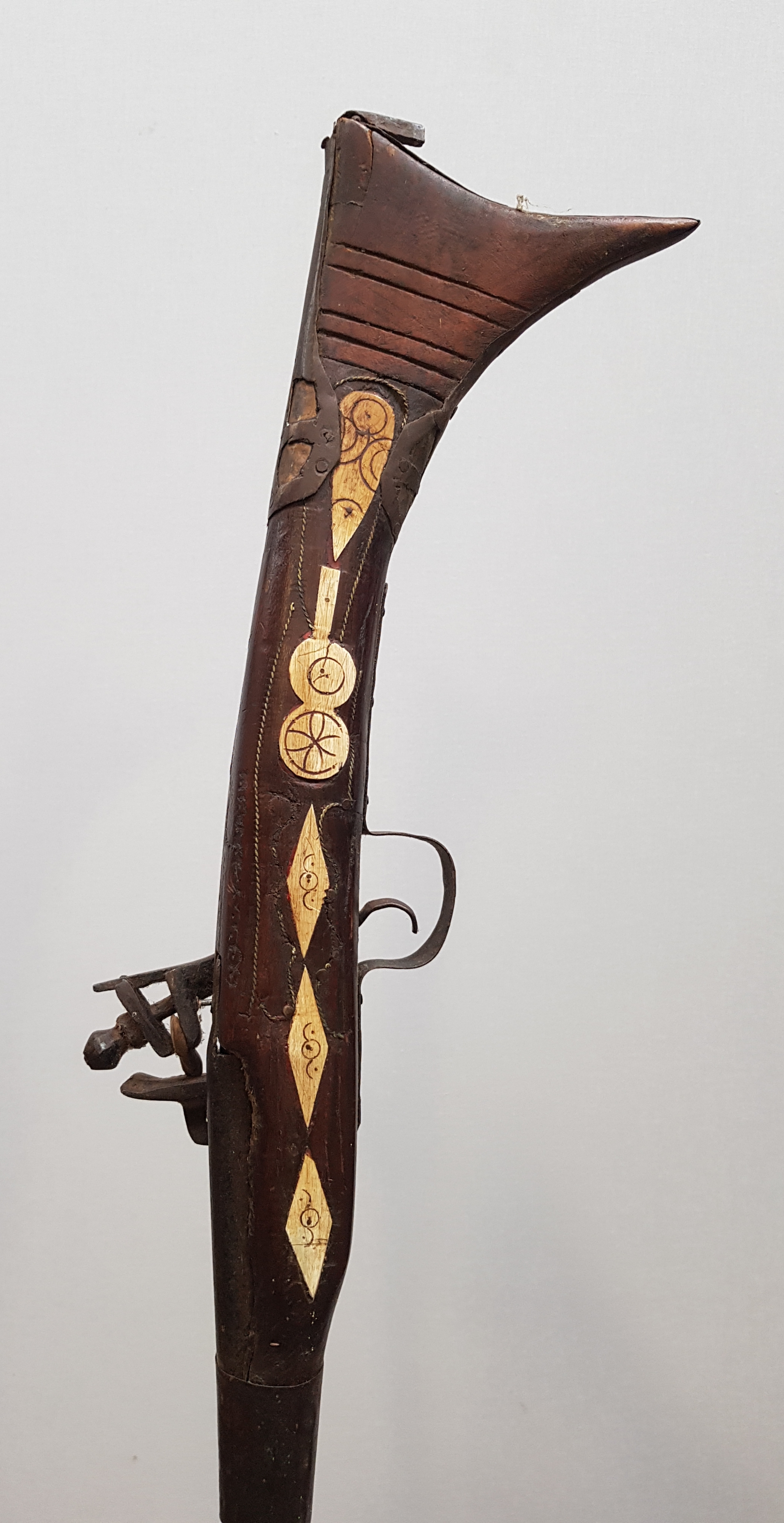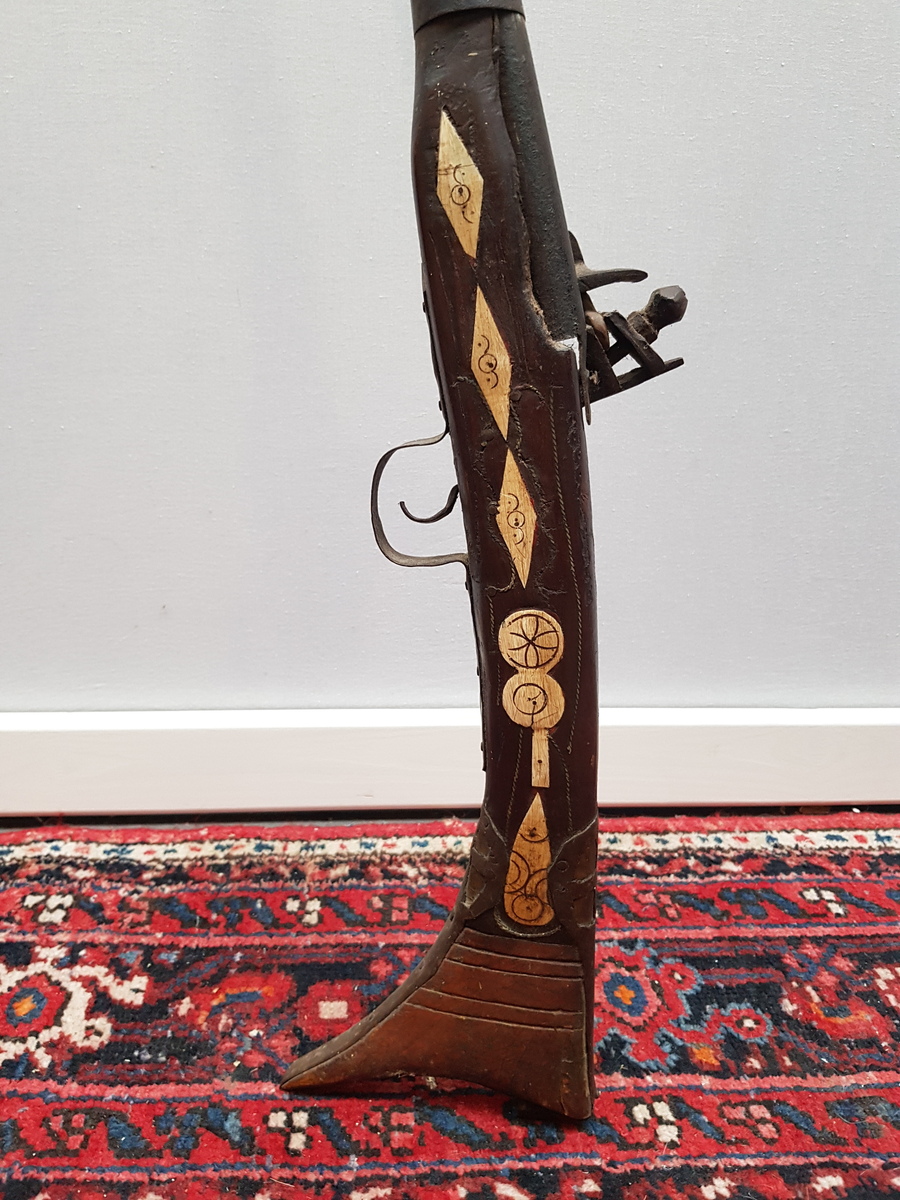 Afghaans voorlader geweer met benen versieringen. Omstreeks 1900. |