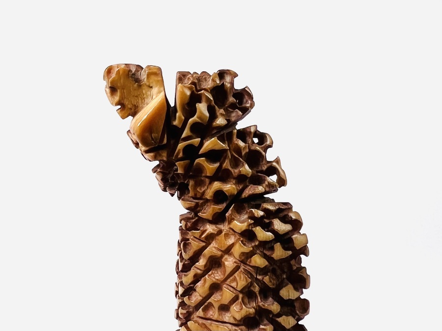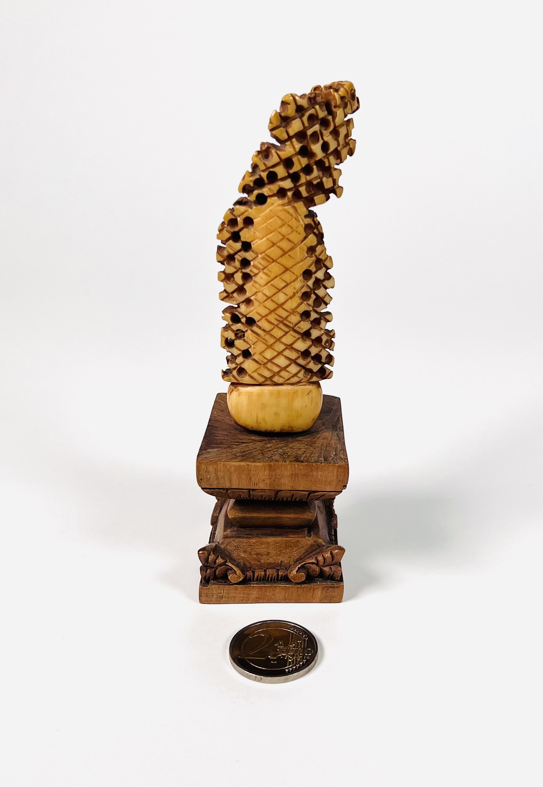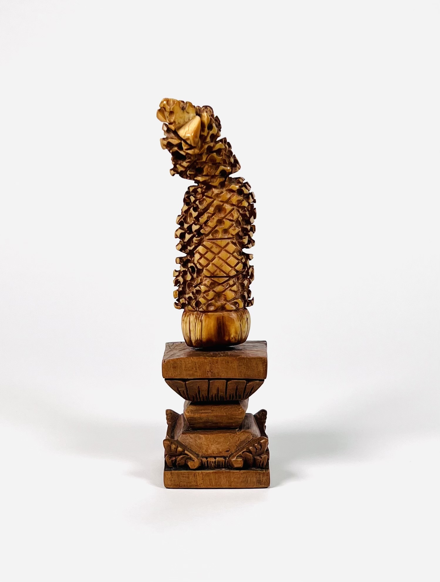Madoera krisgreep op een houten sokkel, gebaseerd op de levensboom van het Oost-Javaanse eiland Madoera. 18e eeuw. |
