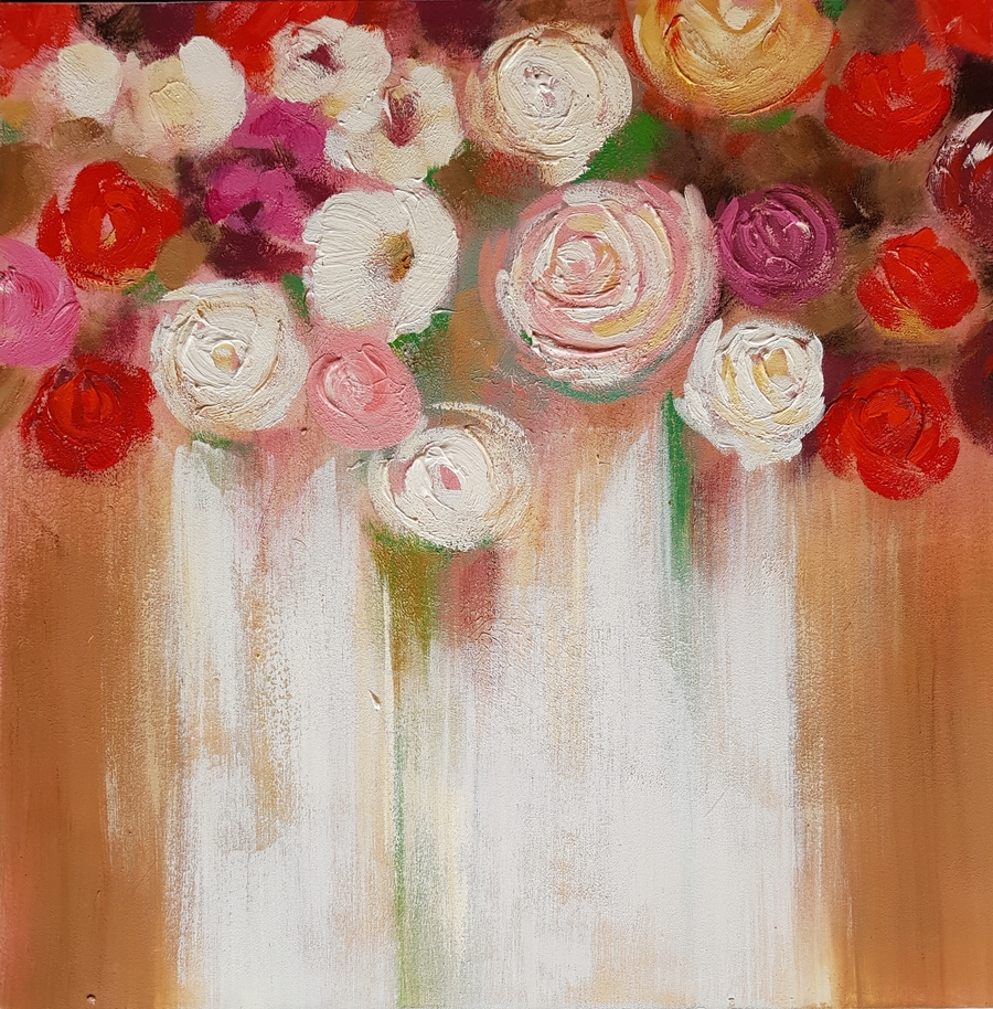 Schilderij van modern bloemstilleven, acrylverf op linnen. Anoniem, 21e eeuw. |