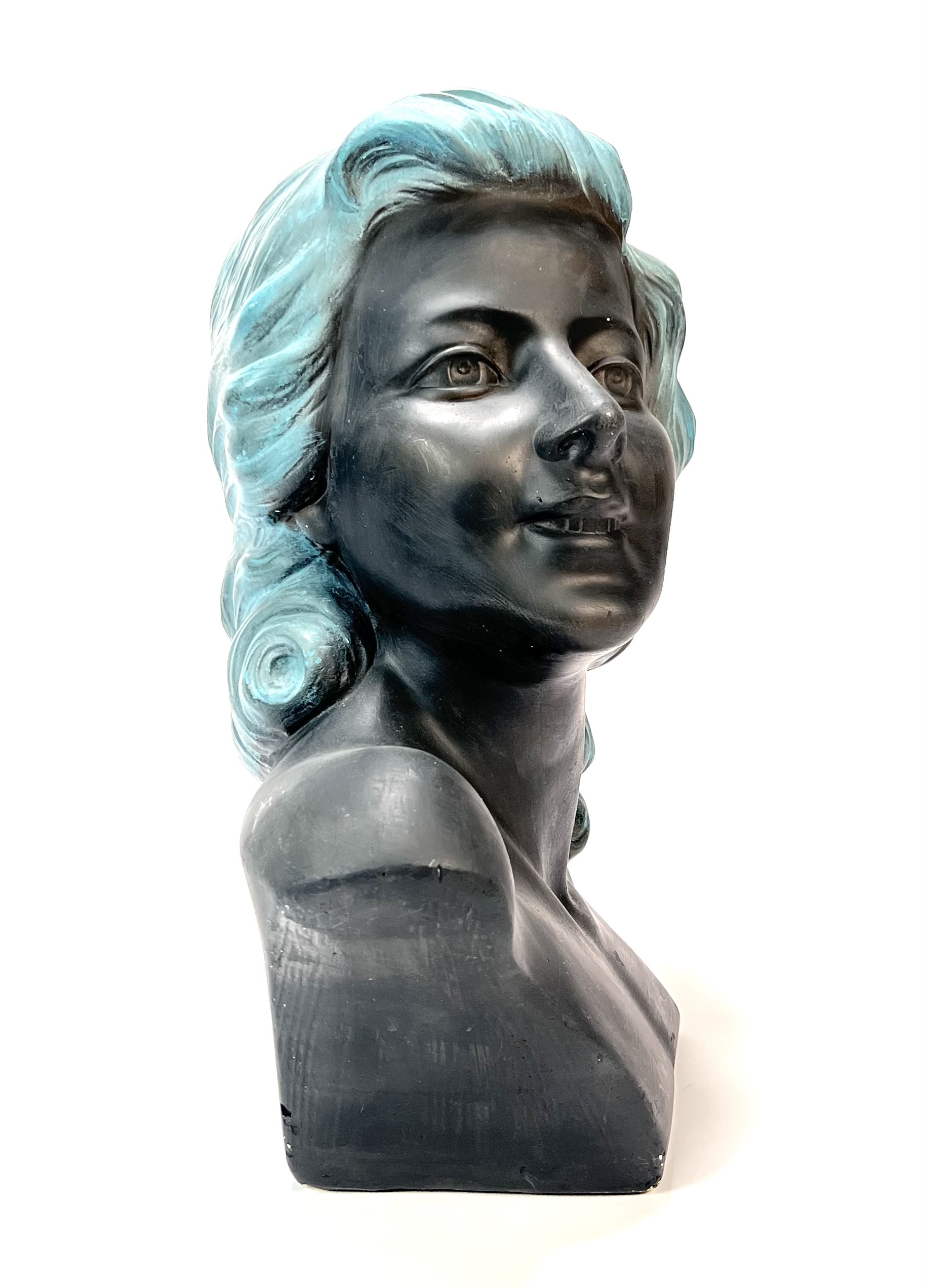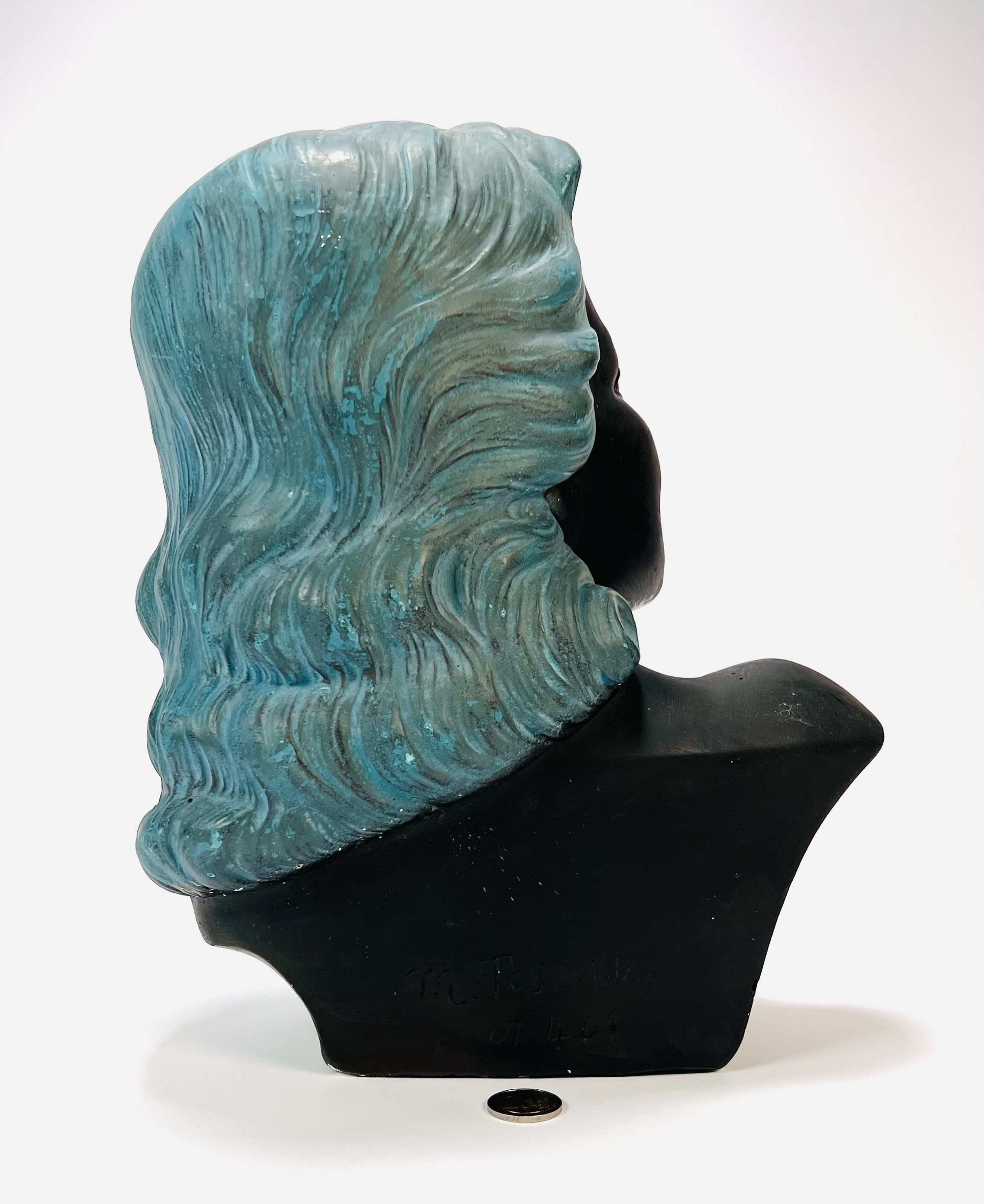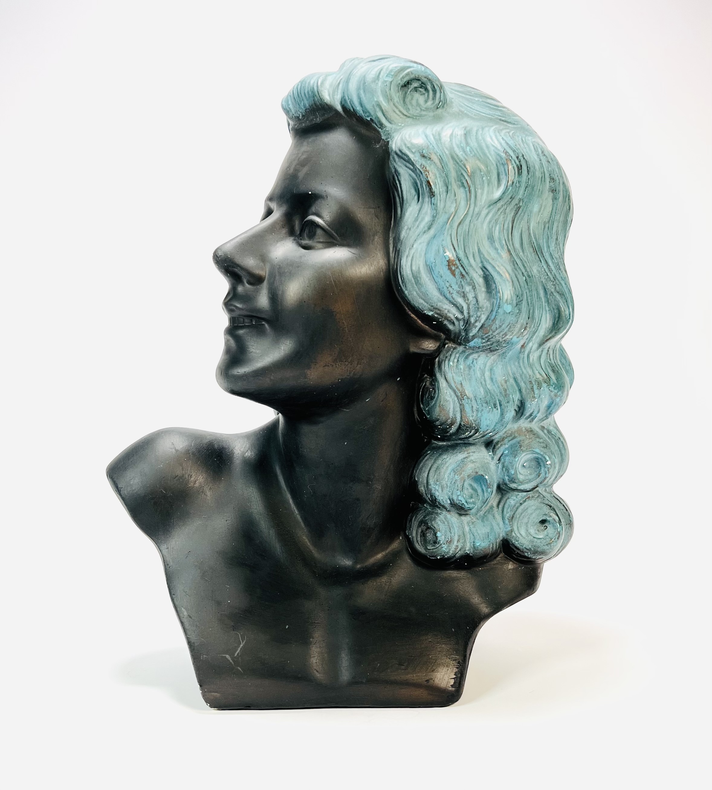 Beeld van een Art Deco damesbuste door M. Toscana. Aan de achterzijde gesigneerd en voorzien van modelnummer 401. Italië, jaren 30/40. |