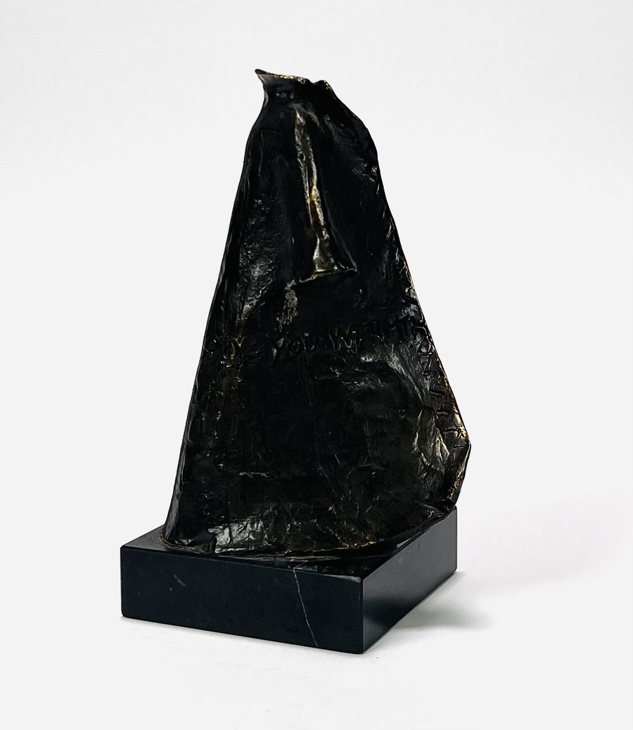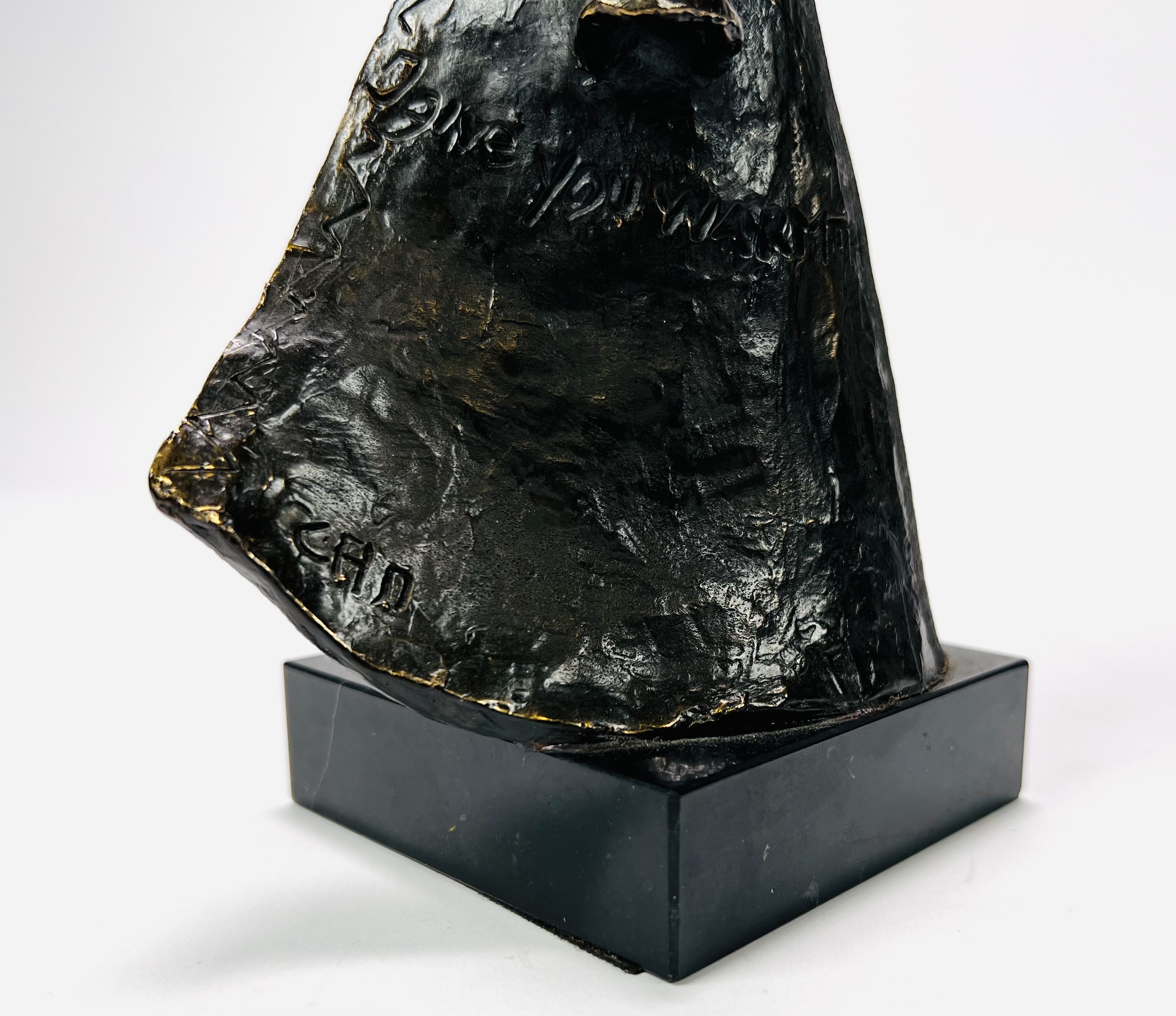 Bronzen beeldje met de titel “ I give you warmth” door Corry Ammerlaan-van Niekerk. Gesigneerd CAN, 21e eeuw. |