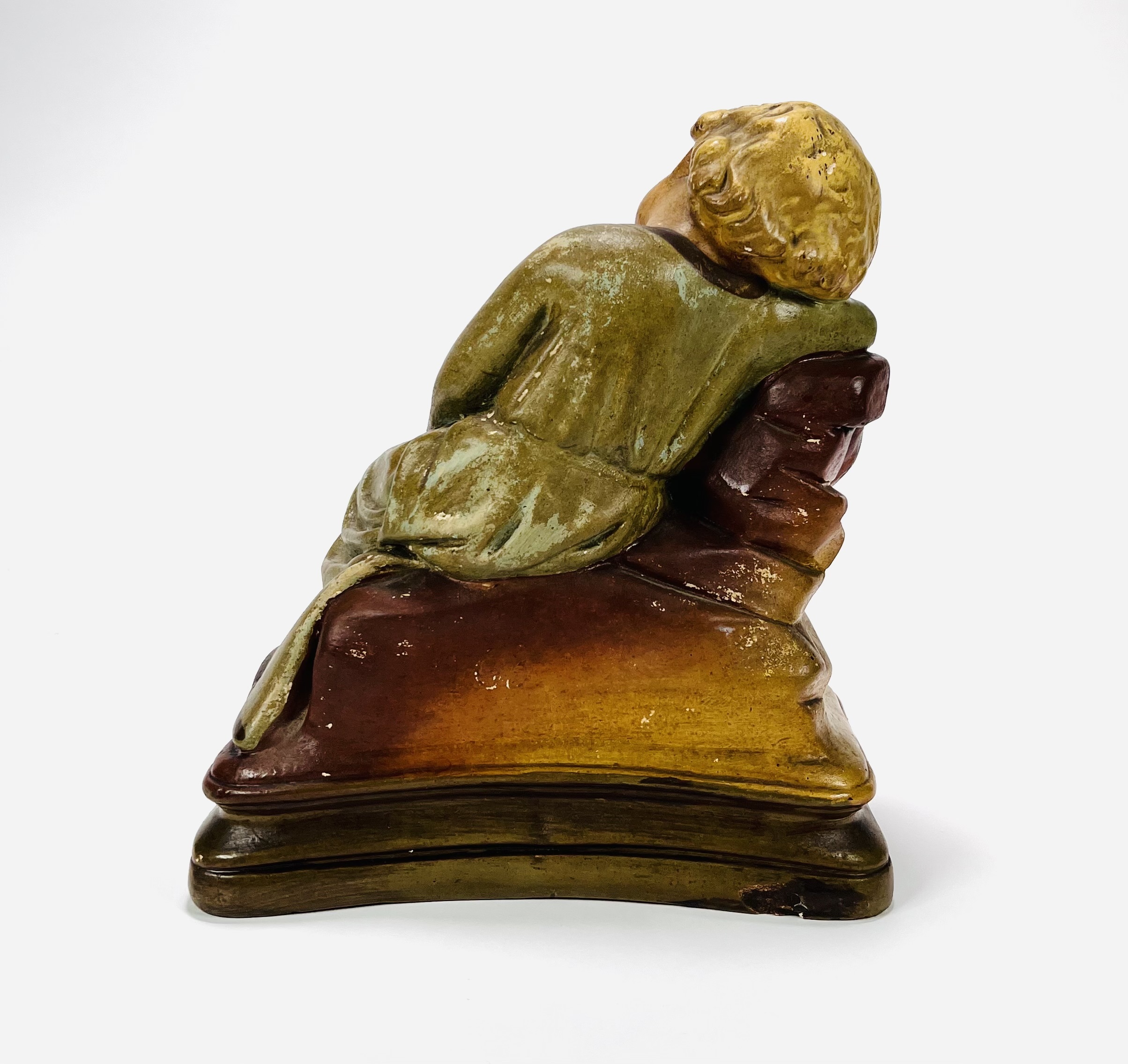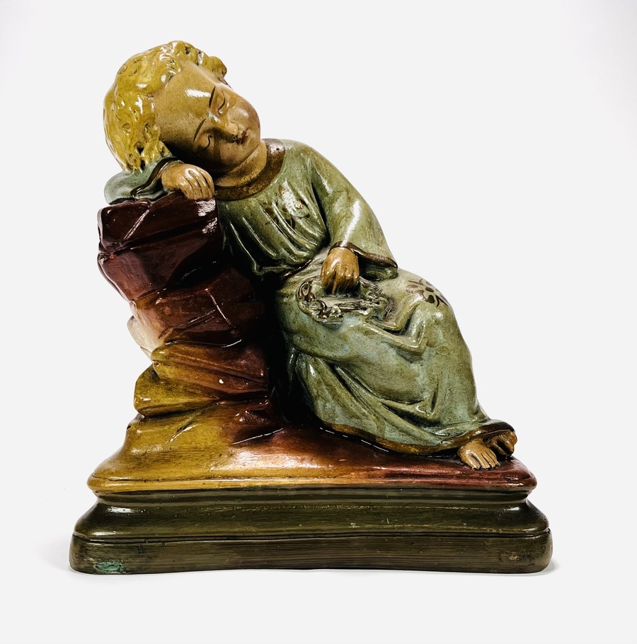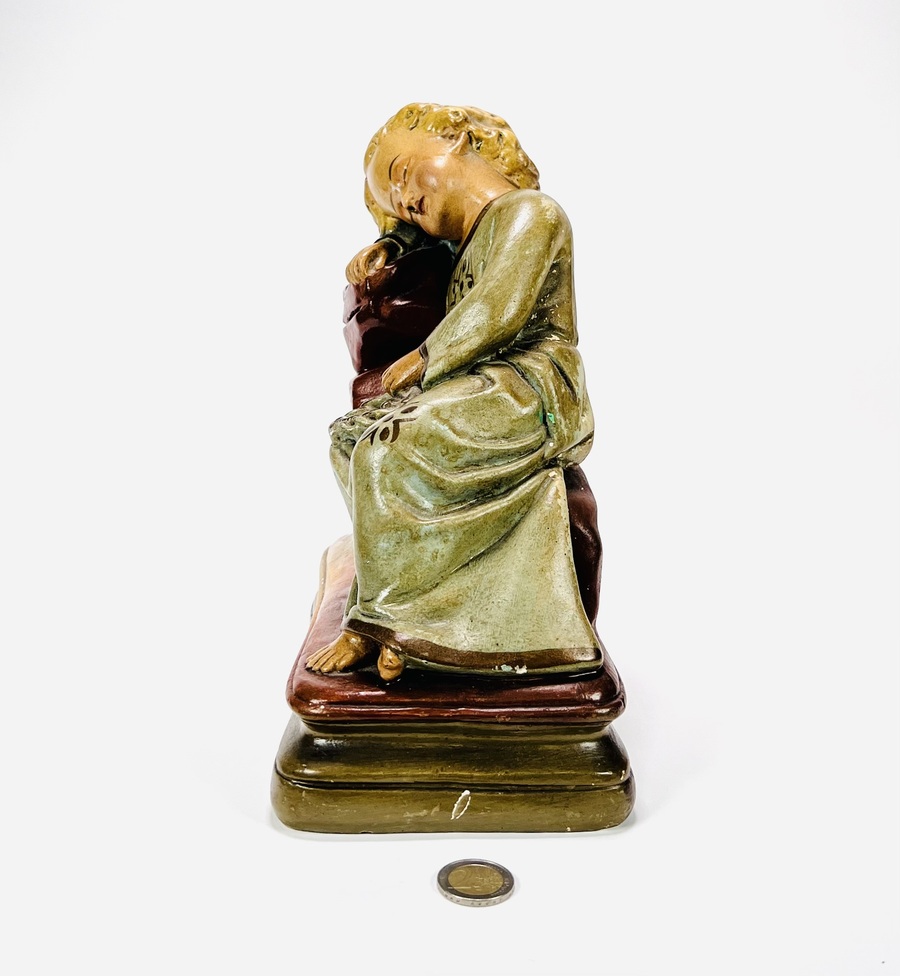 Gipsen polychroom beschilderd devotiebeeld van de jonge Christus met doornenkroon. Eerste helft 20e eeuw. |