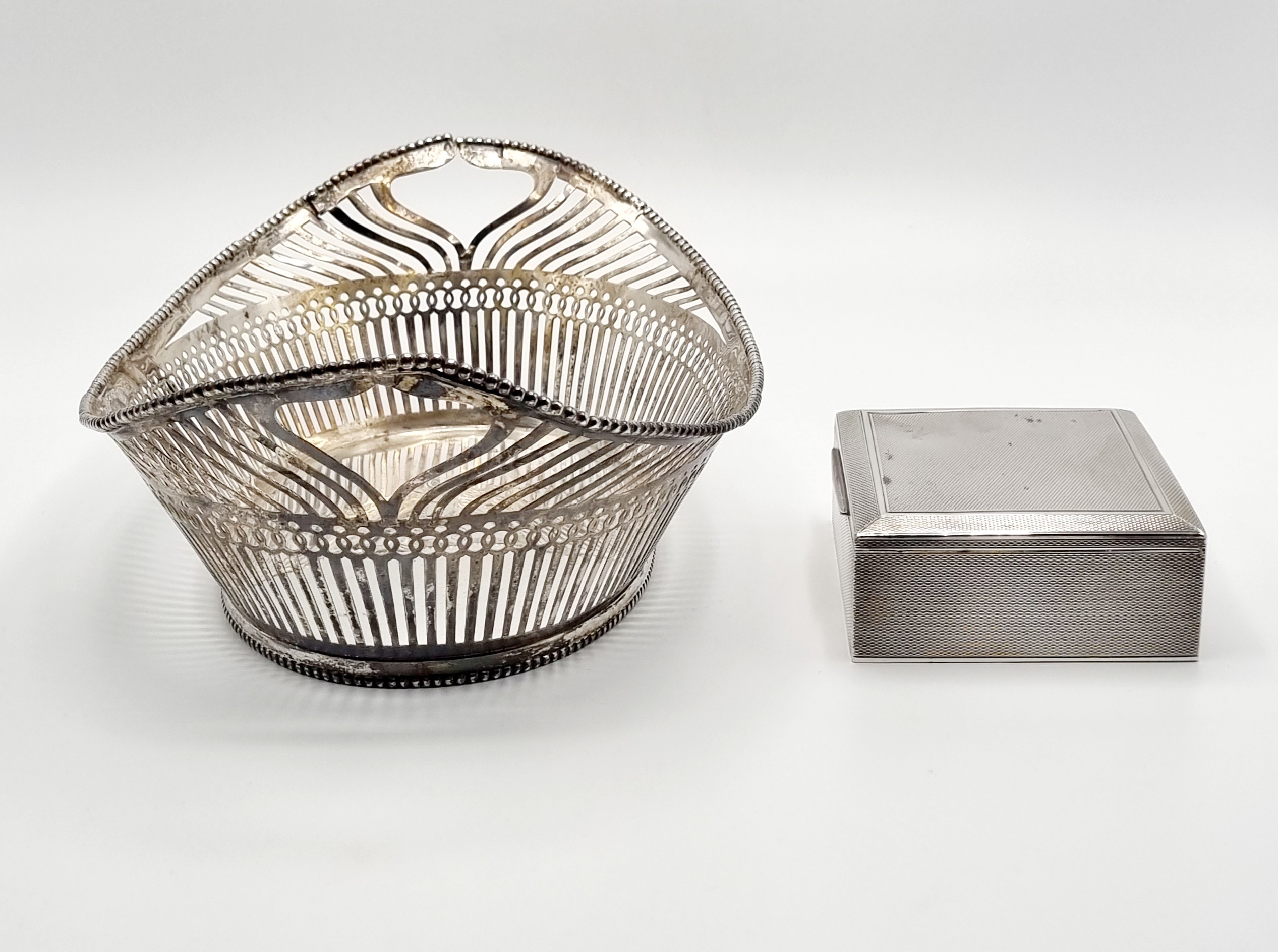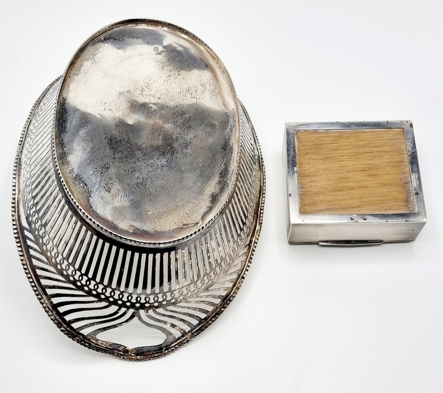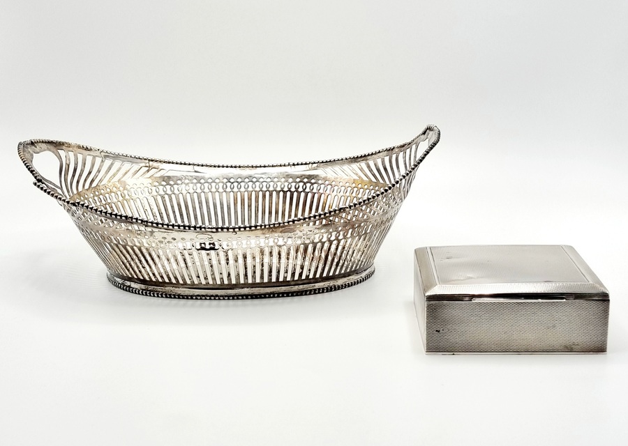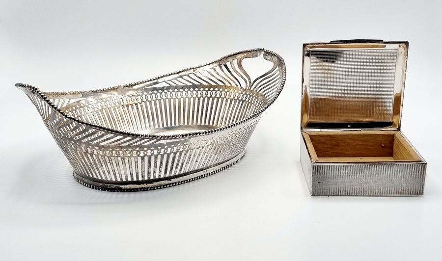 Zilveren broodmand en sigarettendoos