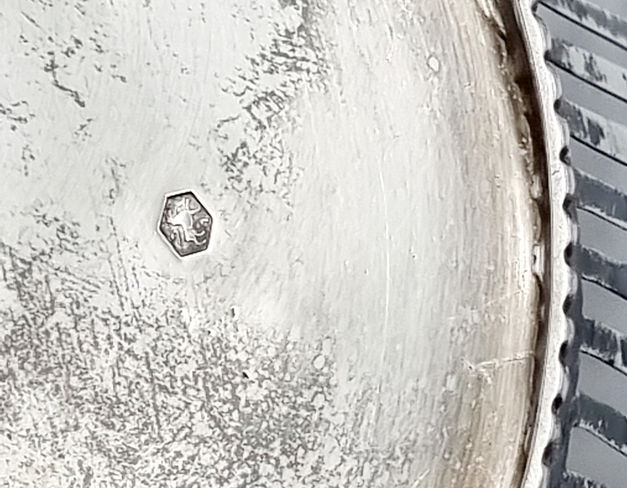 Zilveren ajour bewerkte broodmand gemerkt lopende leeuw 2 en een zilveren sigarettendoos gemerkt 835. 20e eeuw. |