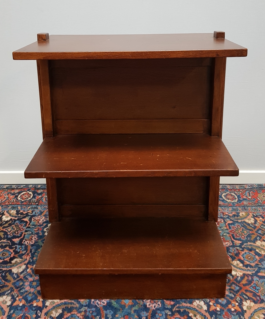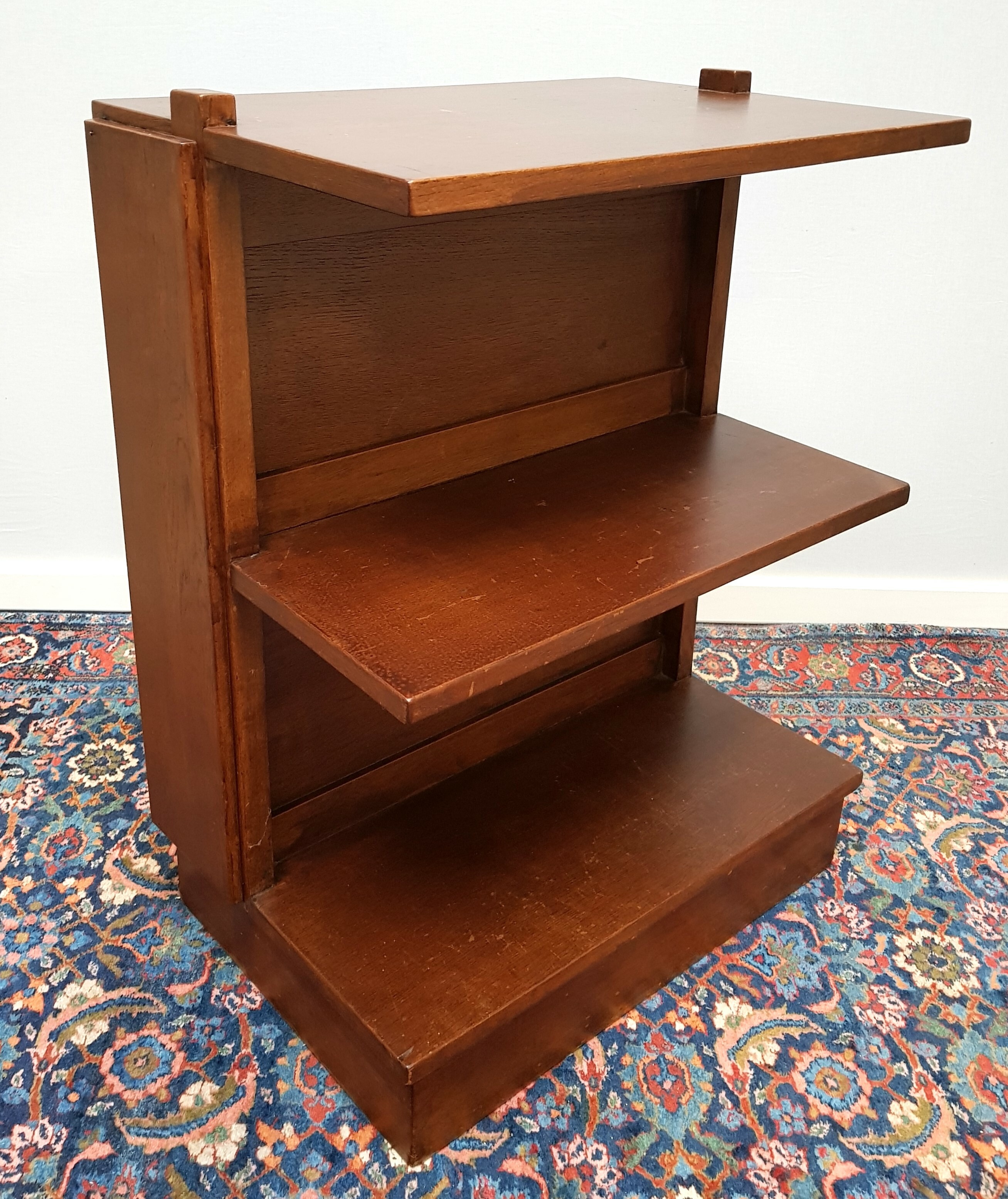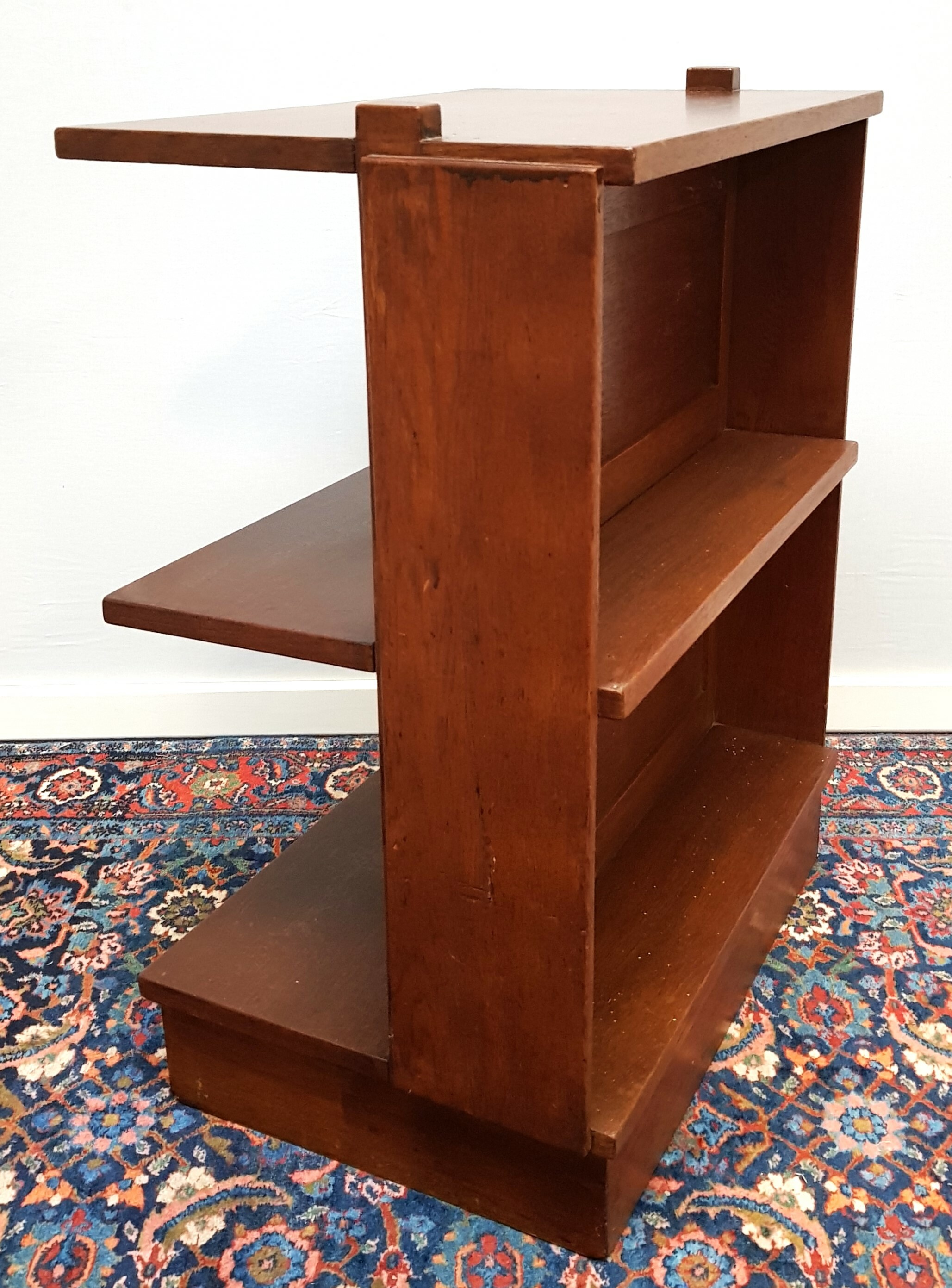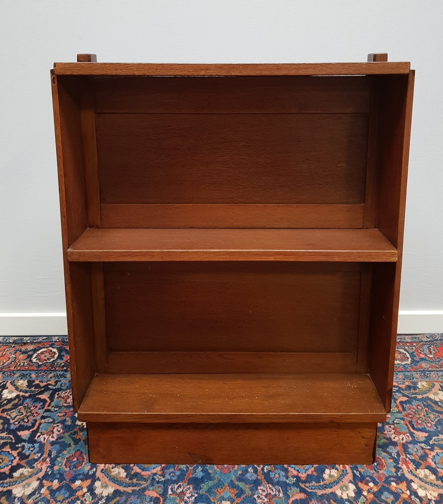 Eikenhouten Amsterdamse School boekenkastje, toegeschreven aan architect Siebe Jan Bouma. Eerste helft 20e eeuw. |