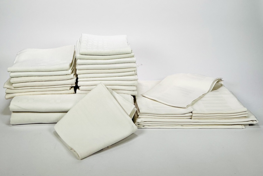 Lot damast met tafelkleden en servetten. Midden 20e eeuw. |