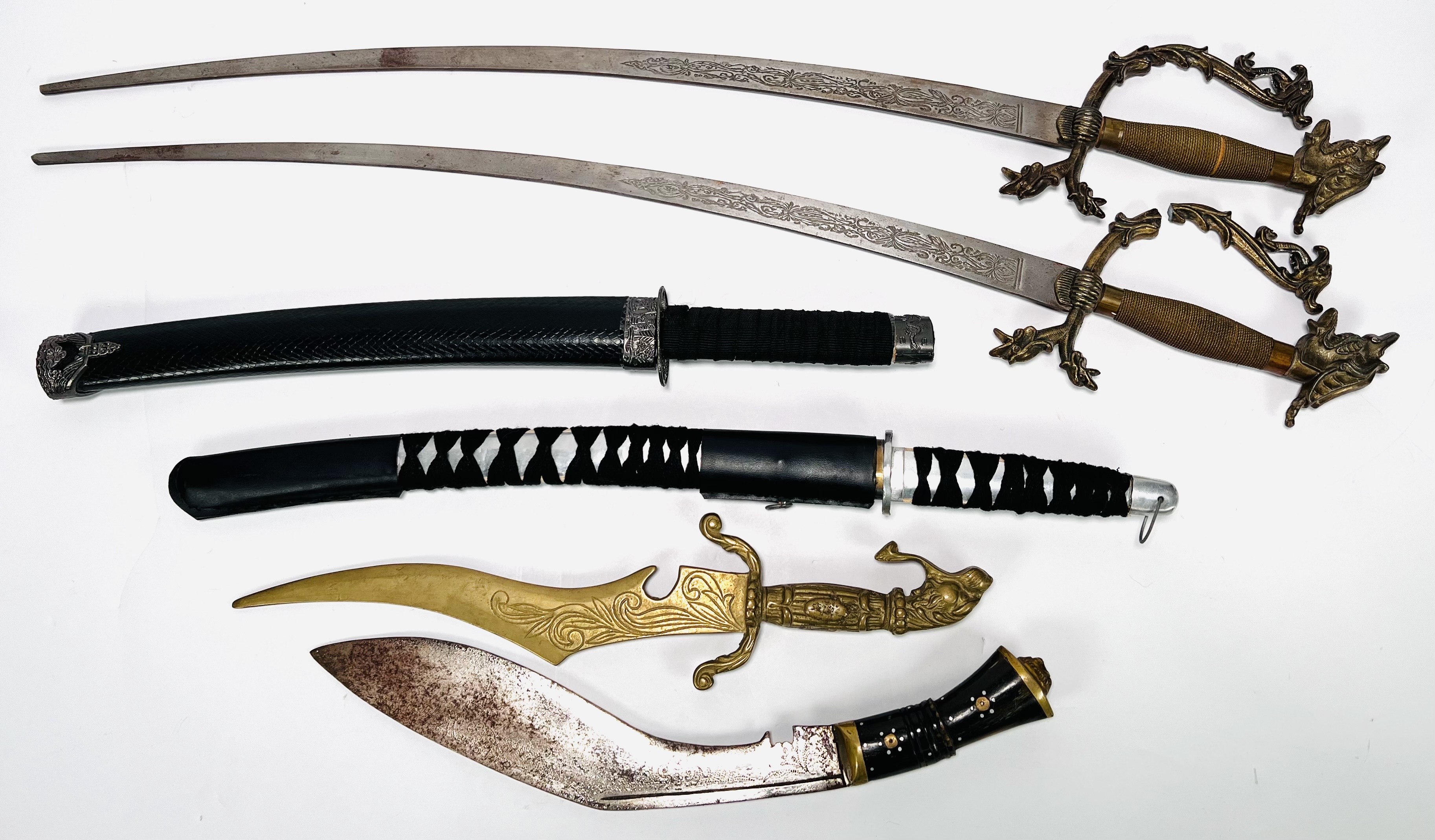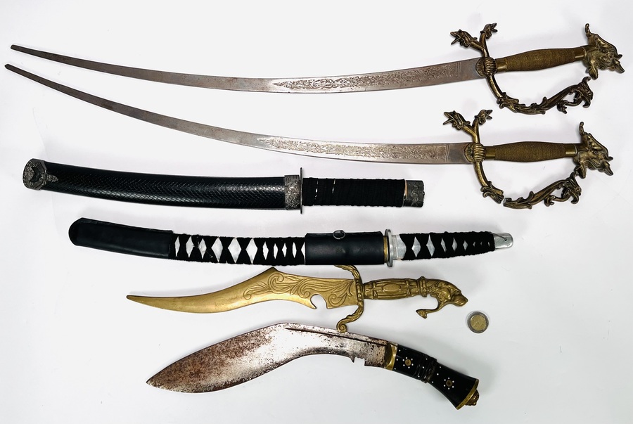 Zes oriëntaalse dolken en messen, 20e eeuw. |