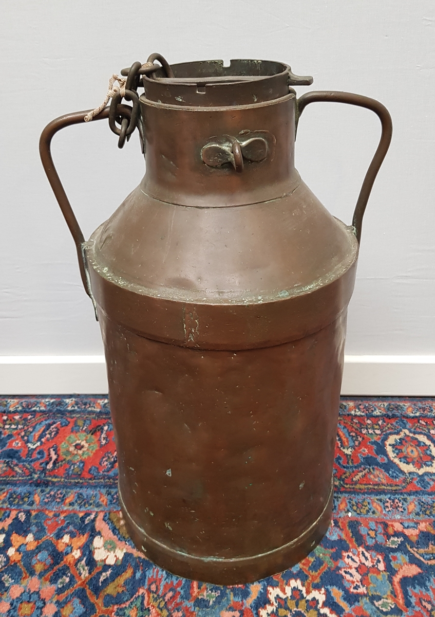 Koperen melkbus met deksel, eerste helft 20e eeuw. |