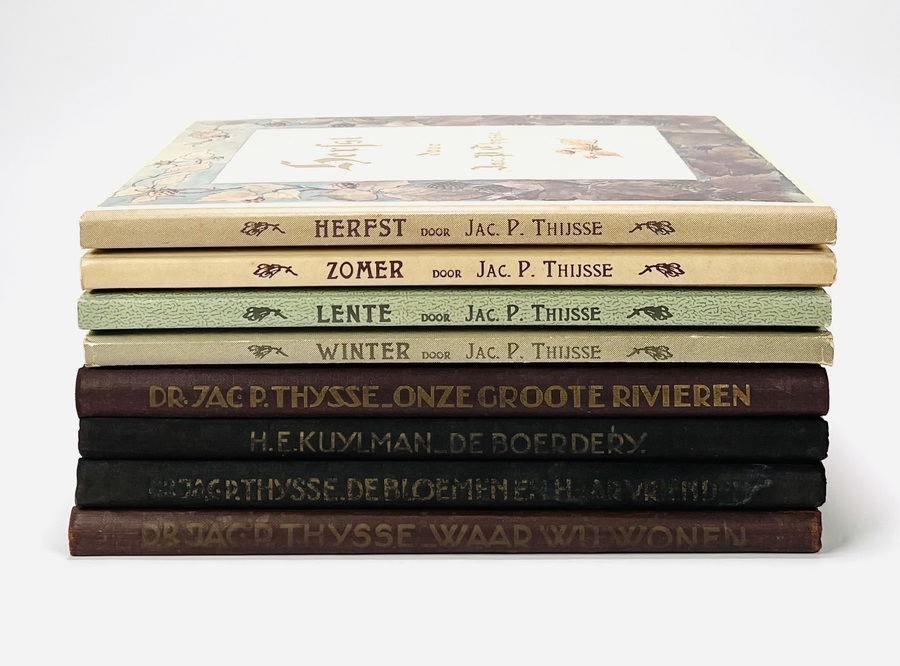 Acht Verkade plaatjesalbums waaronder Jac P. Thijsse, "De vier Jaargetijden", een heruitgave uit 1975, "De Bloemen en haar Vrienden", "Onze Groote Rivieren" en meer. Uitgaven uit de eerste helft 20e eeuw. |