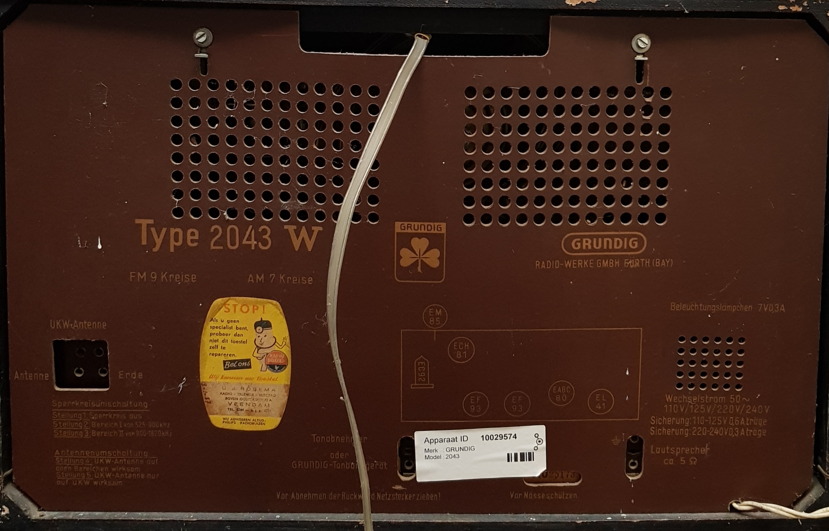 Radio van het merk Grundig, type 2043 W uit 1954. |