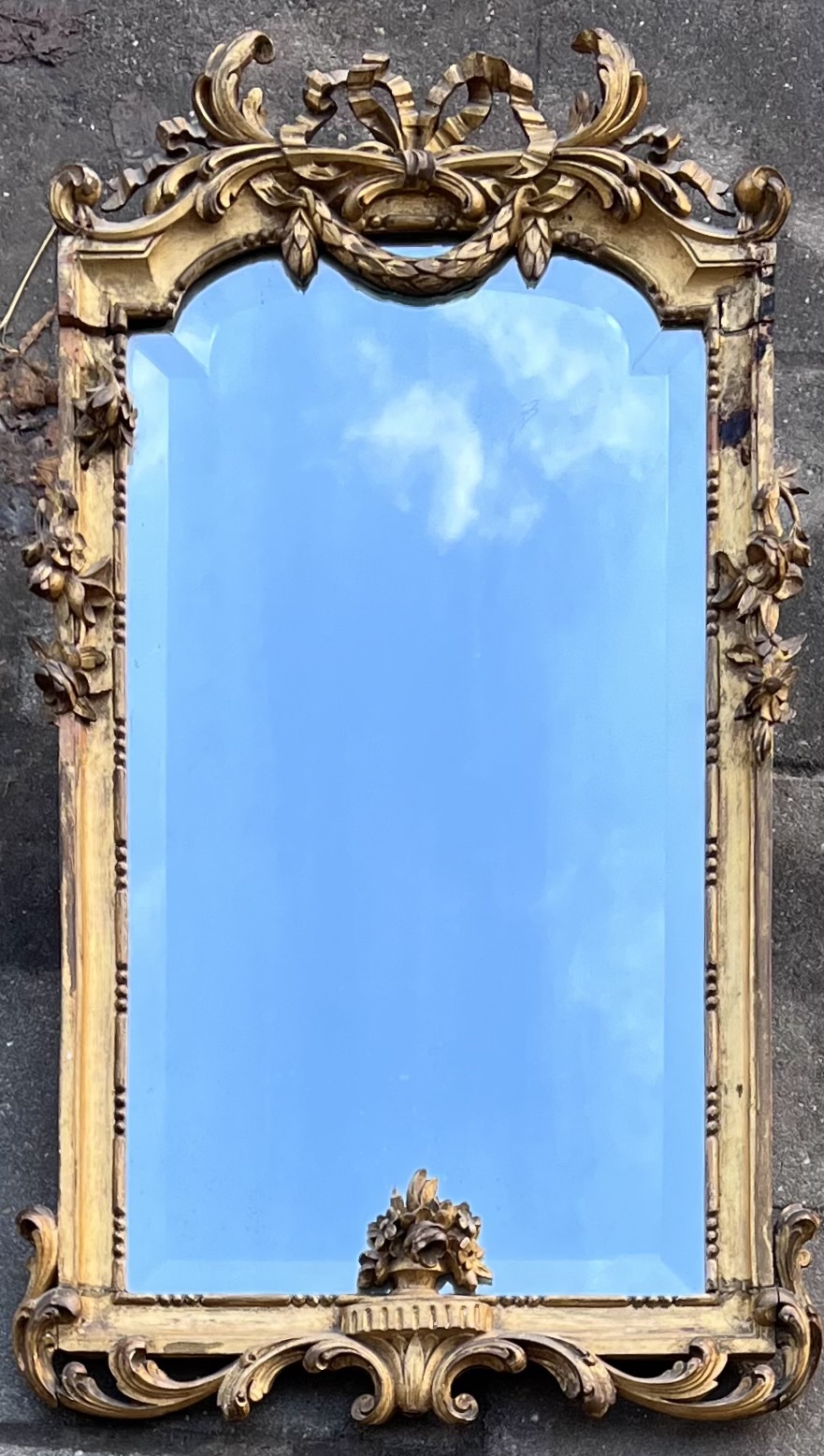 Facet geslepen Franse spiegel met een hand gestoken lijst, 19e eeuw. |