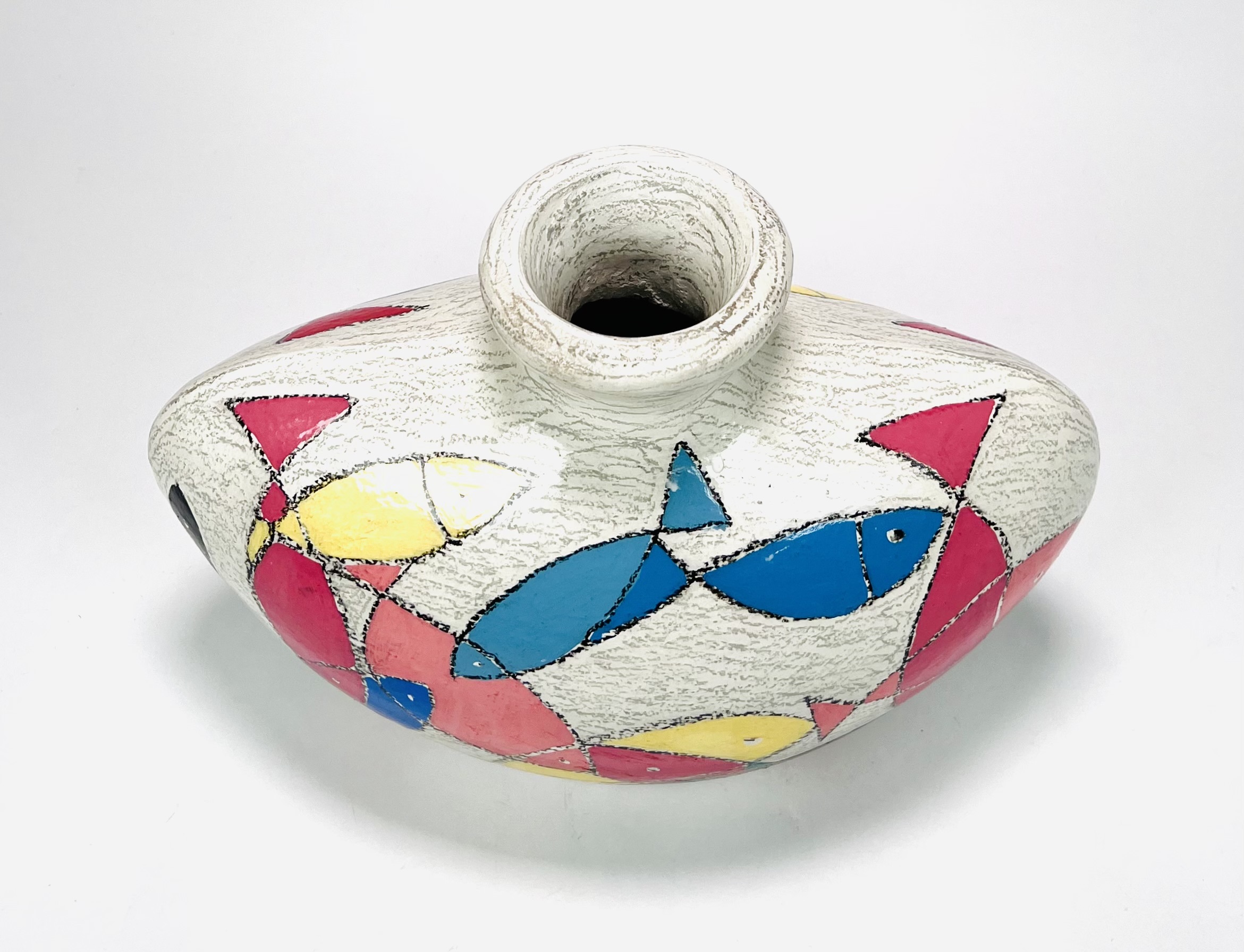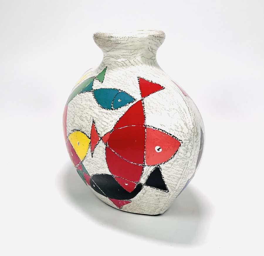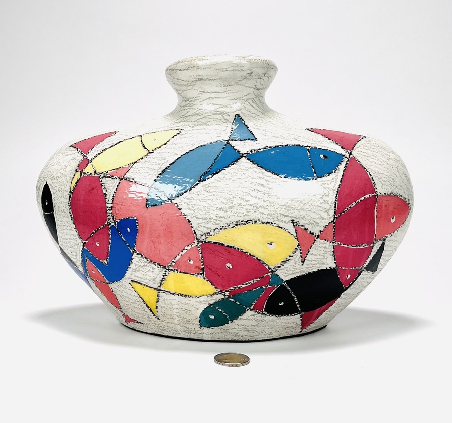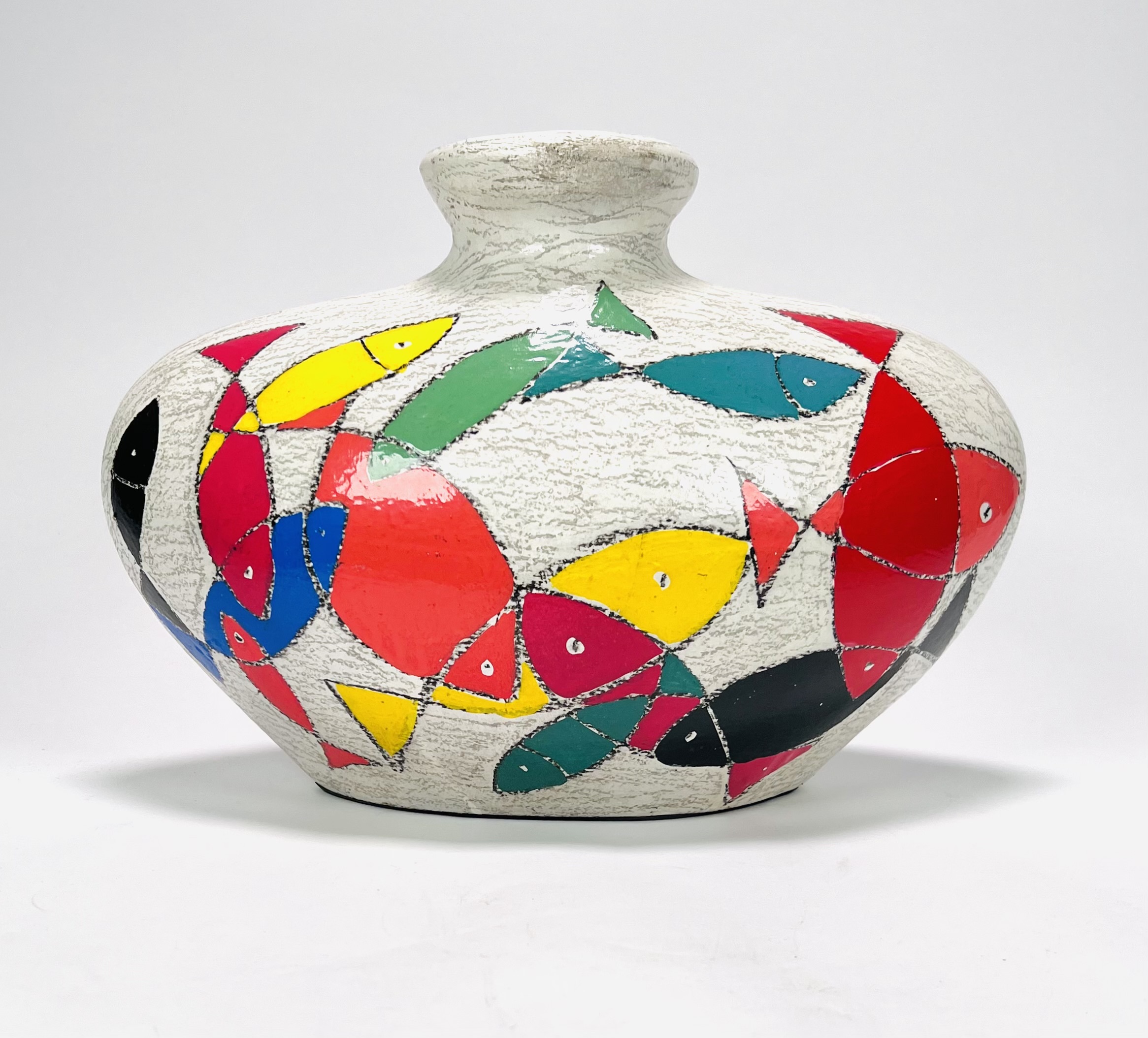 Keramieken vaas met handbeschilderd vissenpatroon, derde kwart 20e eeuw. |