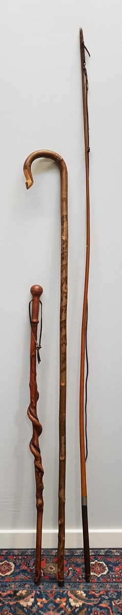Paardenzweep, houten wandelstok en een houten herdersstok. Midden 20e eeuw. |