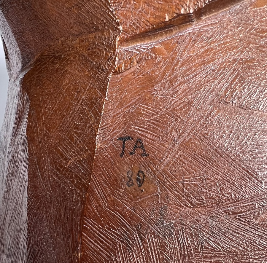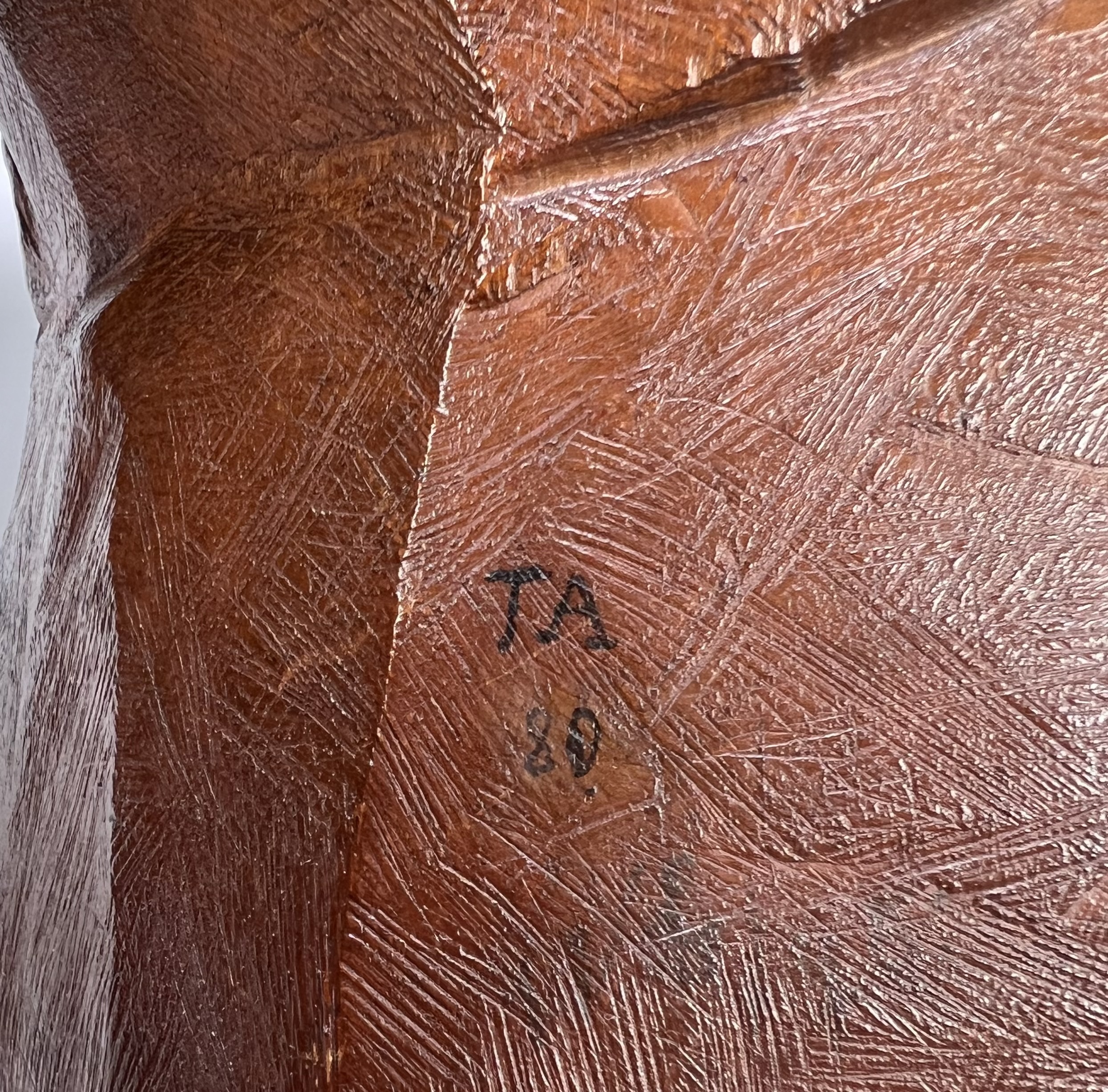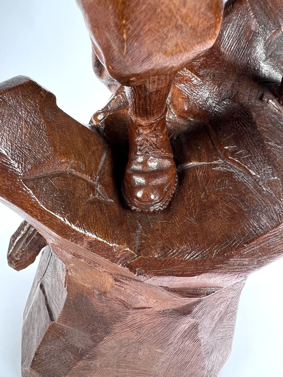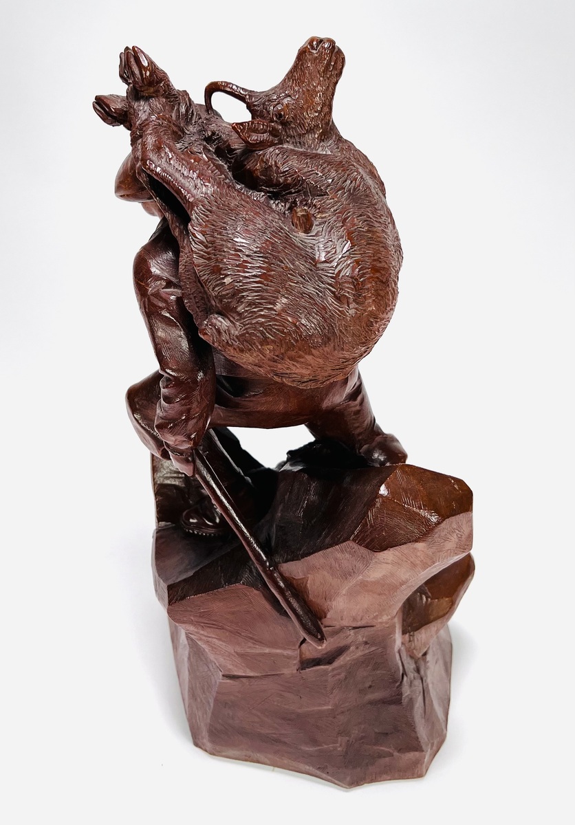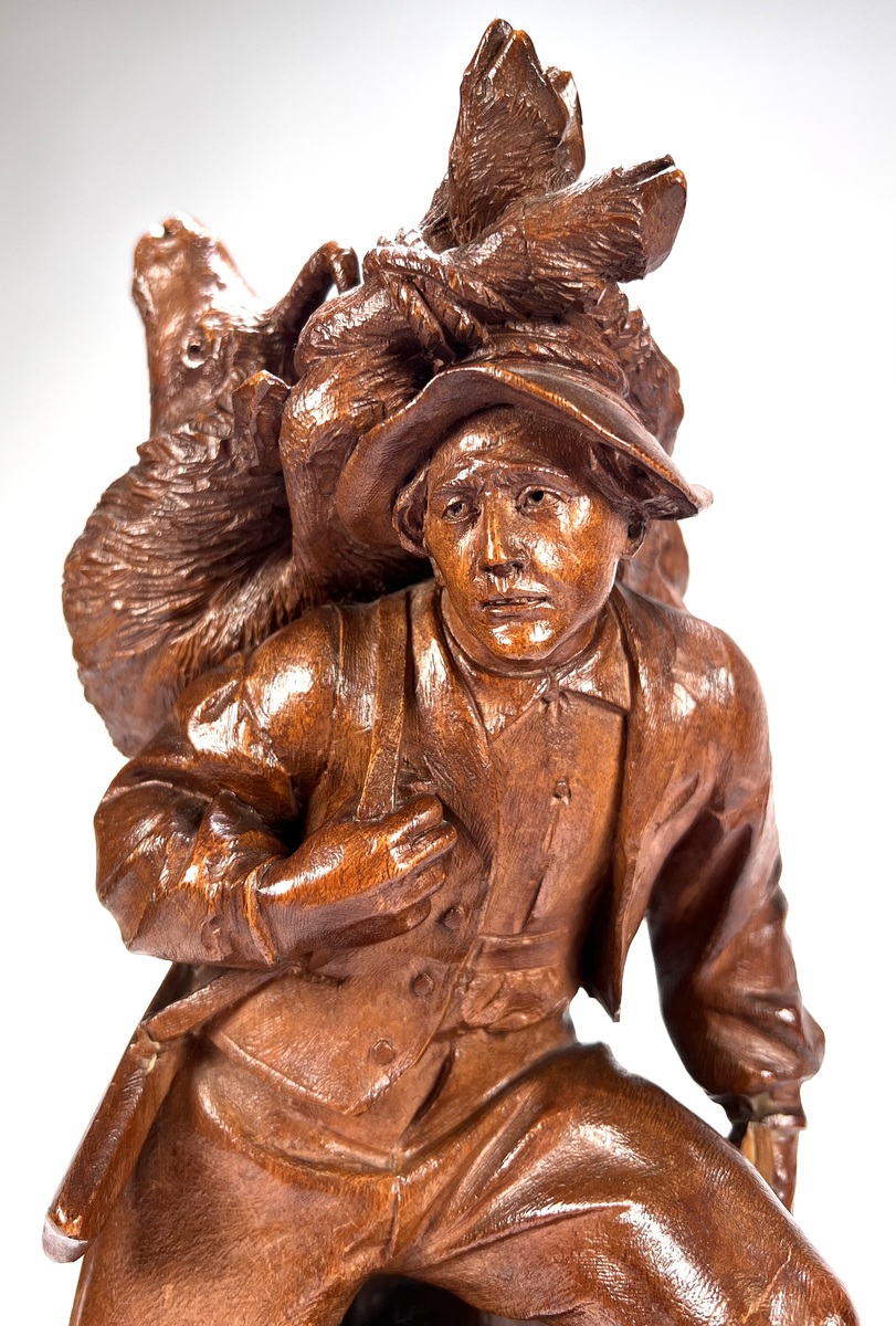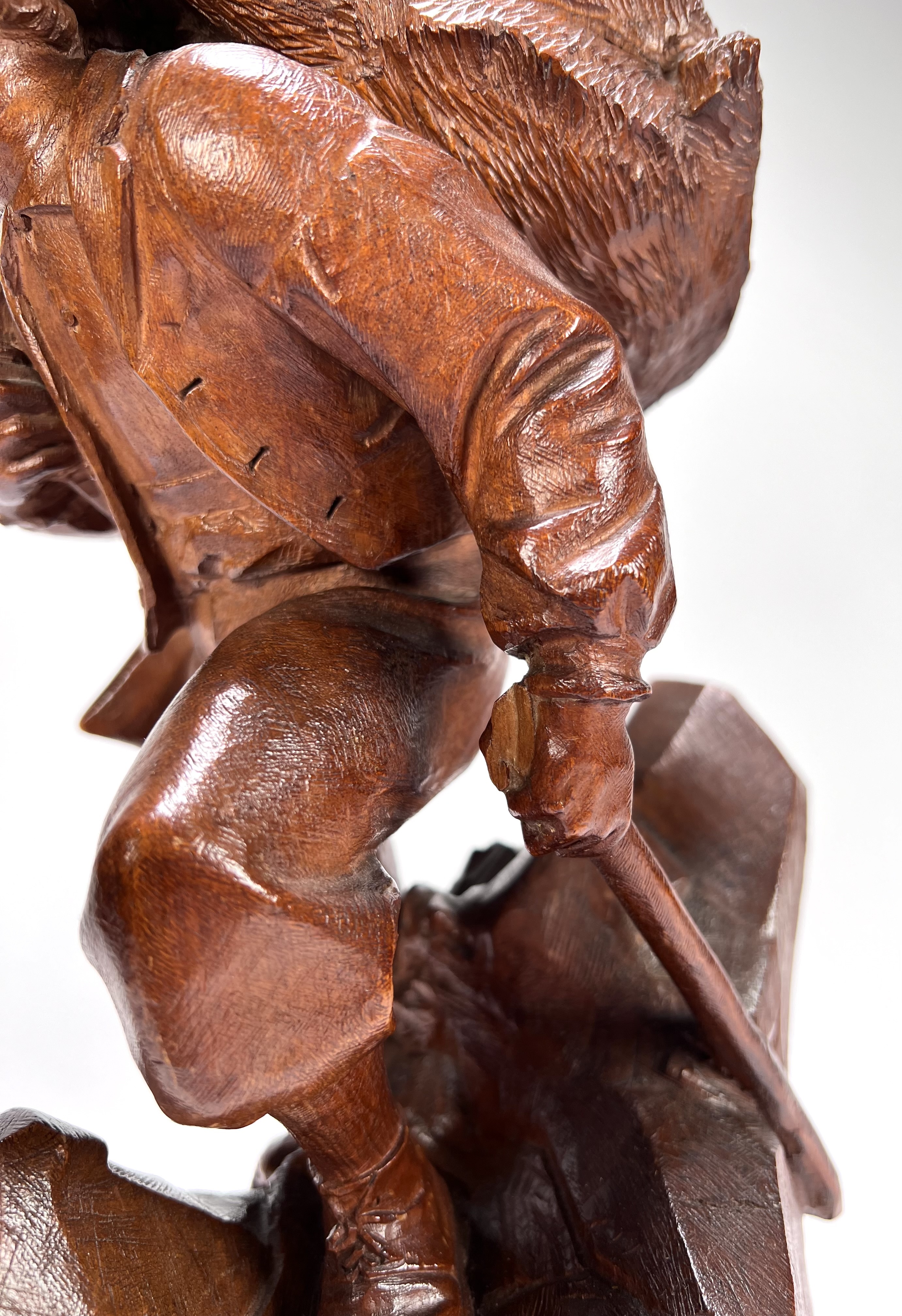 Houtgestoken Schwarzwald beeld van een jager met gems op de rug. Aan de achterzijde gemonogrammeerd en vermelding 80. Duitsland, 20e eeuw. |