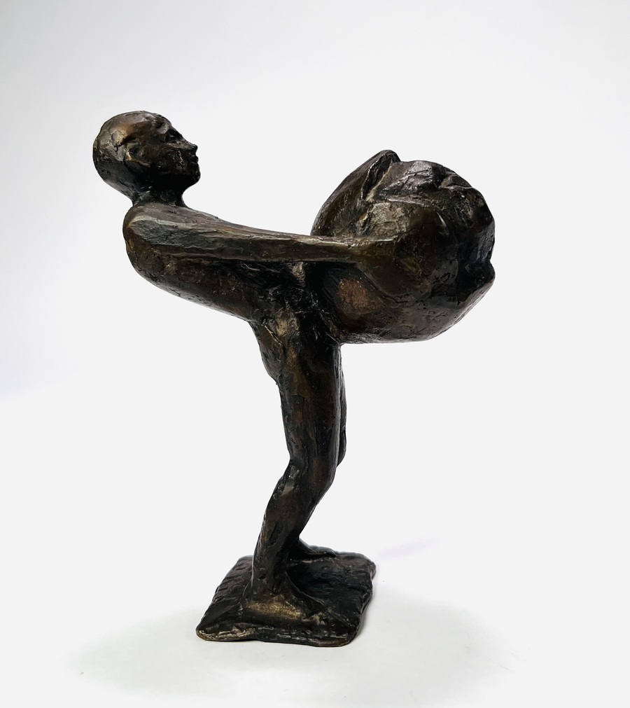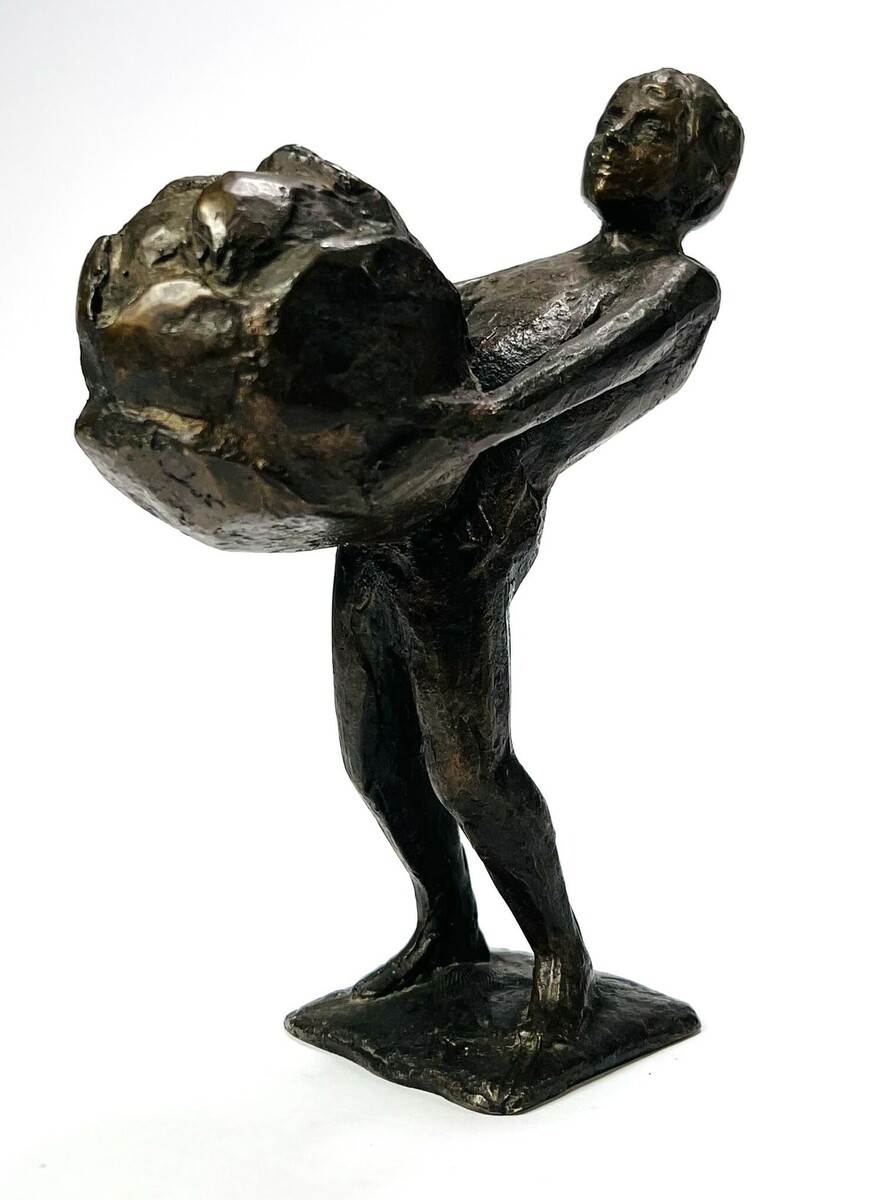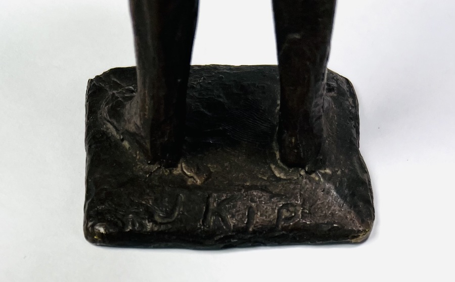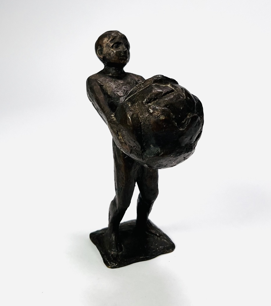 Bronzen beeld getiteld “Boeskoolmenneke” door Jan Kip (1926-1987), Oldenzaal. Op basement gesigneerd, jaren 60/70. |