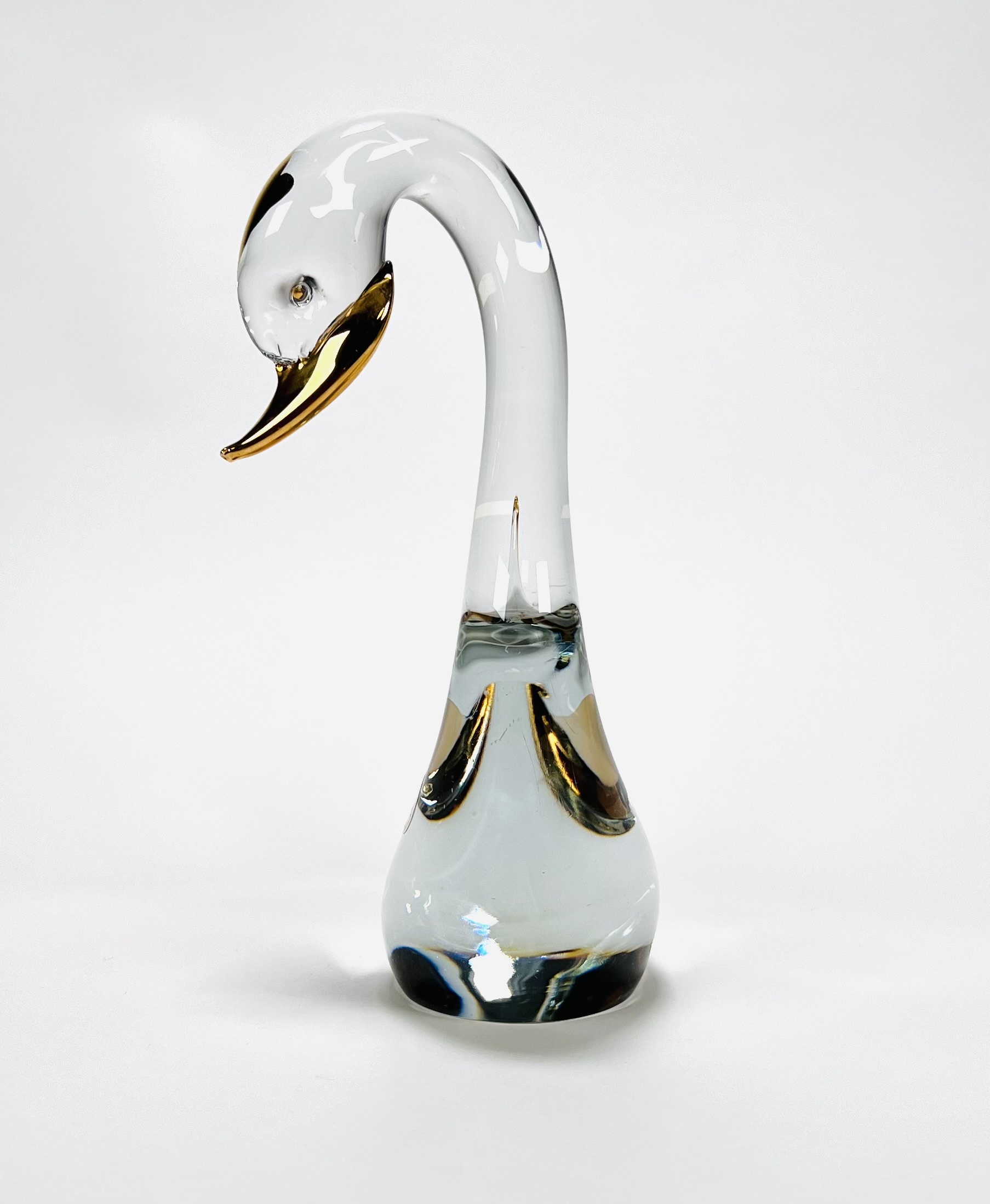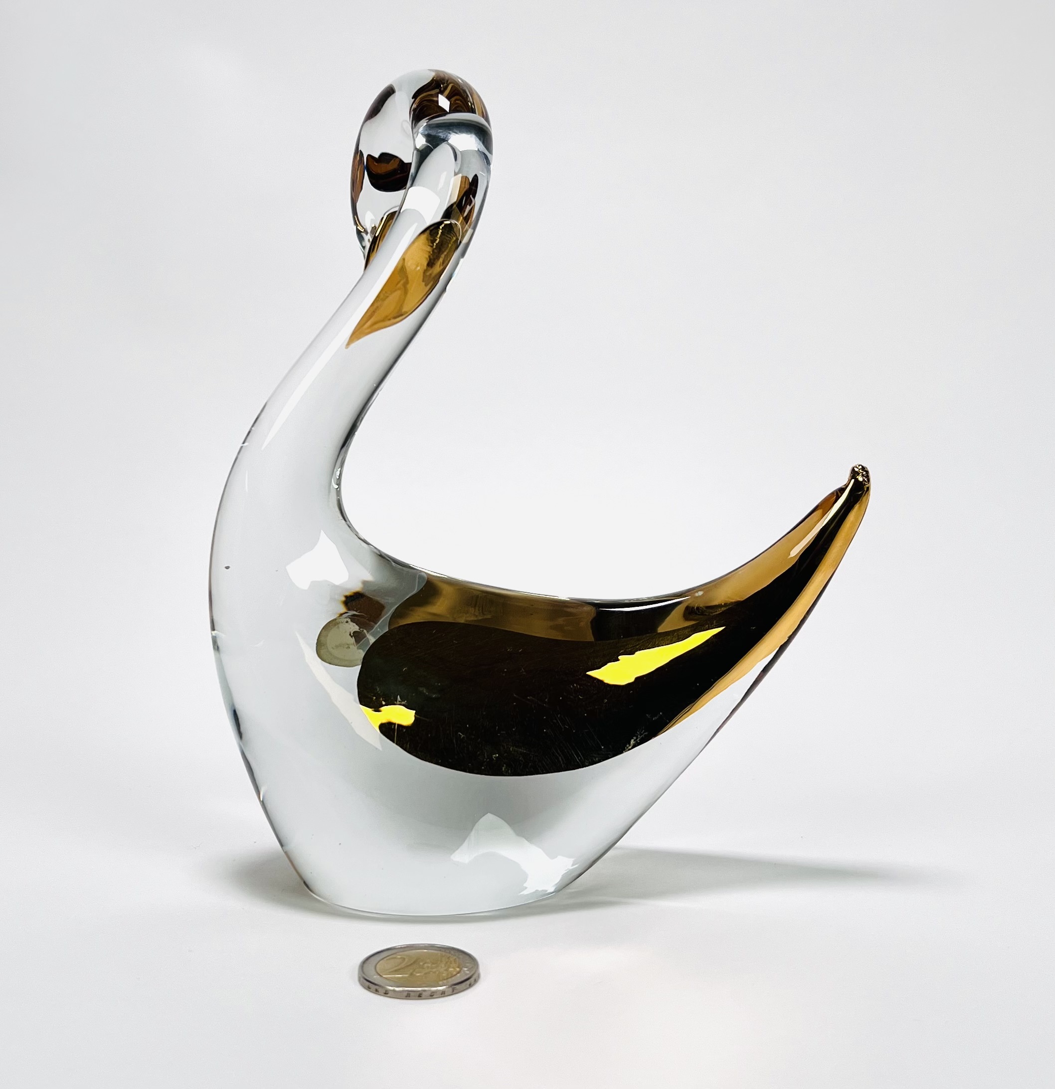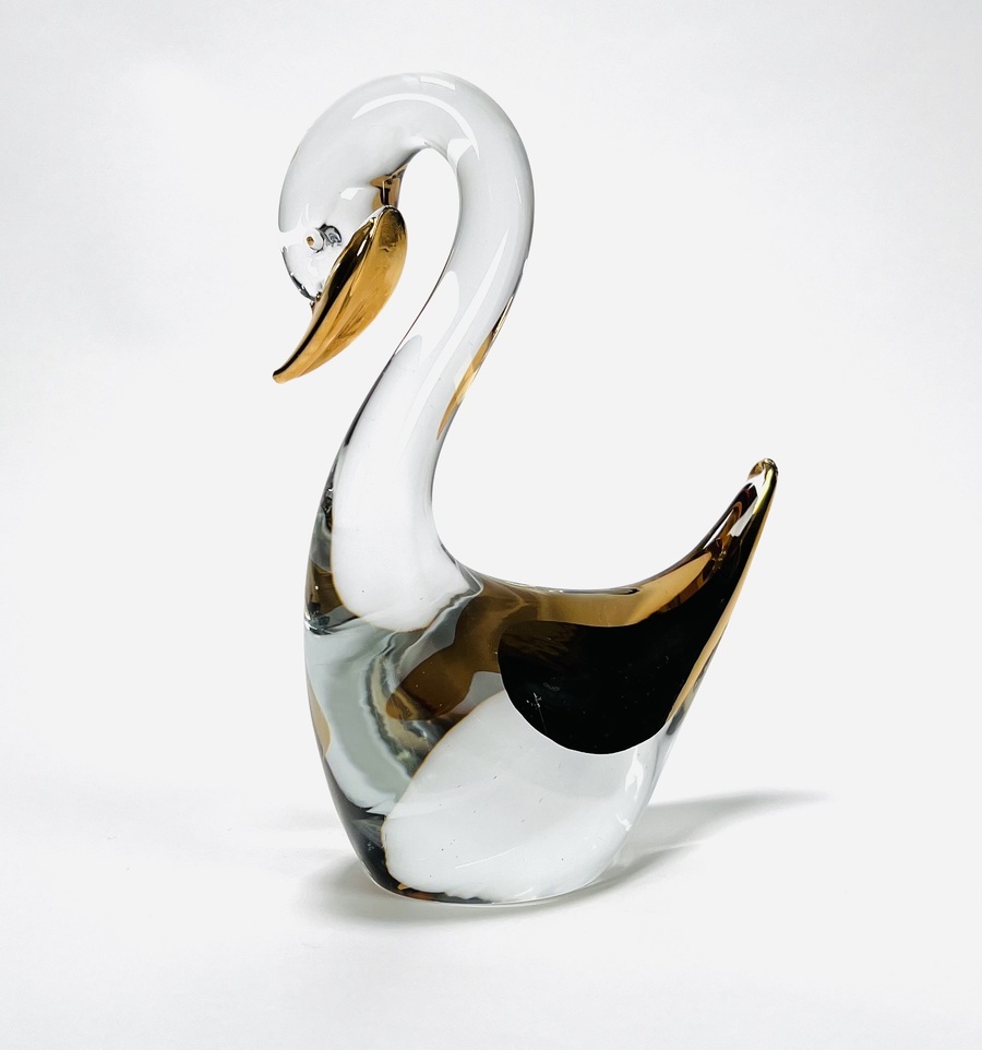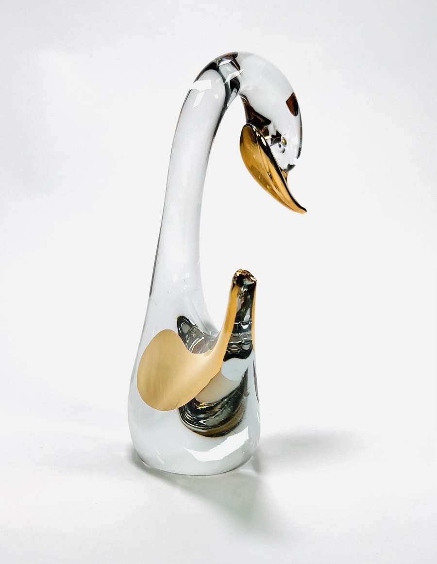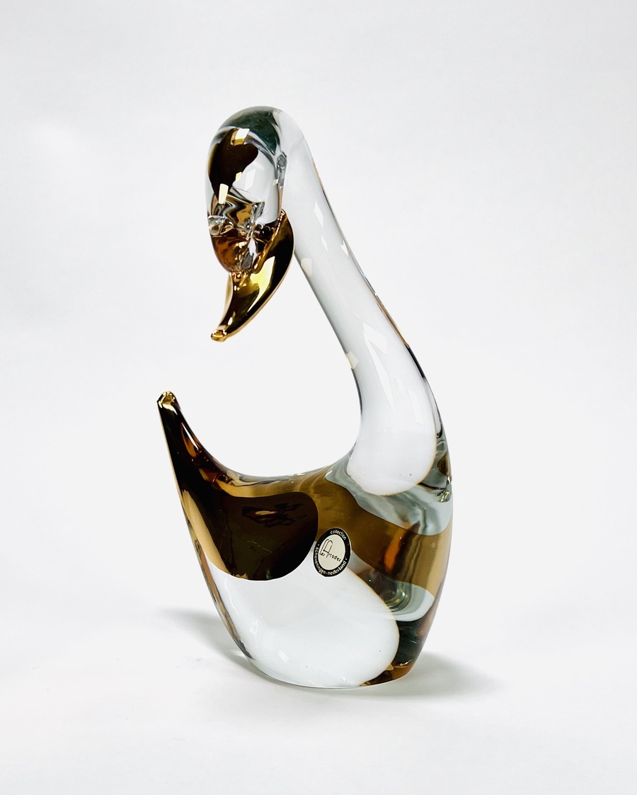 Kristallen zwaan met goudaccenten uit de collectie Les Arcades. Eind 20e eeuw. |