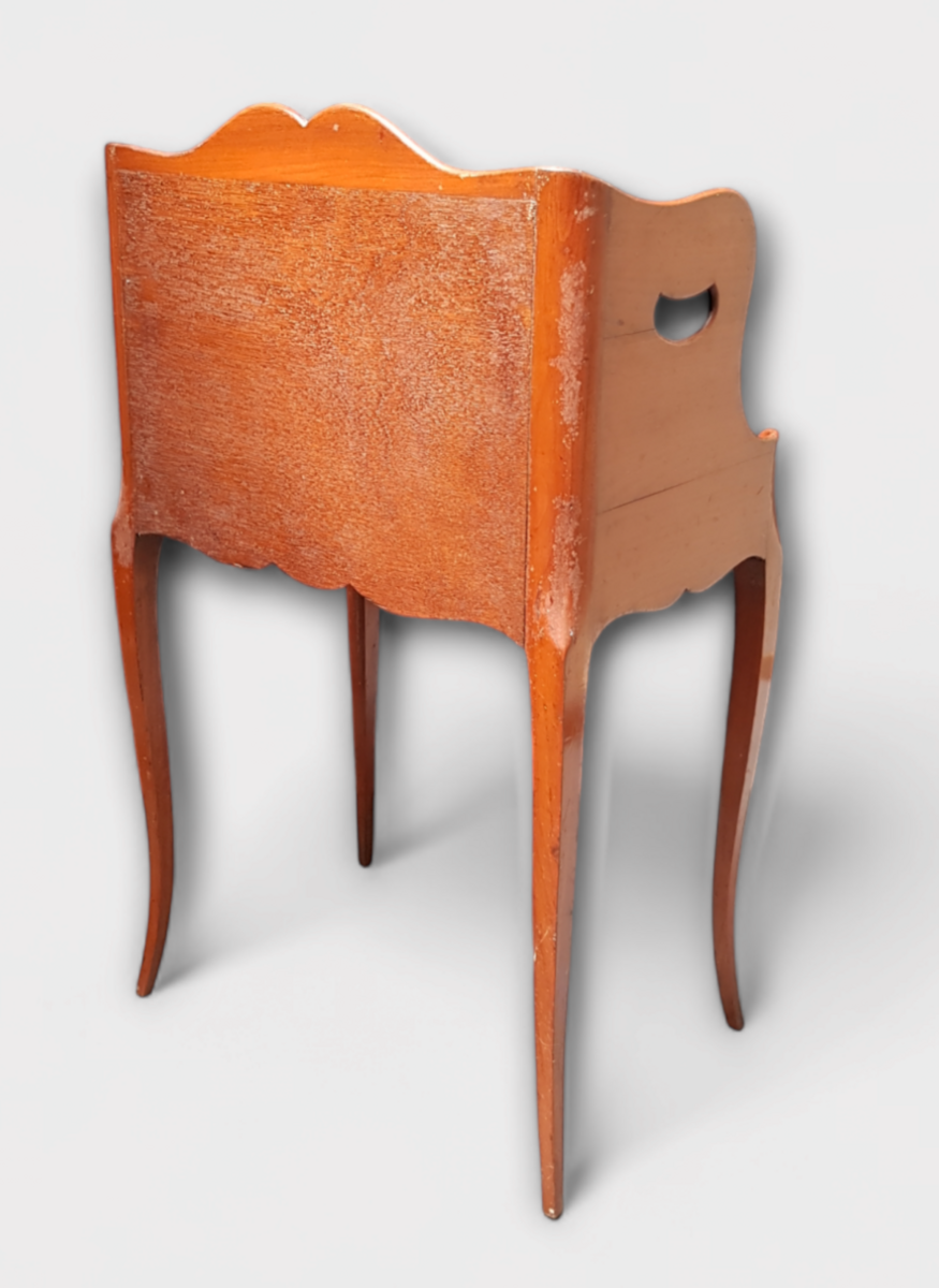 Nachtkastje uitgevoerd in essenhout, begin 20e eeuw. |