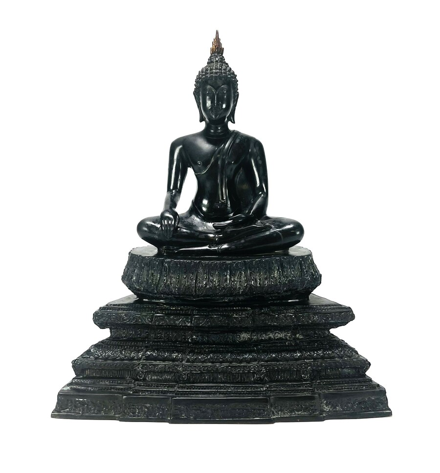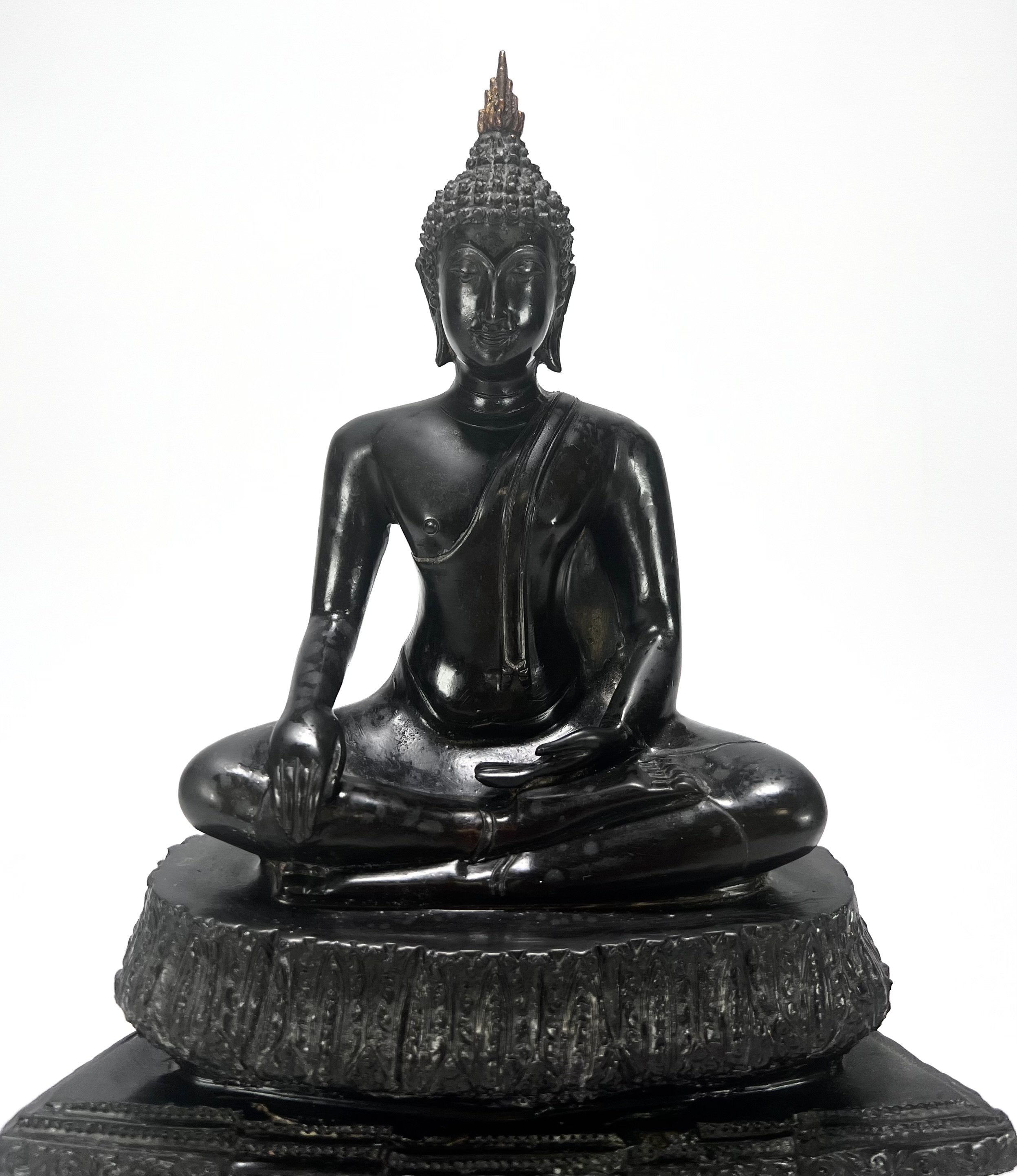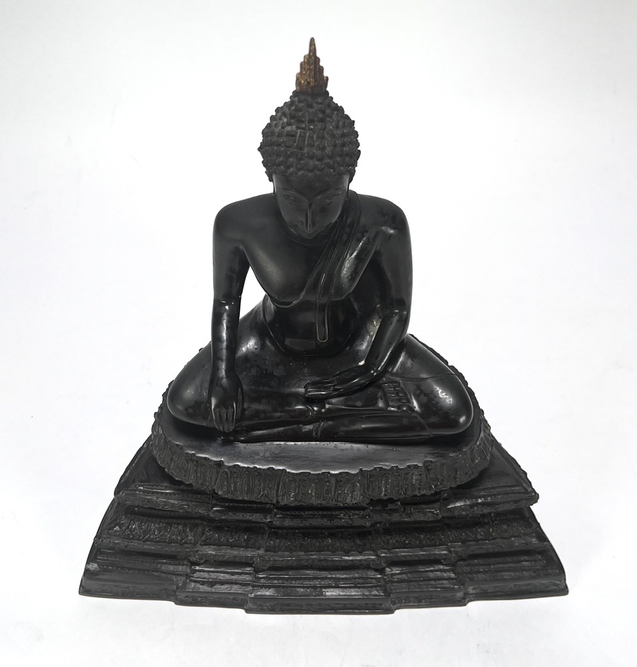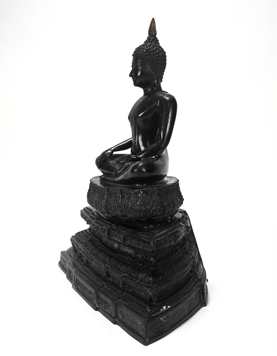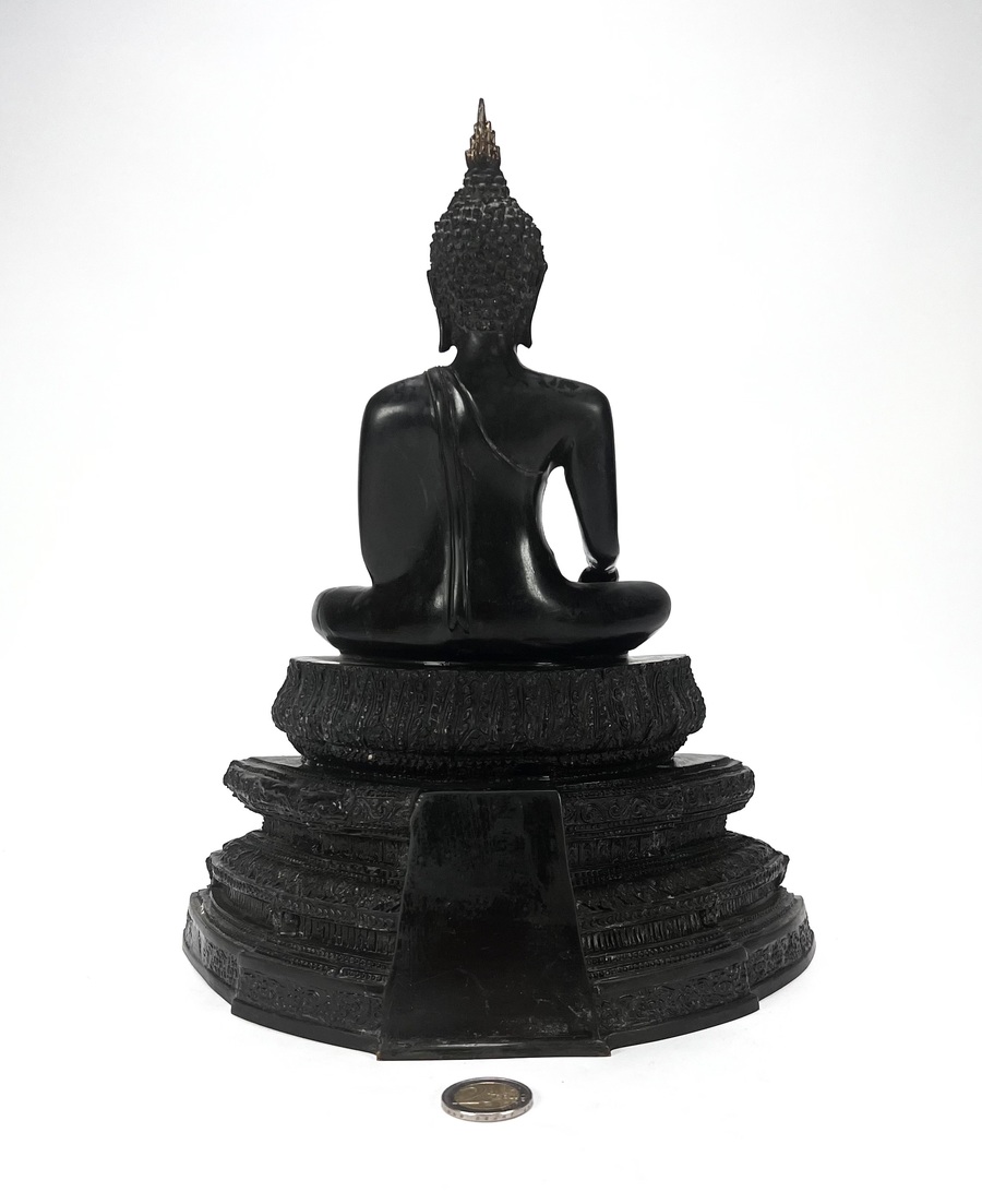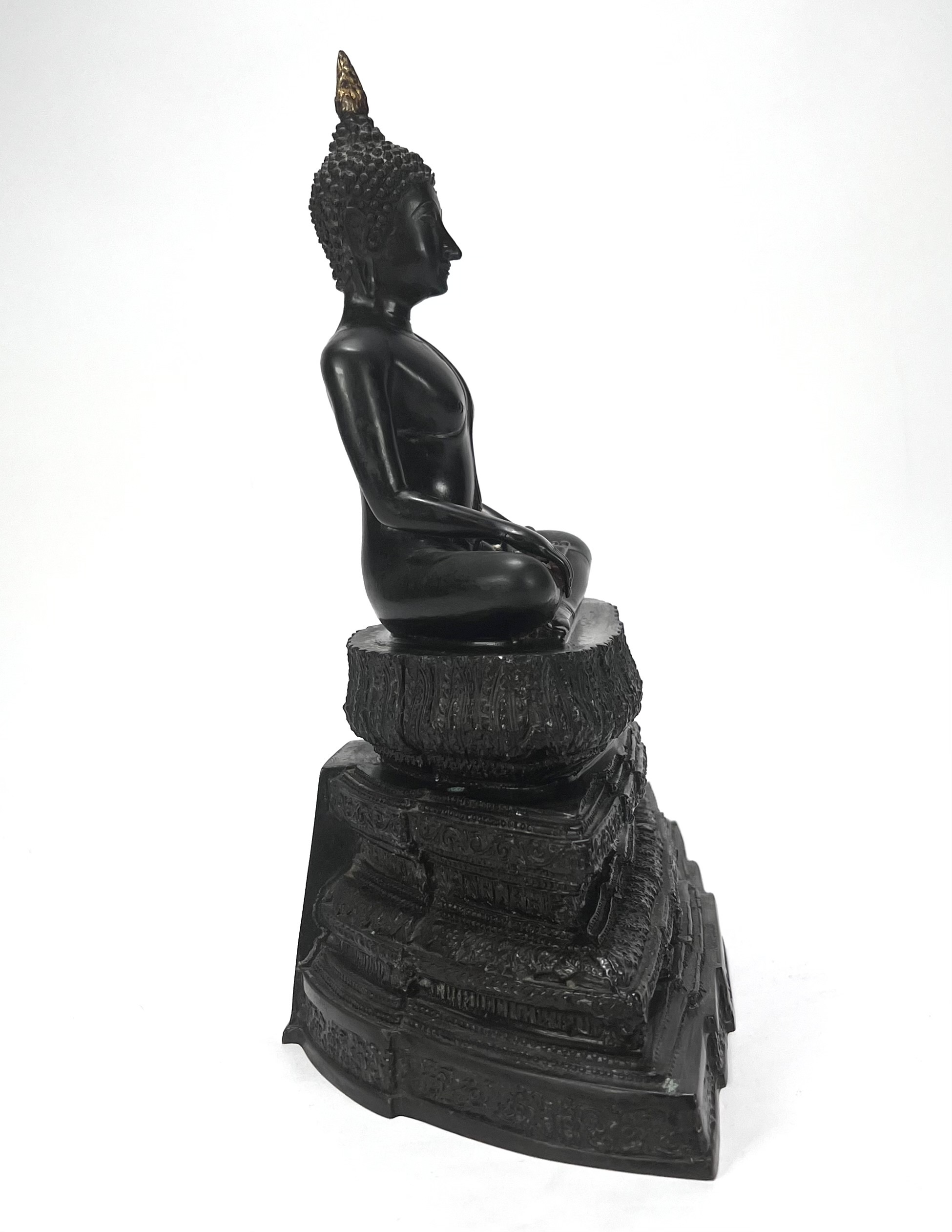 Bronzen donker patineerde Boeddha. Azië, eind 20e eeuw. |