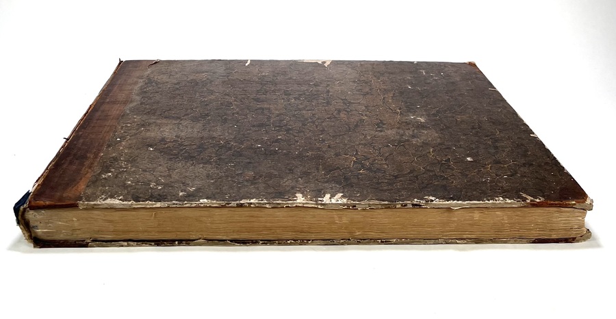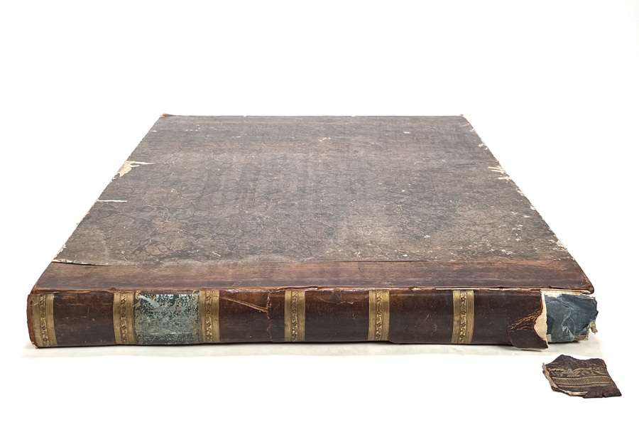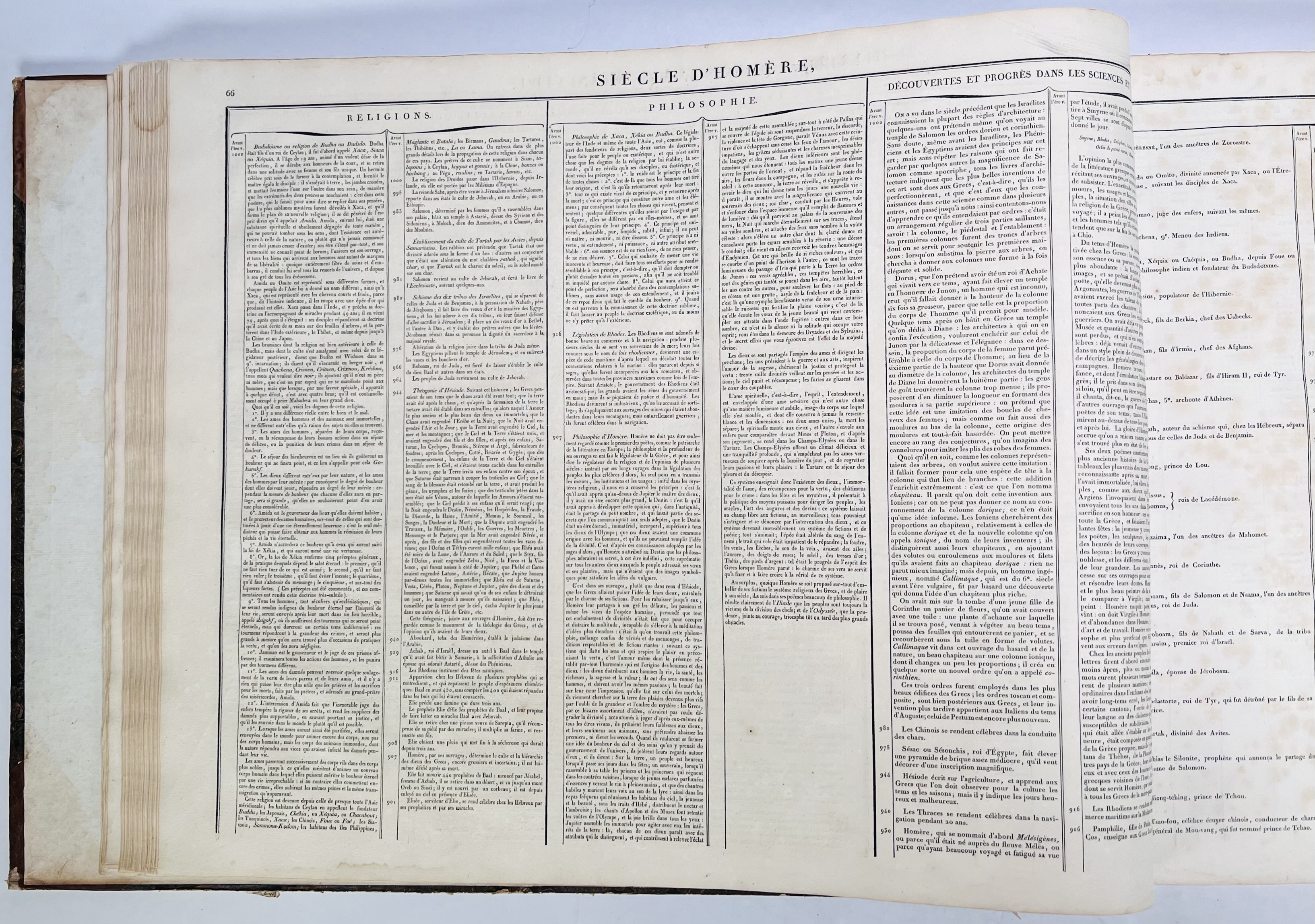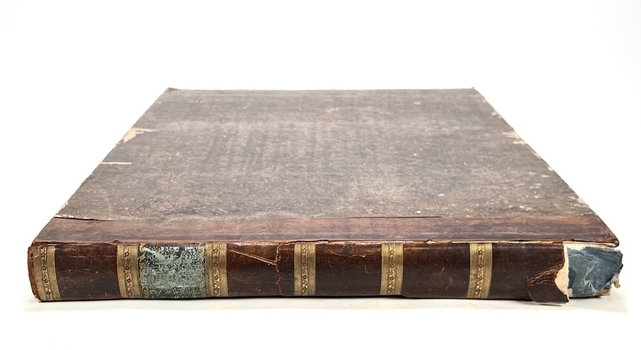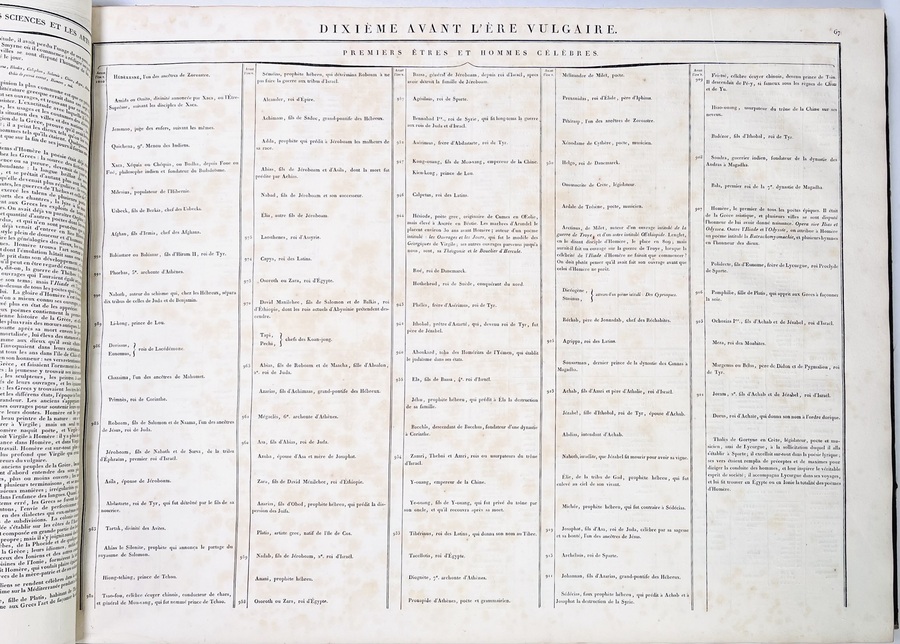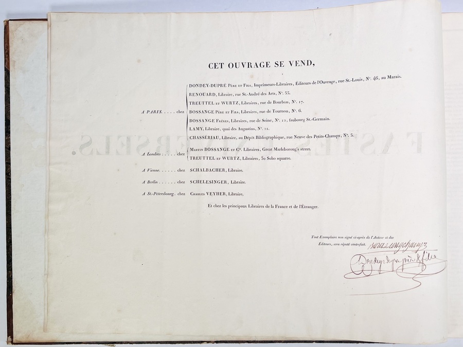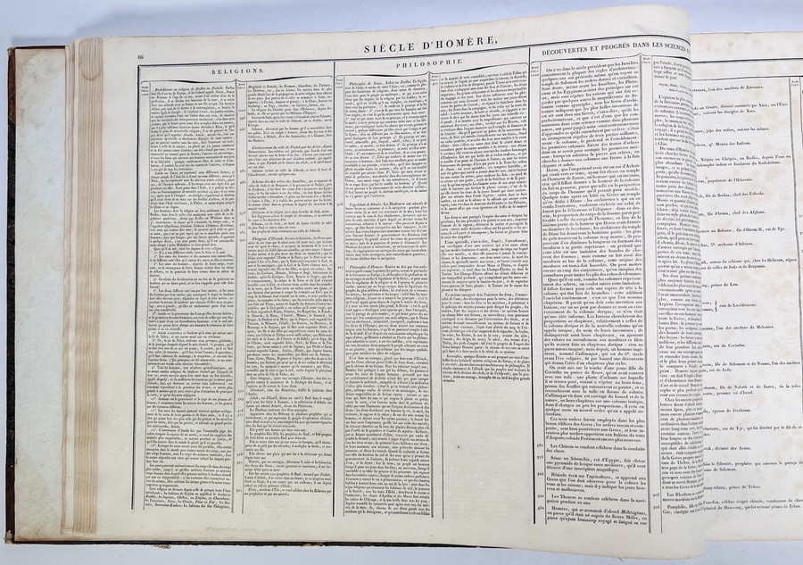 Halflederen uitgave “Les fastes universels out tableaux historiques, chronologiques et géographiues door M. Buret de Longchamps. Oblongformaat uitgegeven in 1821. |