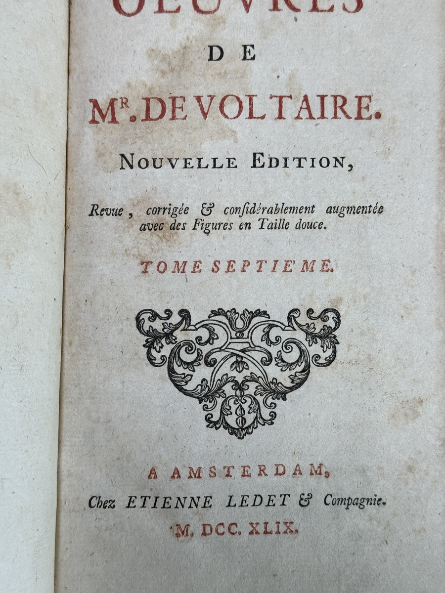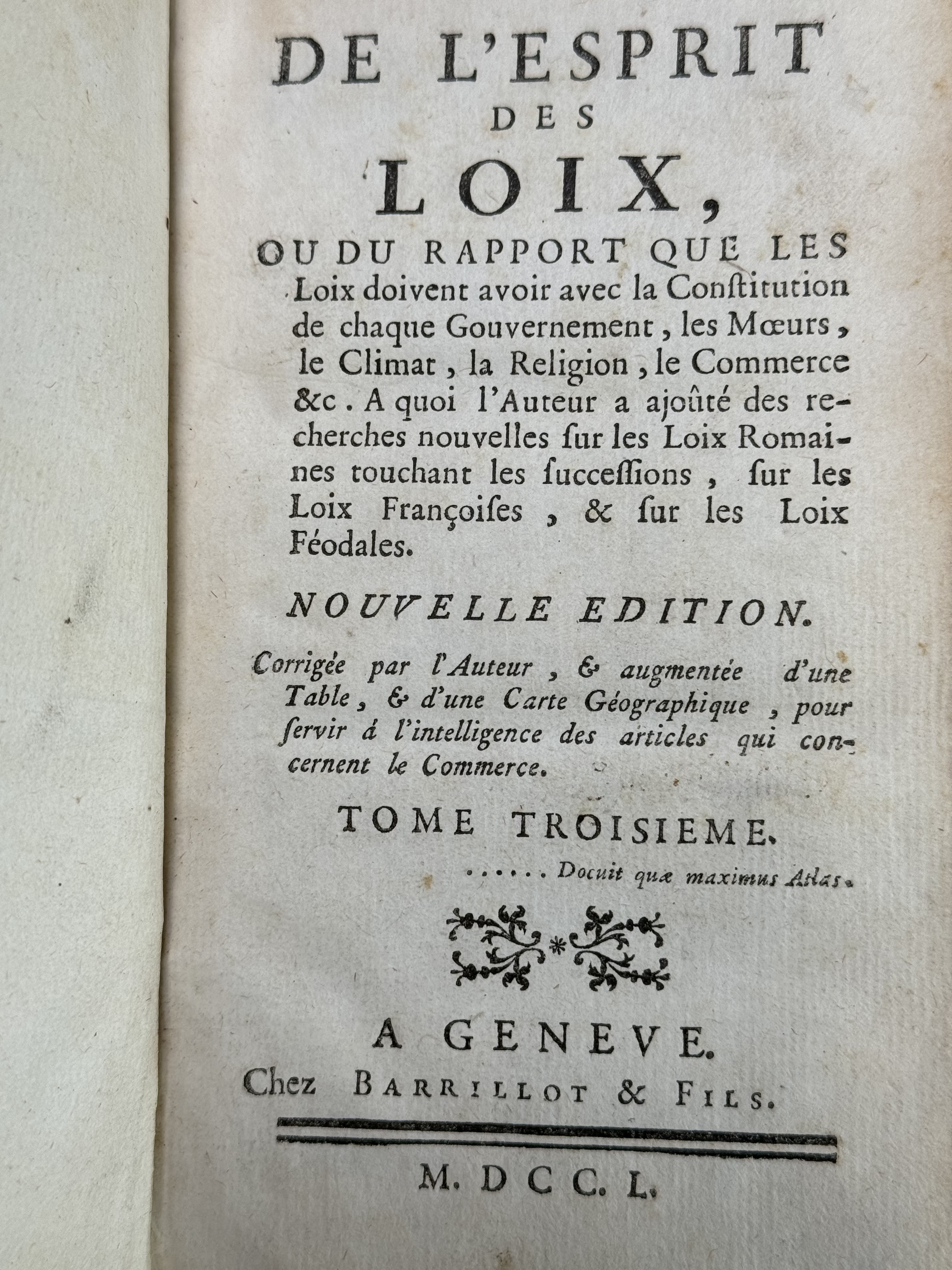 Lot met twaalf werken op filosofisch en politiek gebied waaronder werken van Voltaire, Rousseau en Montesquieu, 18e eeuw. |