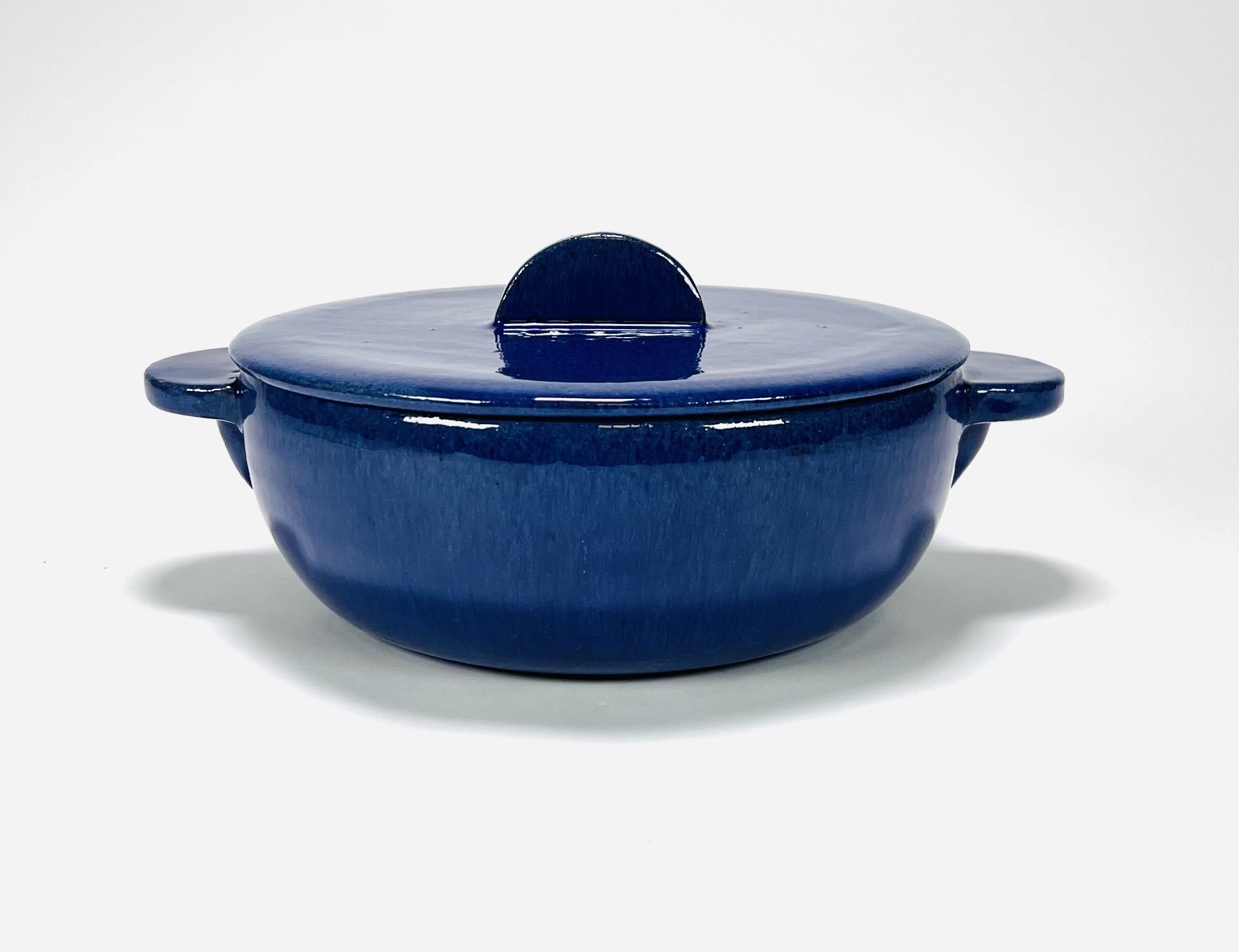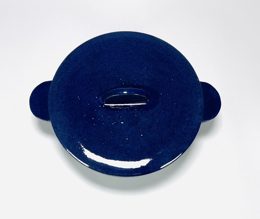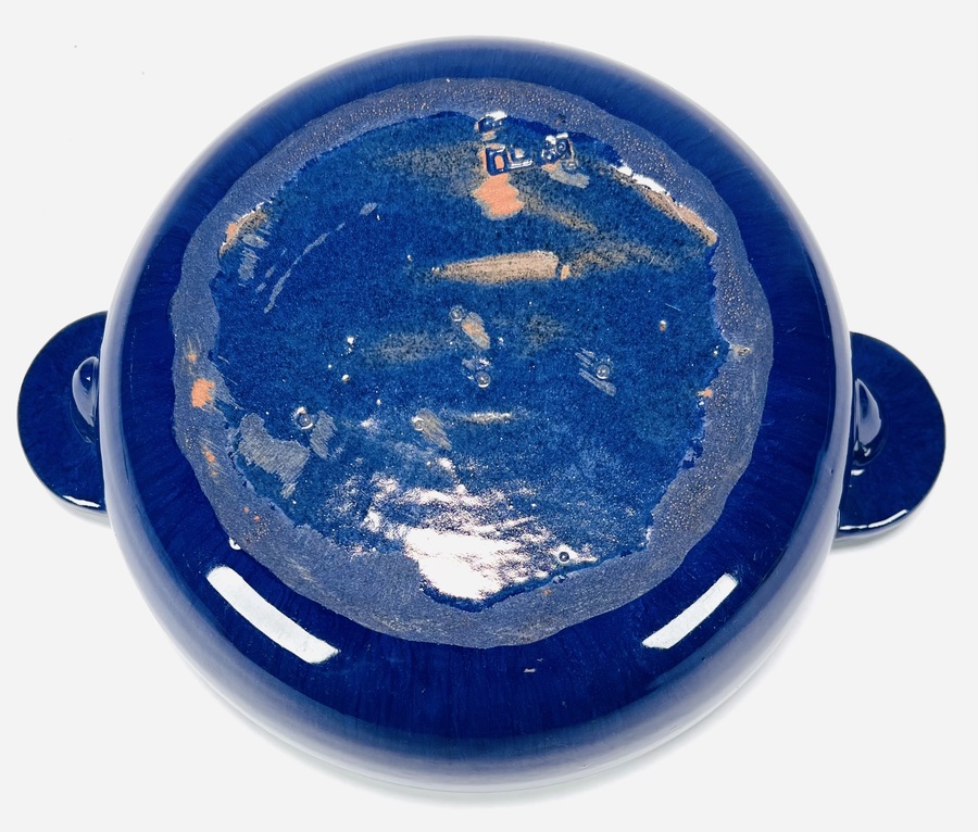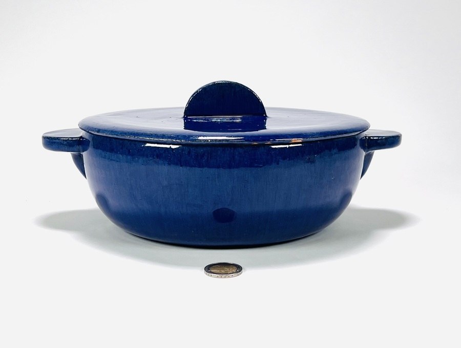 Blauwe keramieken dekselschaal door Pieter Groeneveldt. Aan de onderzijde gemerkt, derde kwart 20e eeuw. |