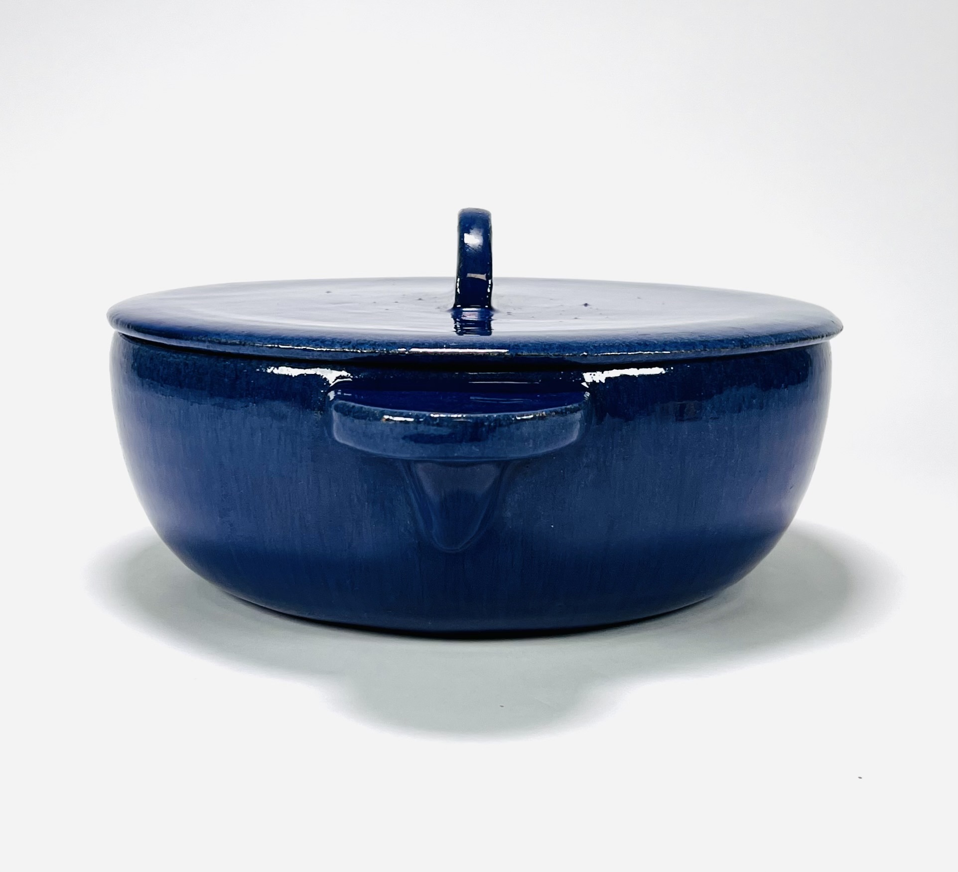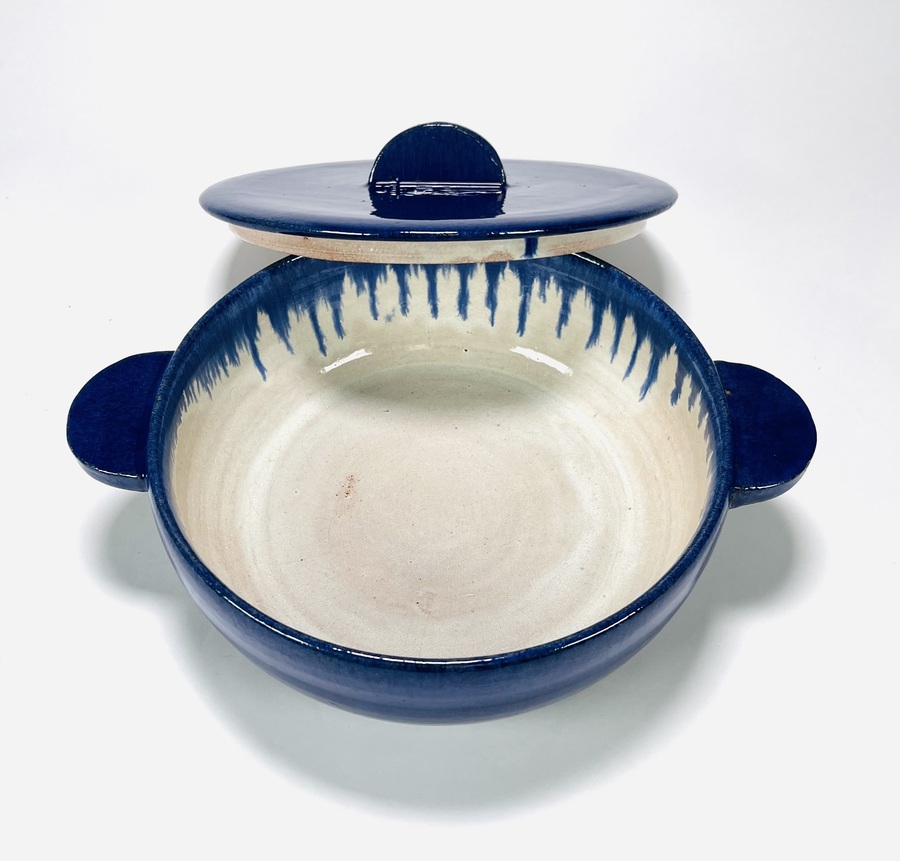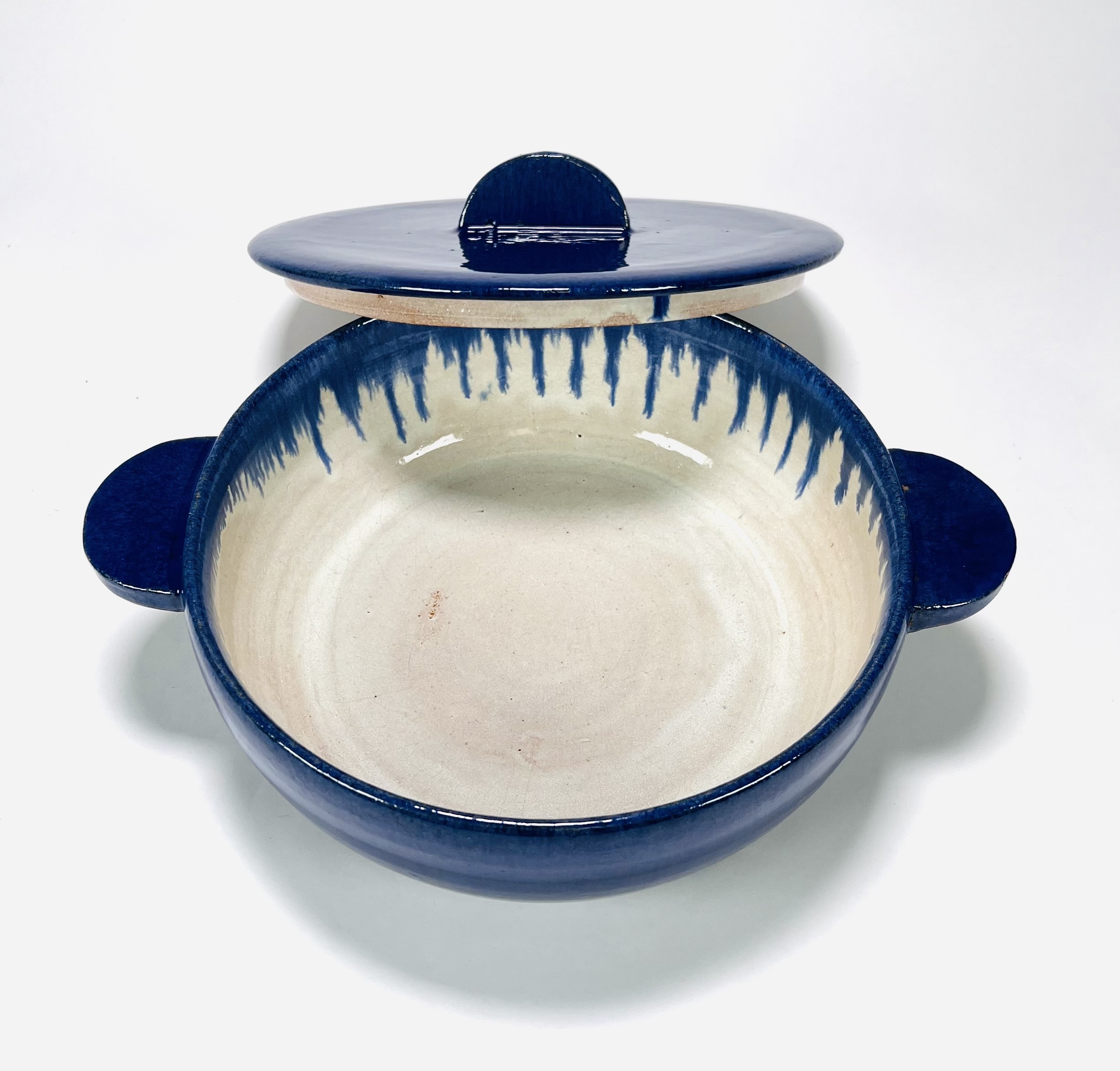 Blauwe keramieken dekselschaal door Pieter Groeneveldt. Aan de onderzijde gemerkt, derde kwart 20e eeuw. |