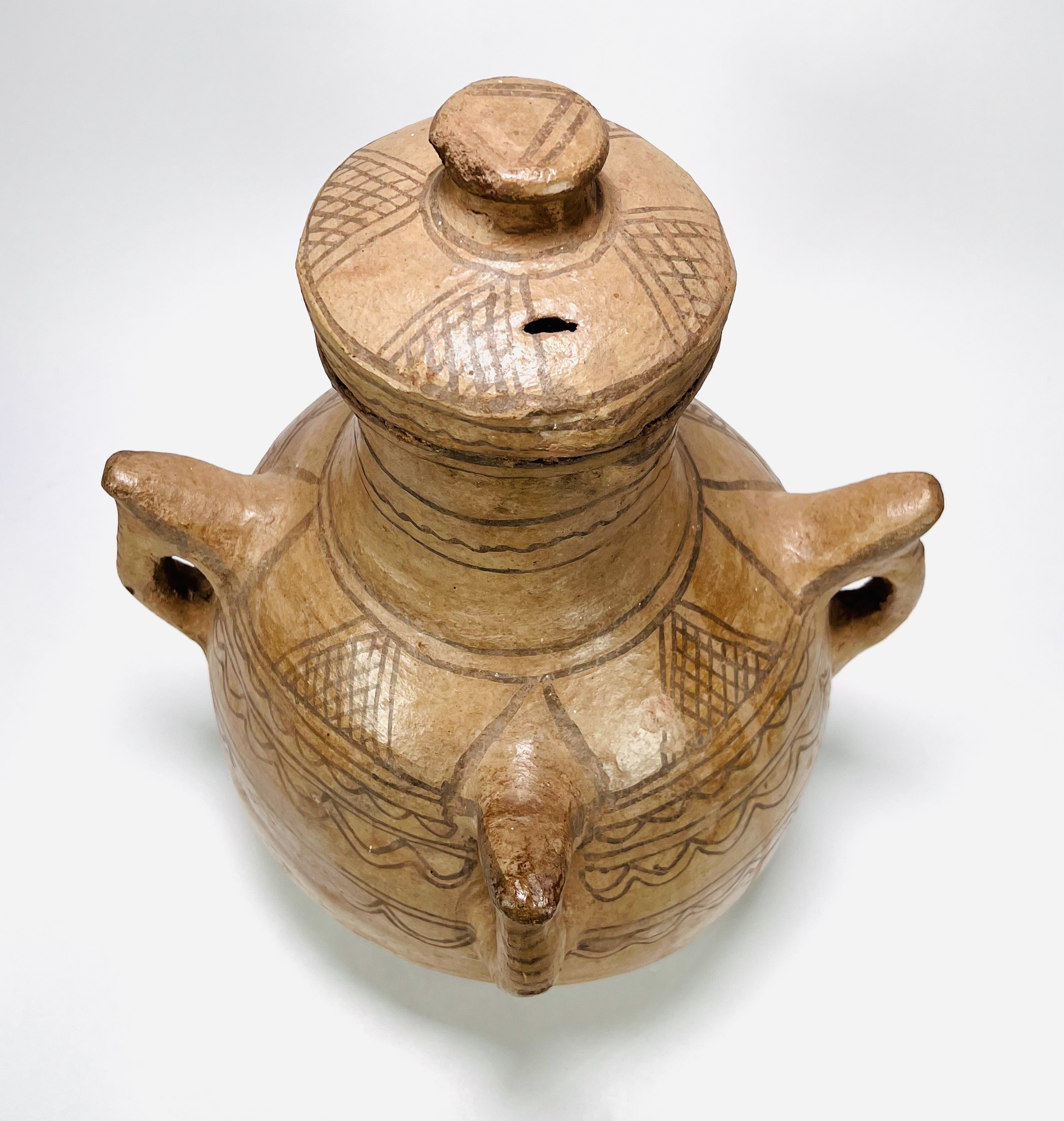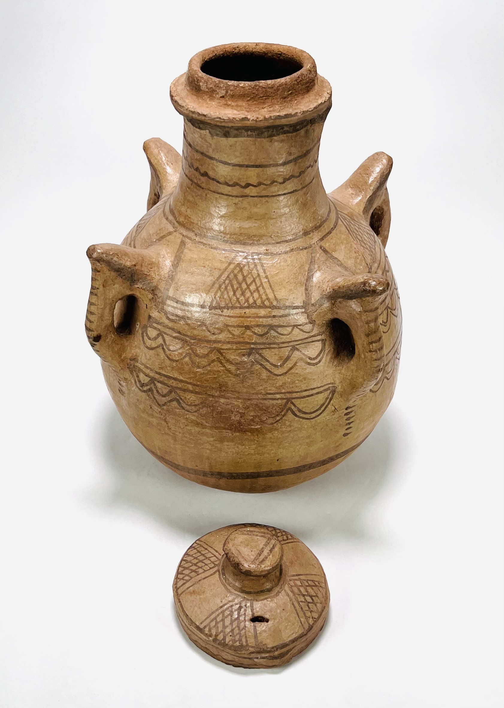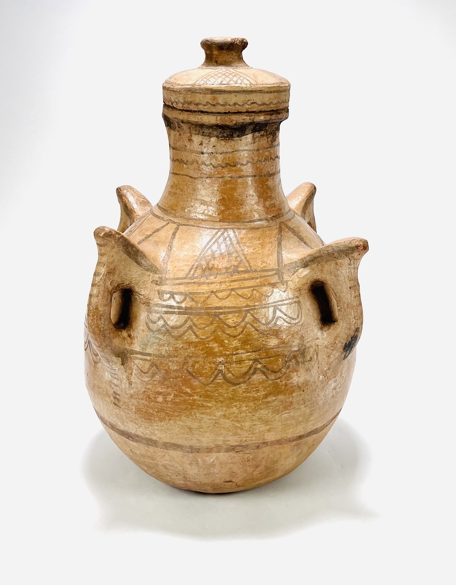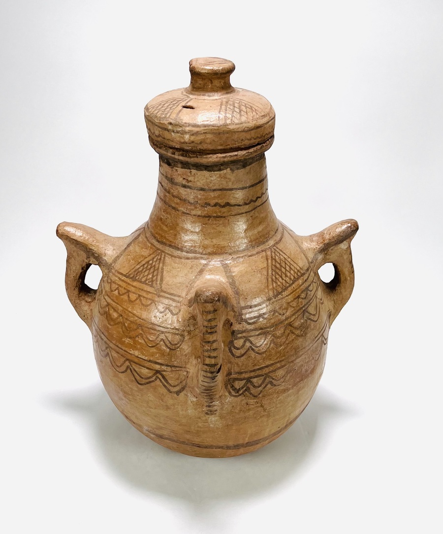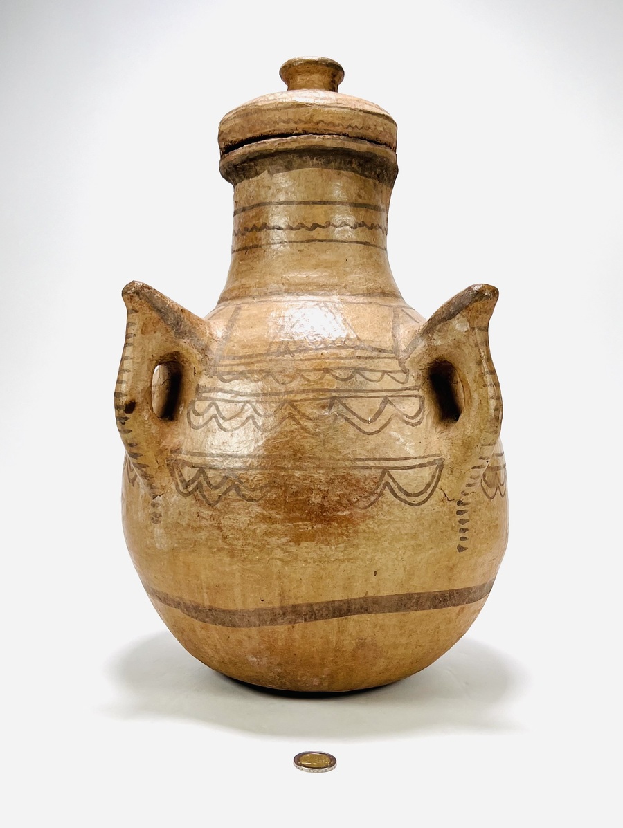 Aardewerken dekselpot met hengsels gedecoreerd in Grieks Myceense traditie. 20e eeuw. |