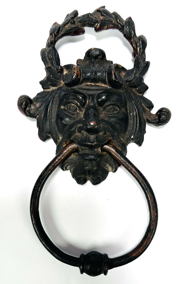 Gepatineerd bronzen deurklopper gedecoreerd met duivelskop. Eind 19e eeuw. |