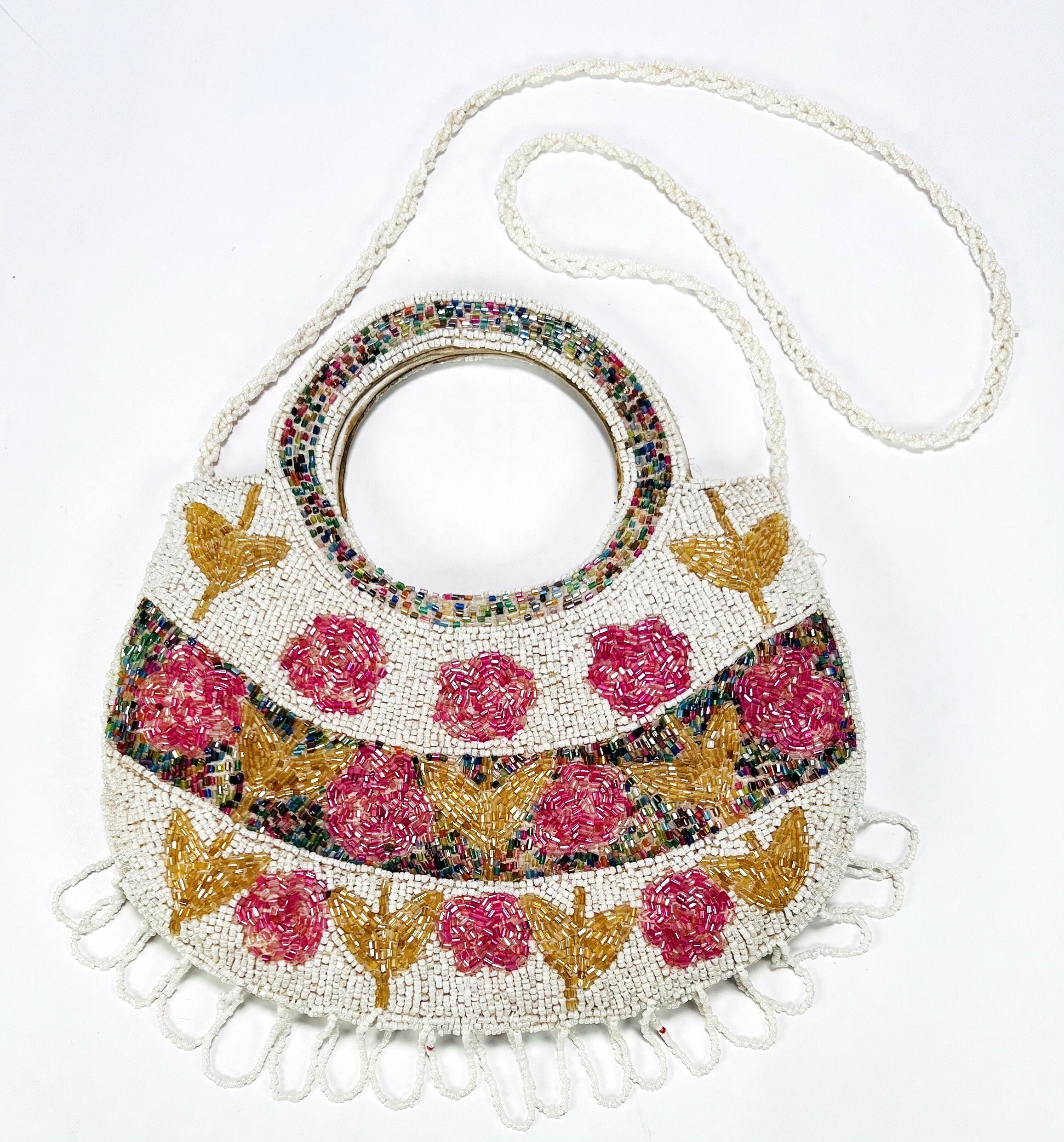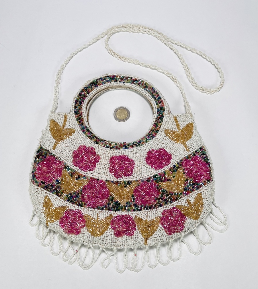 Vintage kralentas gedecoreerd met floraal gestikte kralen, jaren 60-80. |