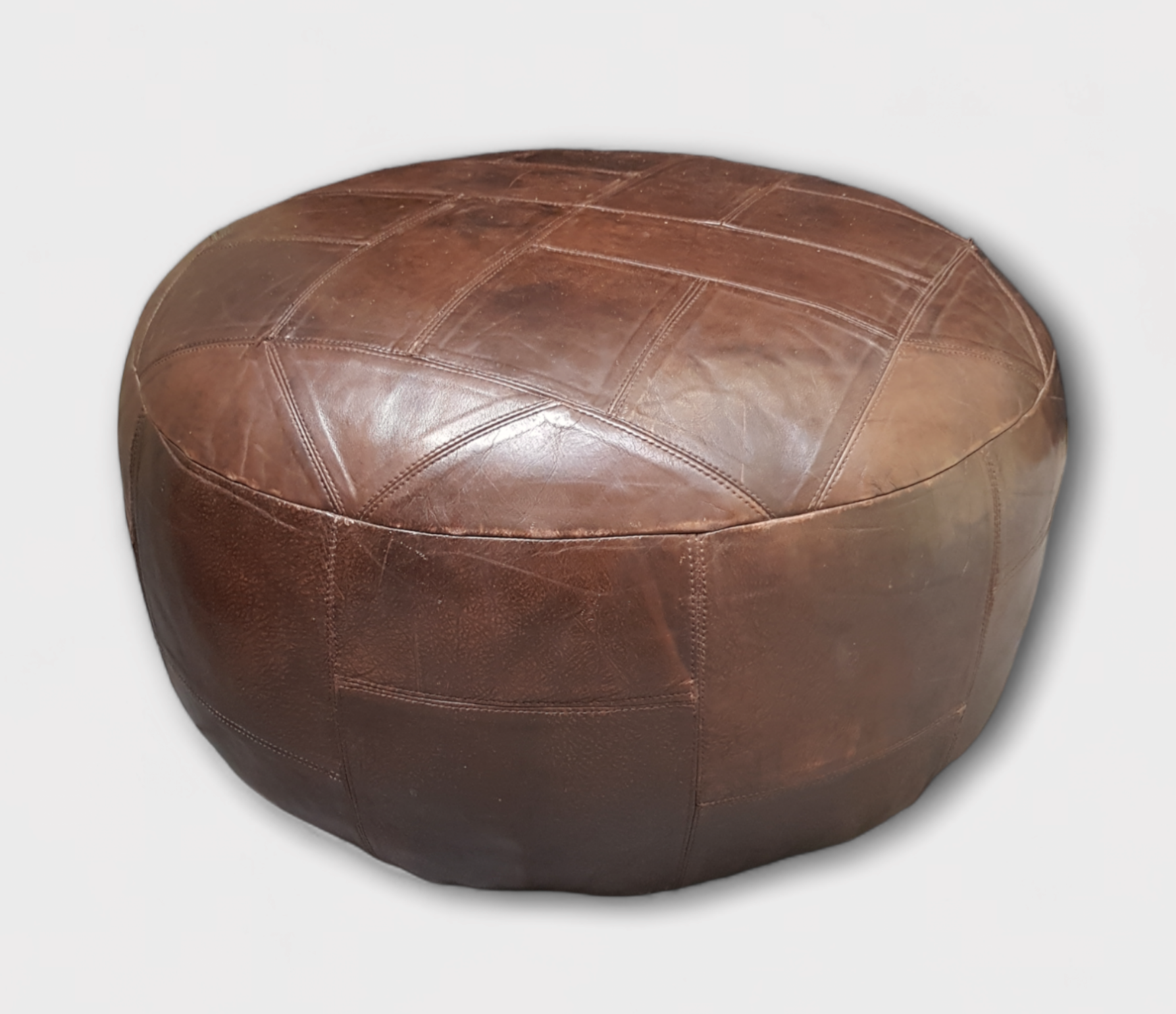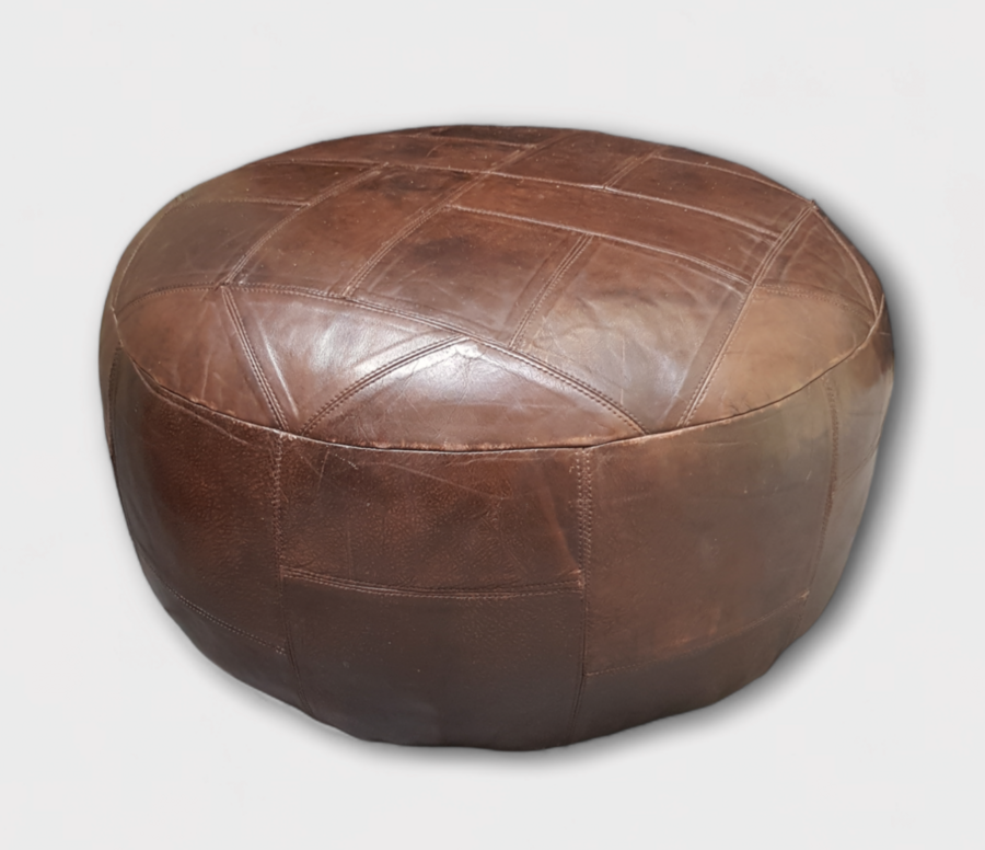Bruine lederen poef, vierde kwart 20e eeuw. |