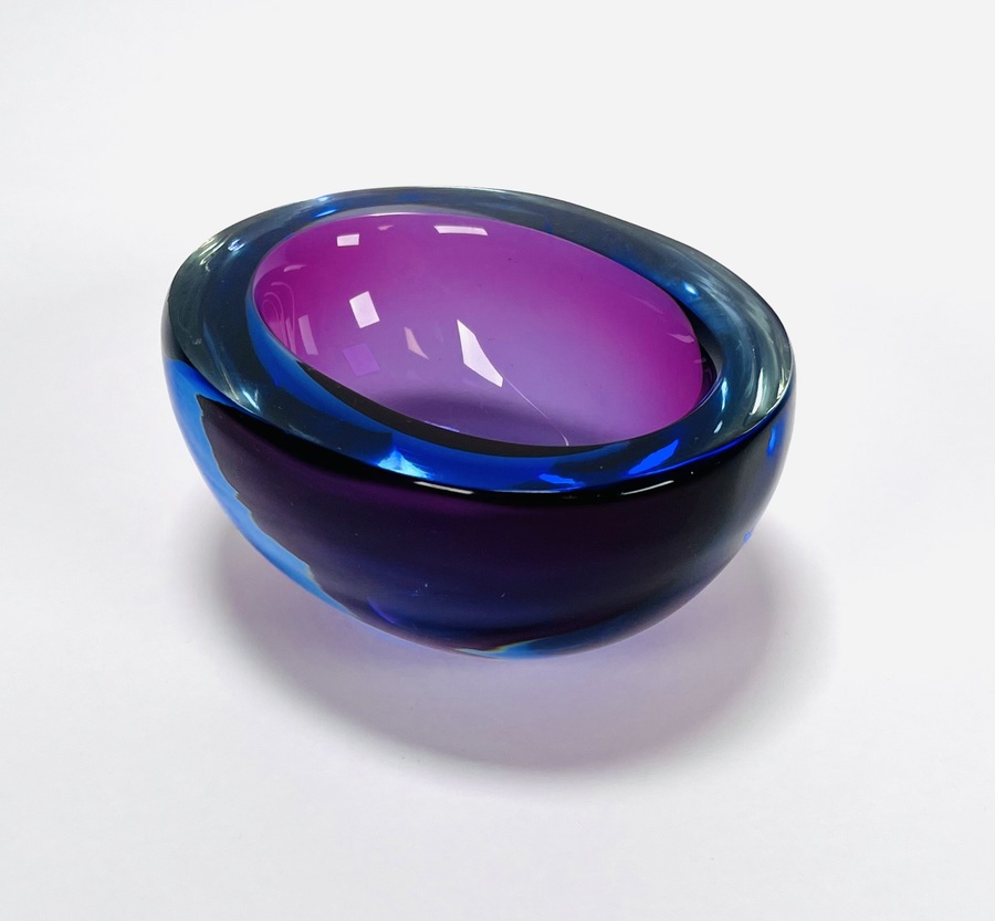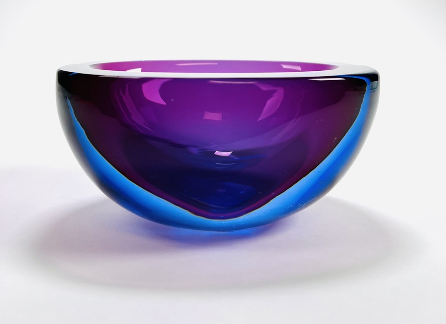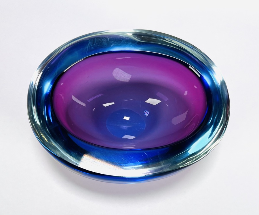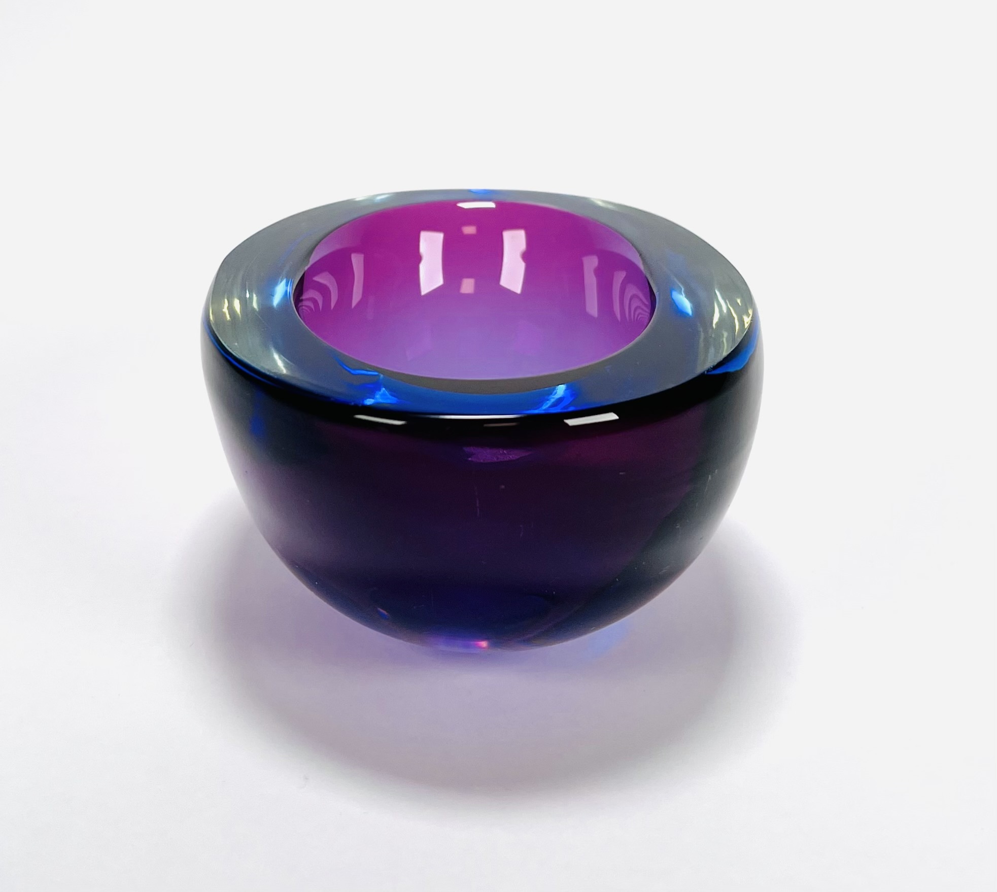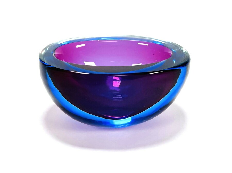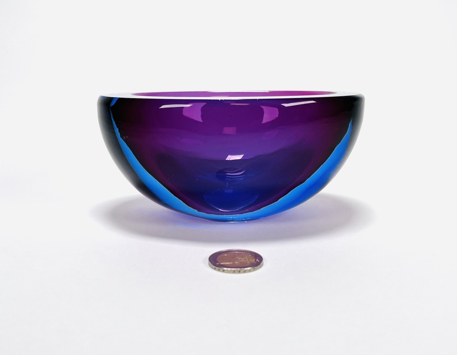 Kristallen meerdere lagen paars-kobaltblauwe Murano geode kom in Sommerso techniek. Venetië, jaren 60. |