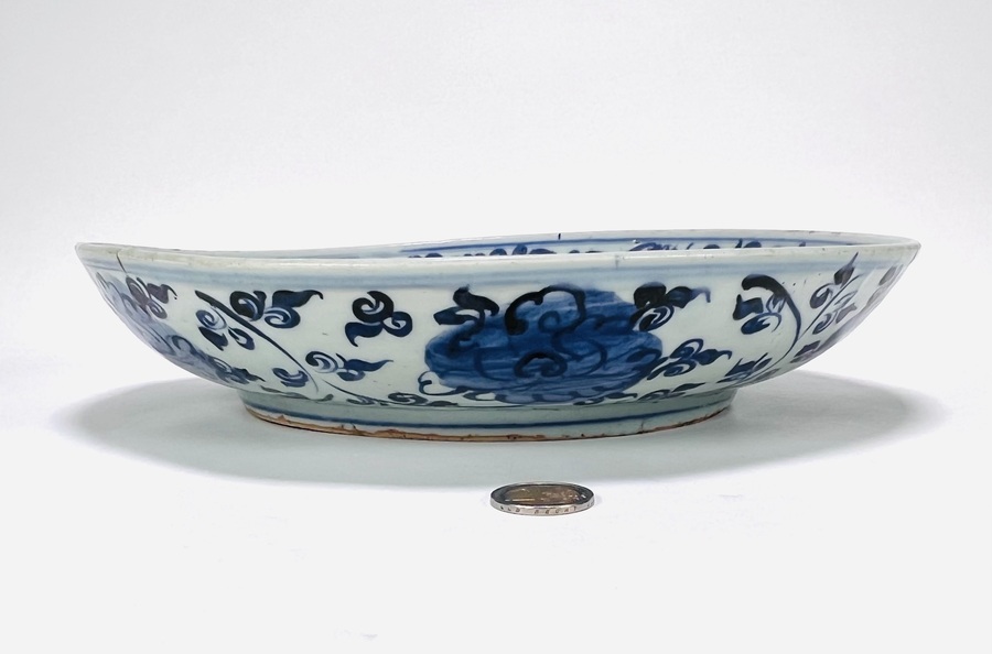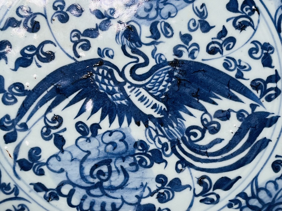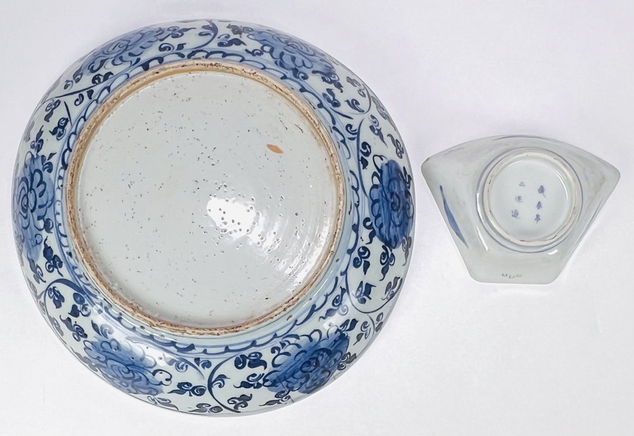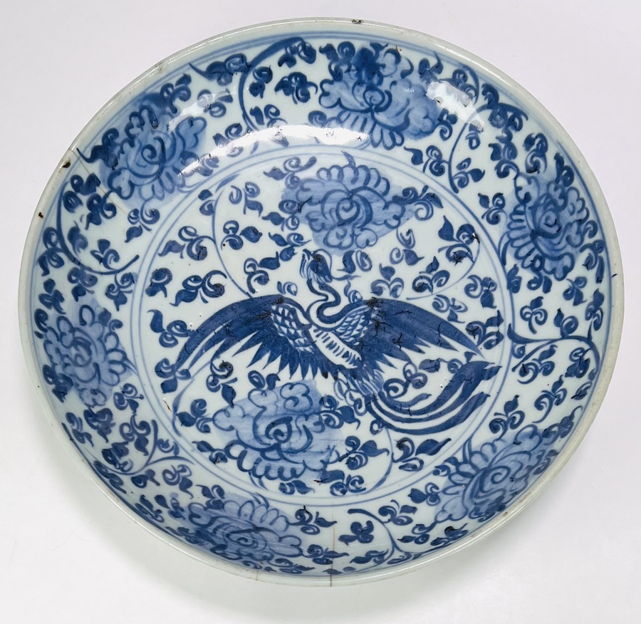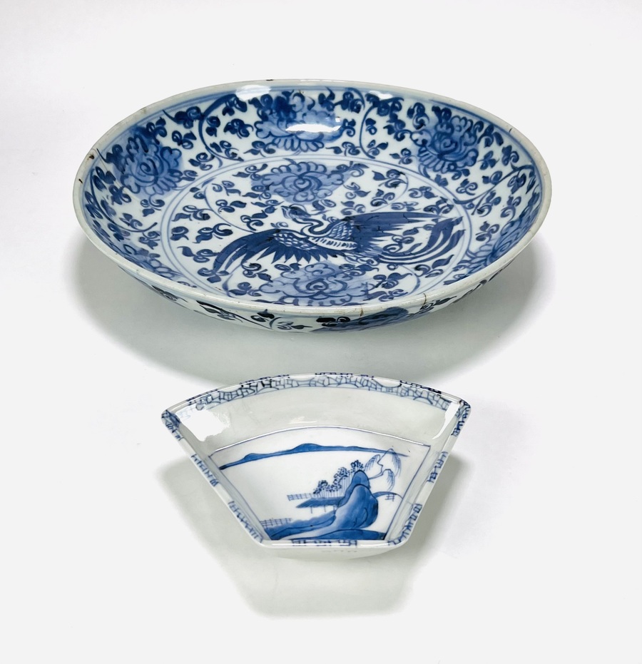 Porseleinen schaal met feniks gedecoreerd, China, Ming periode, 16e eeuw. Daarbij een Japans sweat meat bordje, 19e eeuw. |