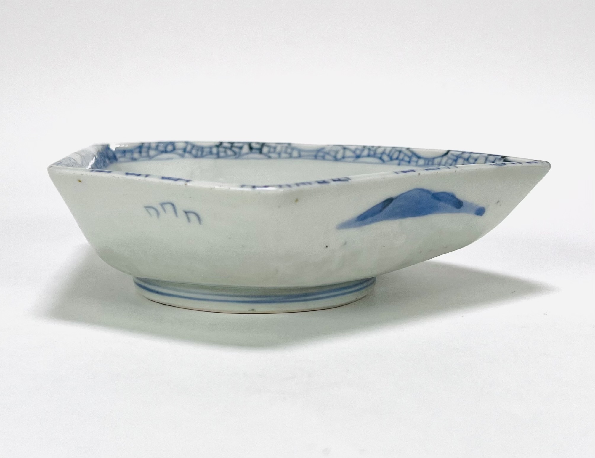 | Conditie | Grote schaal drie barsten, klein bordje chip aan de rand. | |