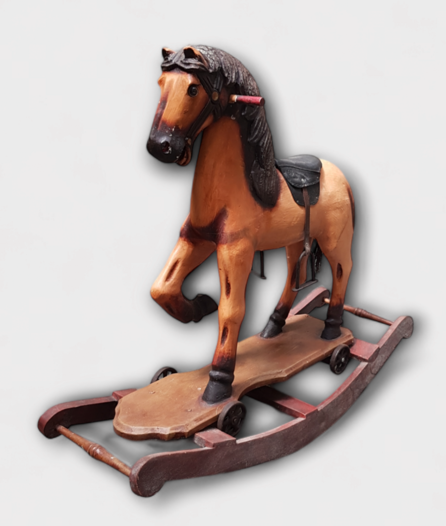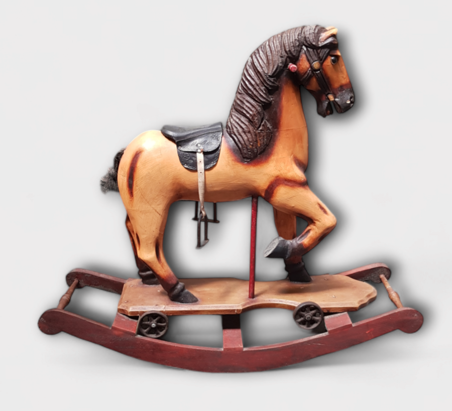 Houten schommelpaard in retro stijl. Jaren 90. |