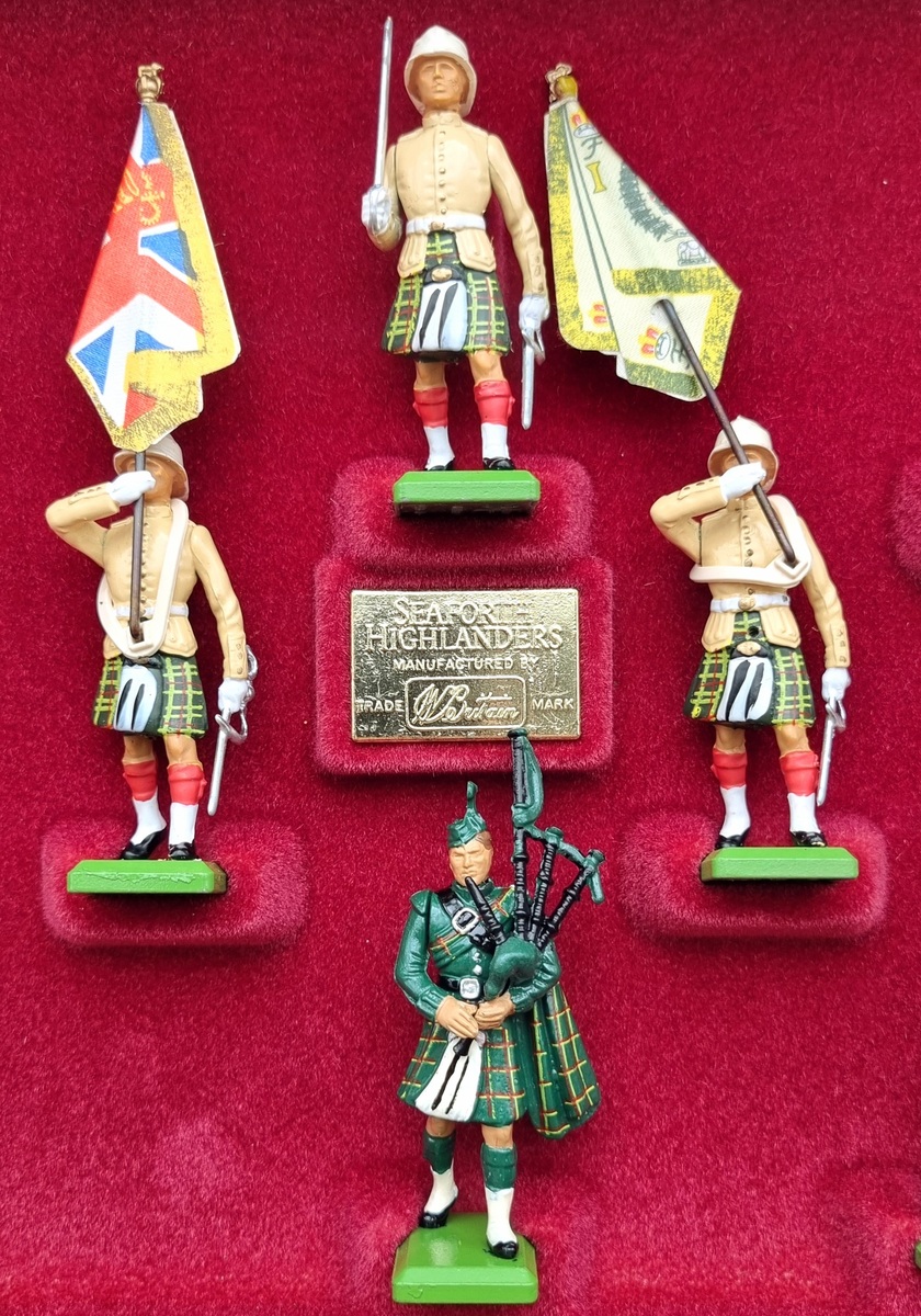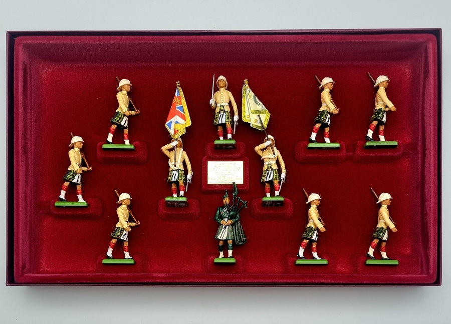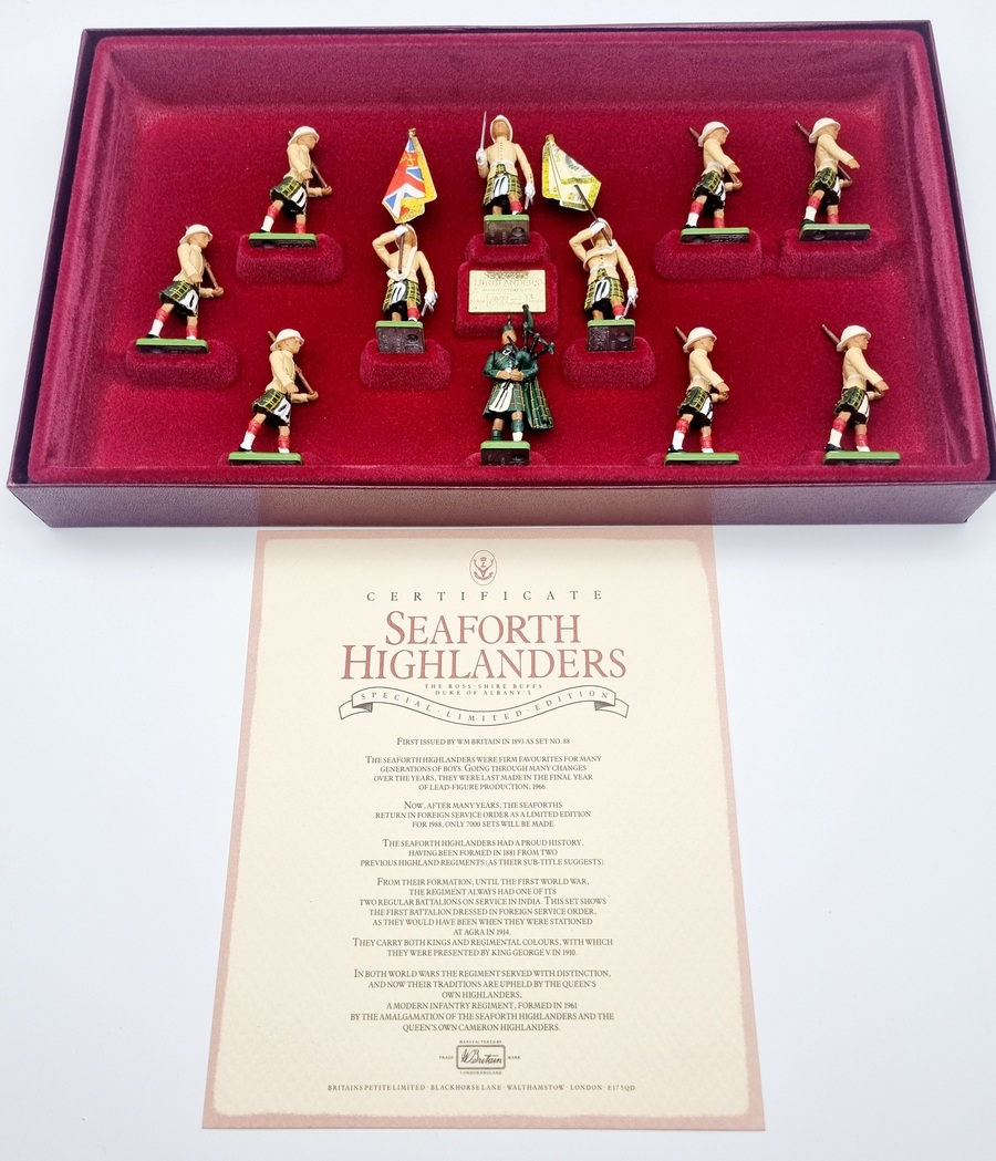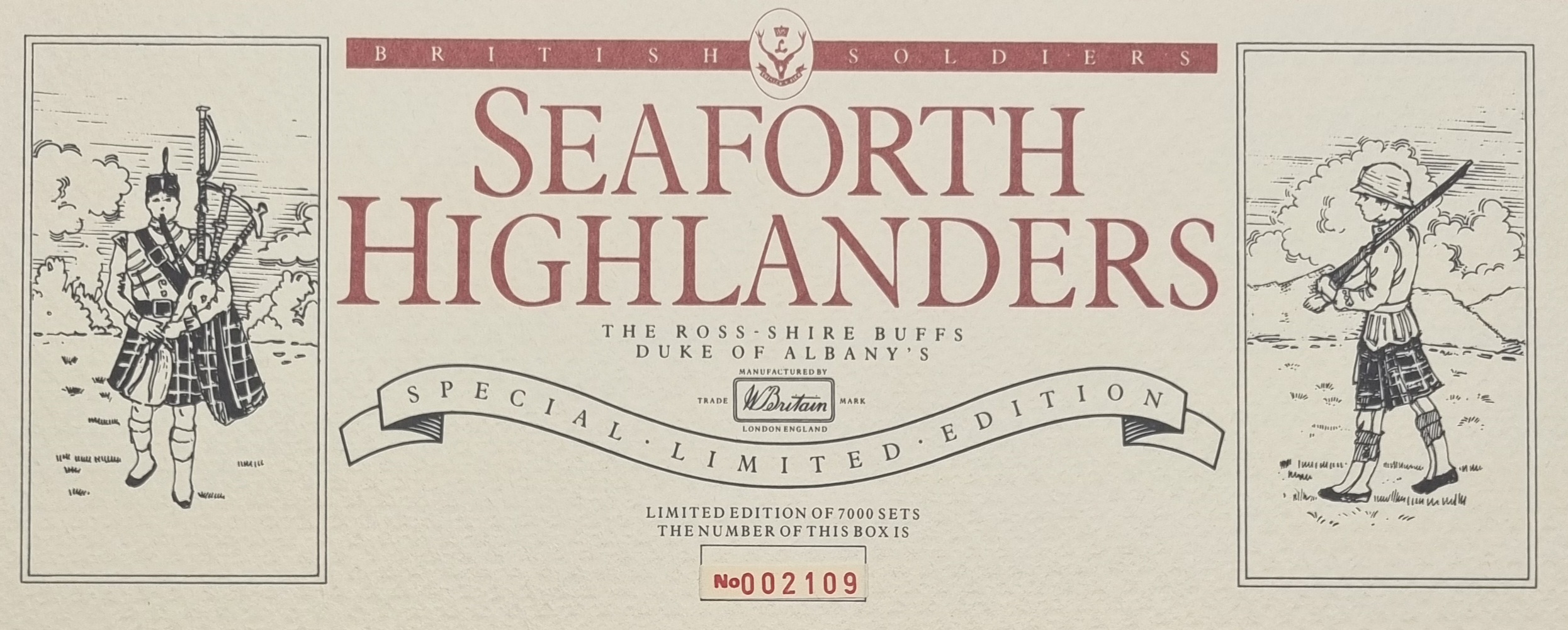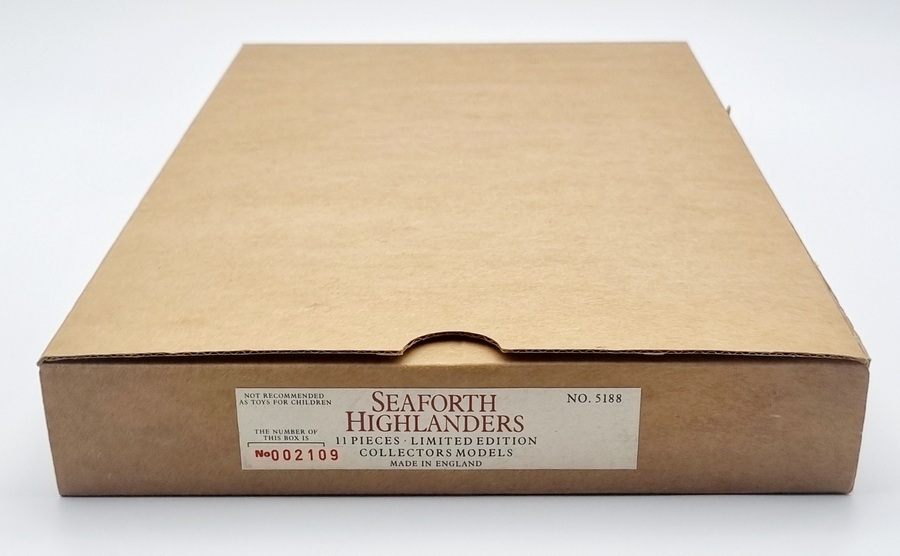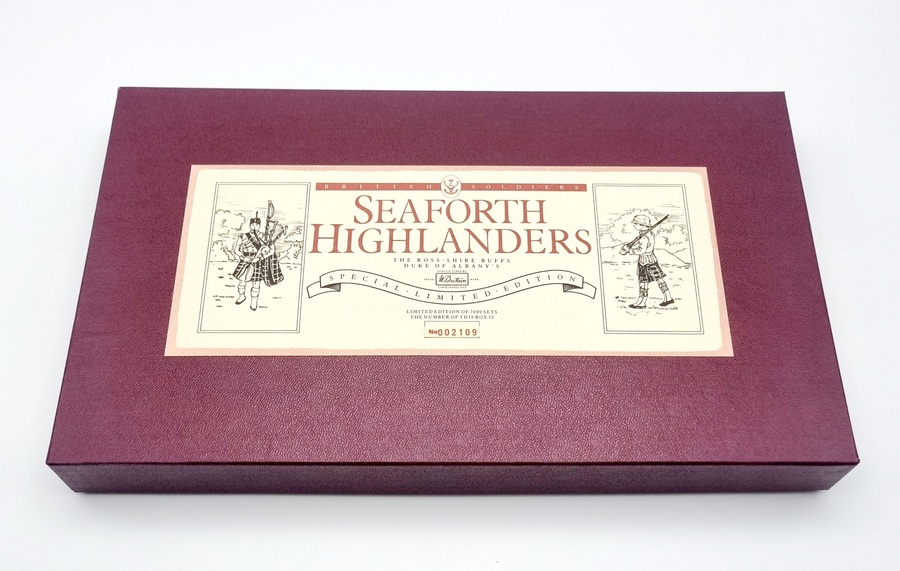 Doos met twaalf handbeschilderde tinnensoldaten Seaforth Highlanders uit de Britains Special Limetid Edition. Catalogusnummer 5188 oplagenummer 2109/7000 uit 1988. |