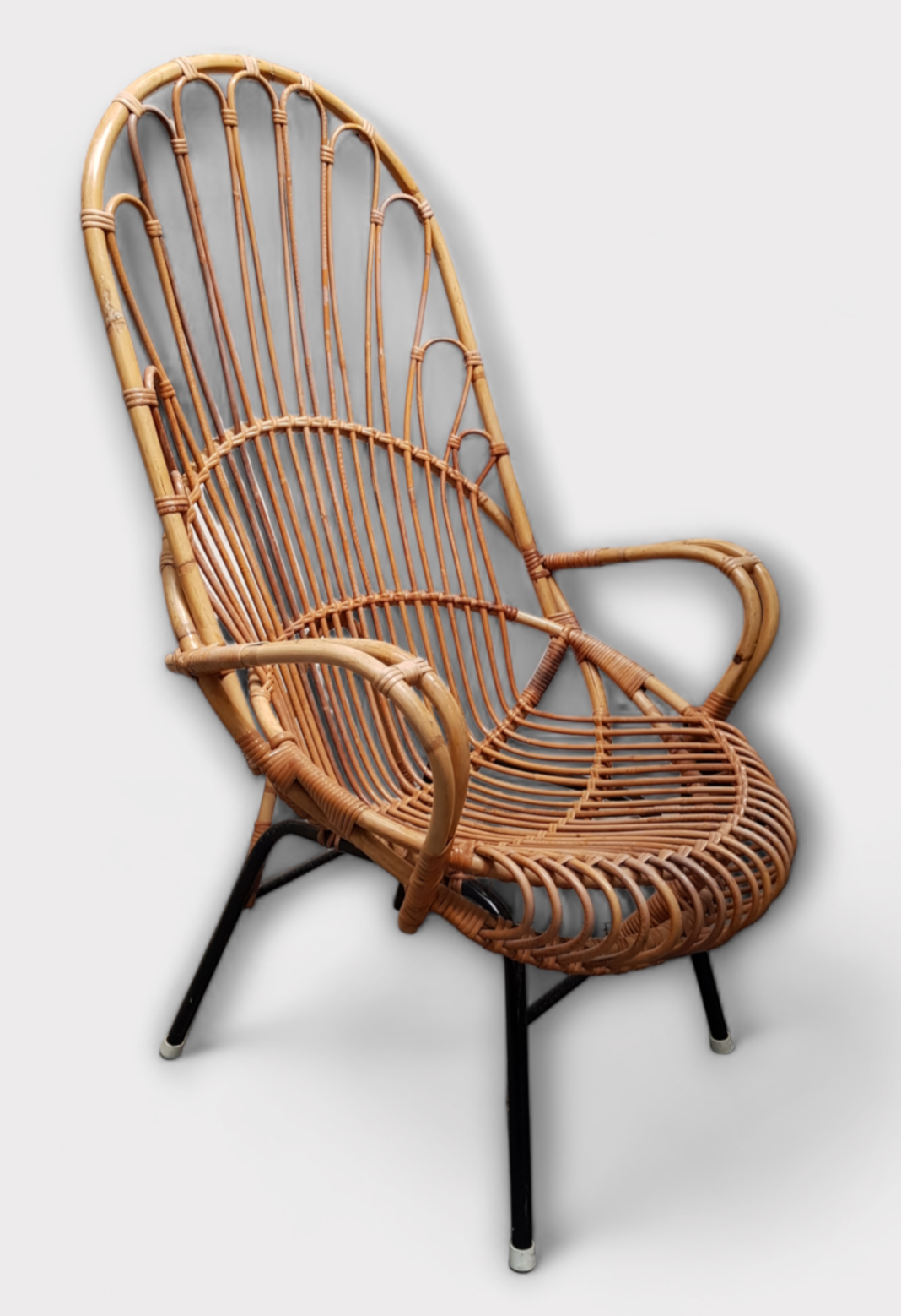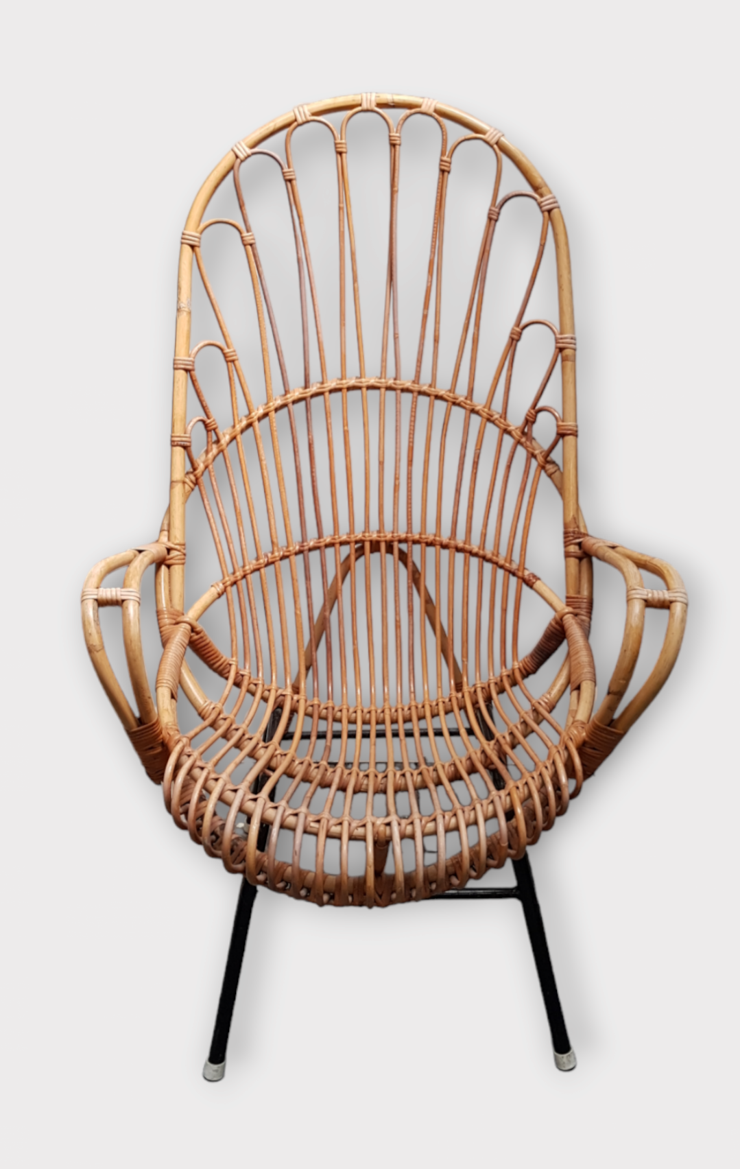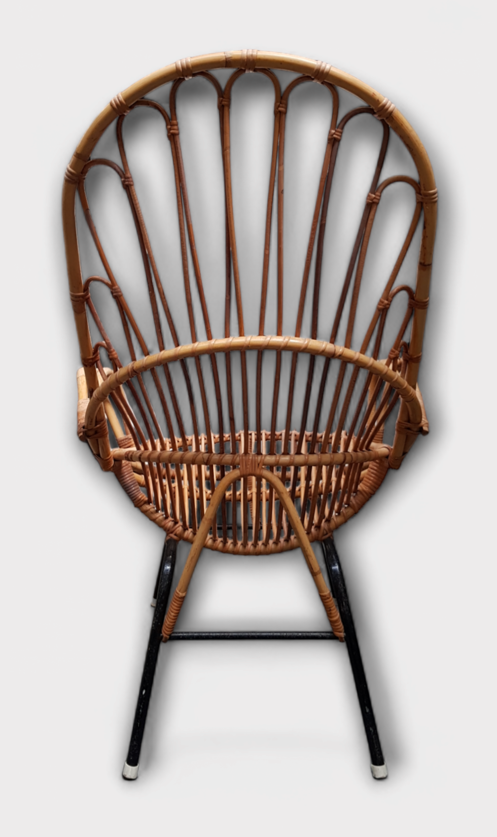 Rotan fauteuil op metalen buisframe door Rohé Noordwolde. Jaren 50/60. |