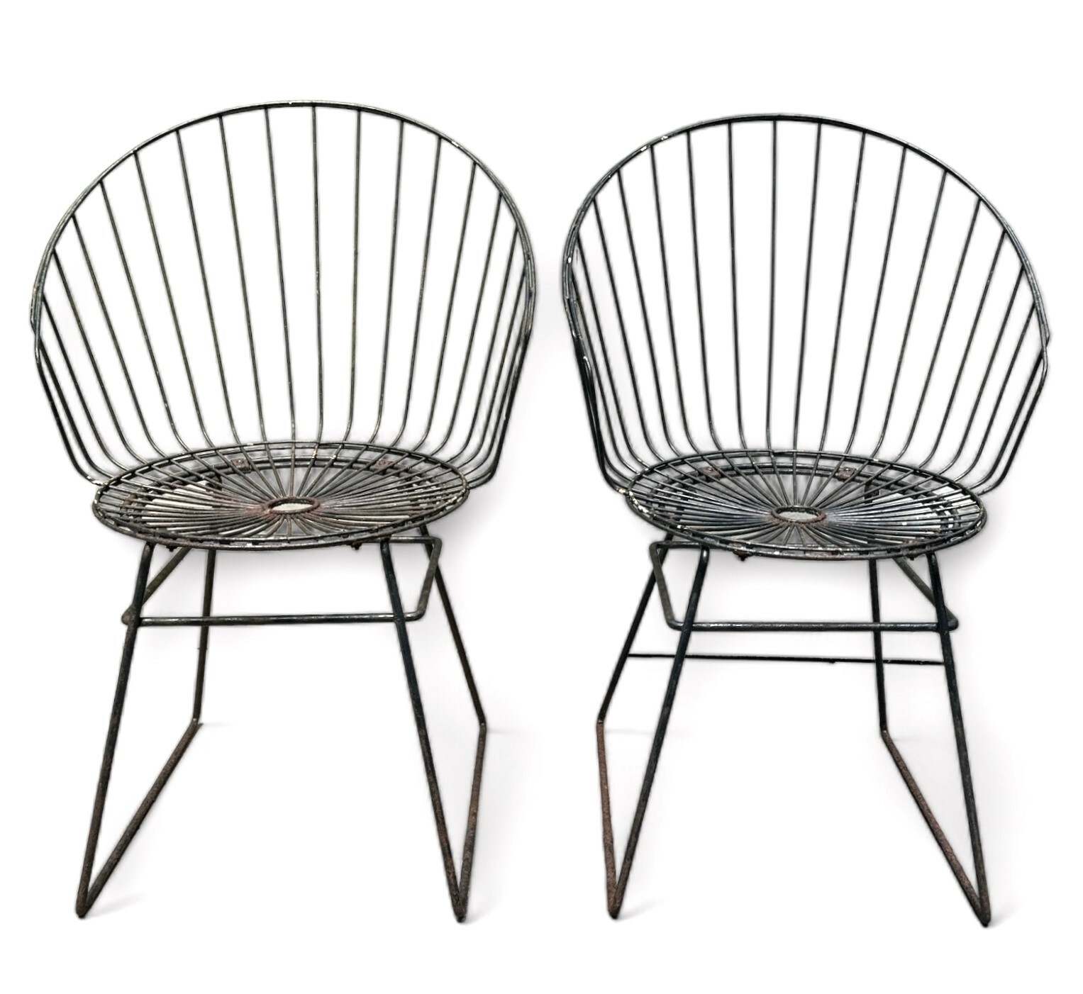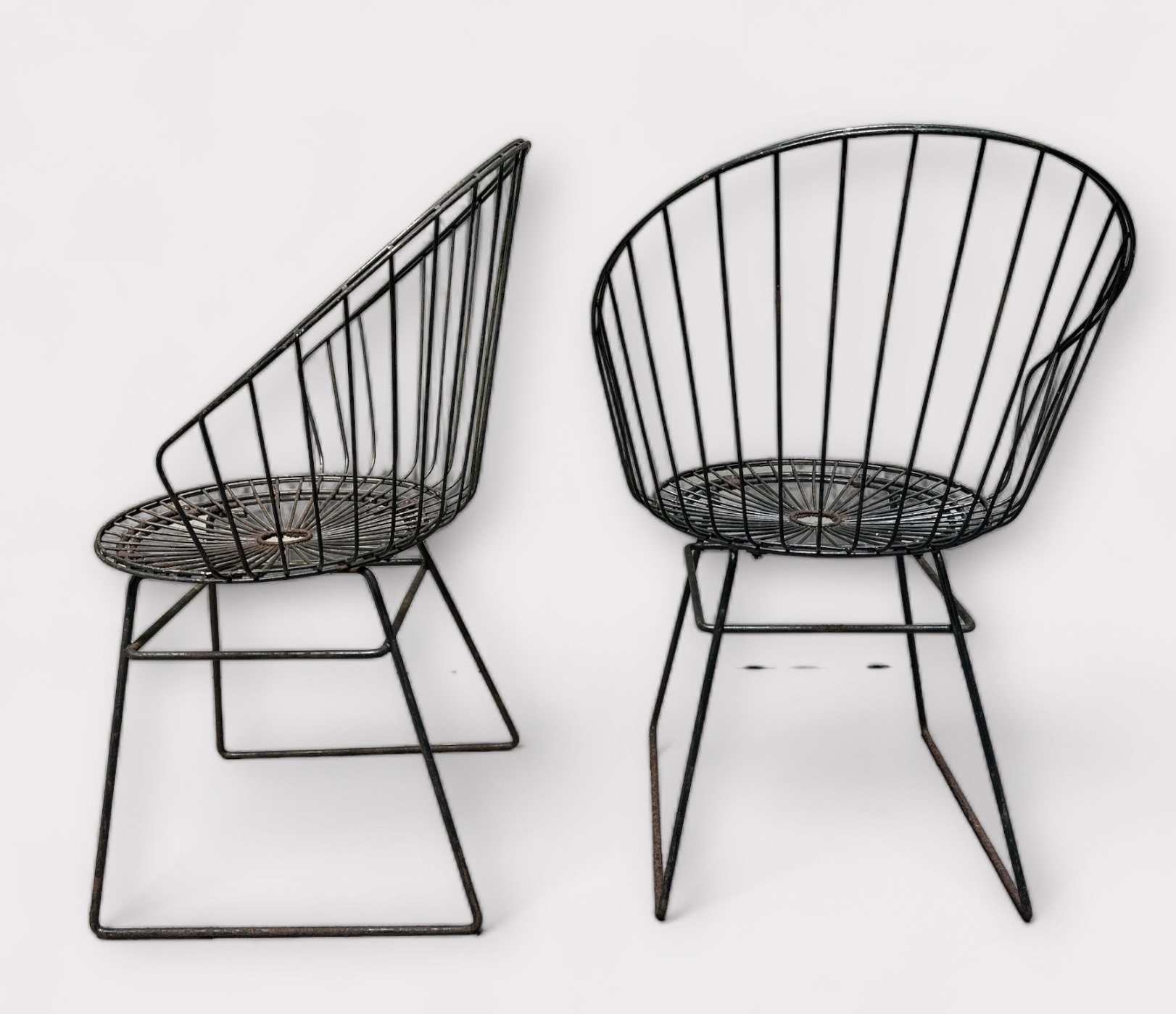 Twee metalen stoelen naar ontwerp van Cees Braakman, modelnaam Pauw. Uitgevoerd door Pastoe in de jaren 50. |