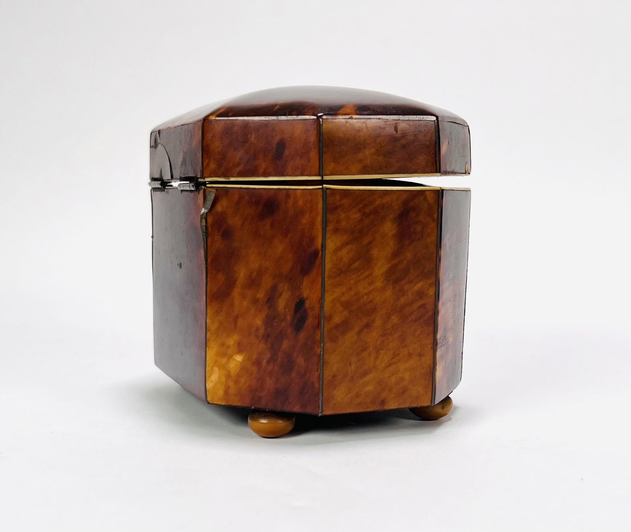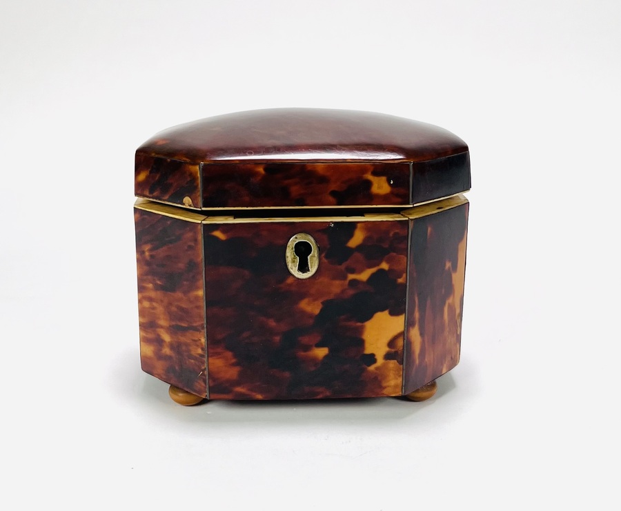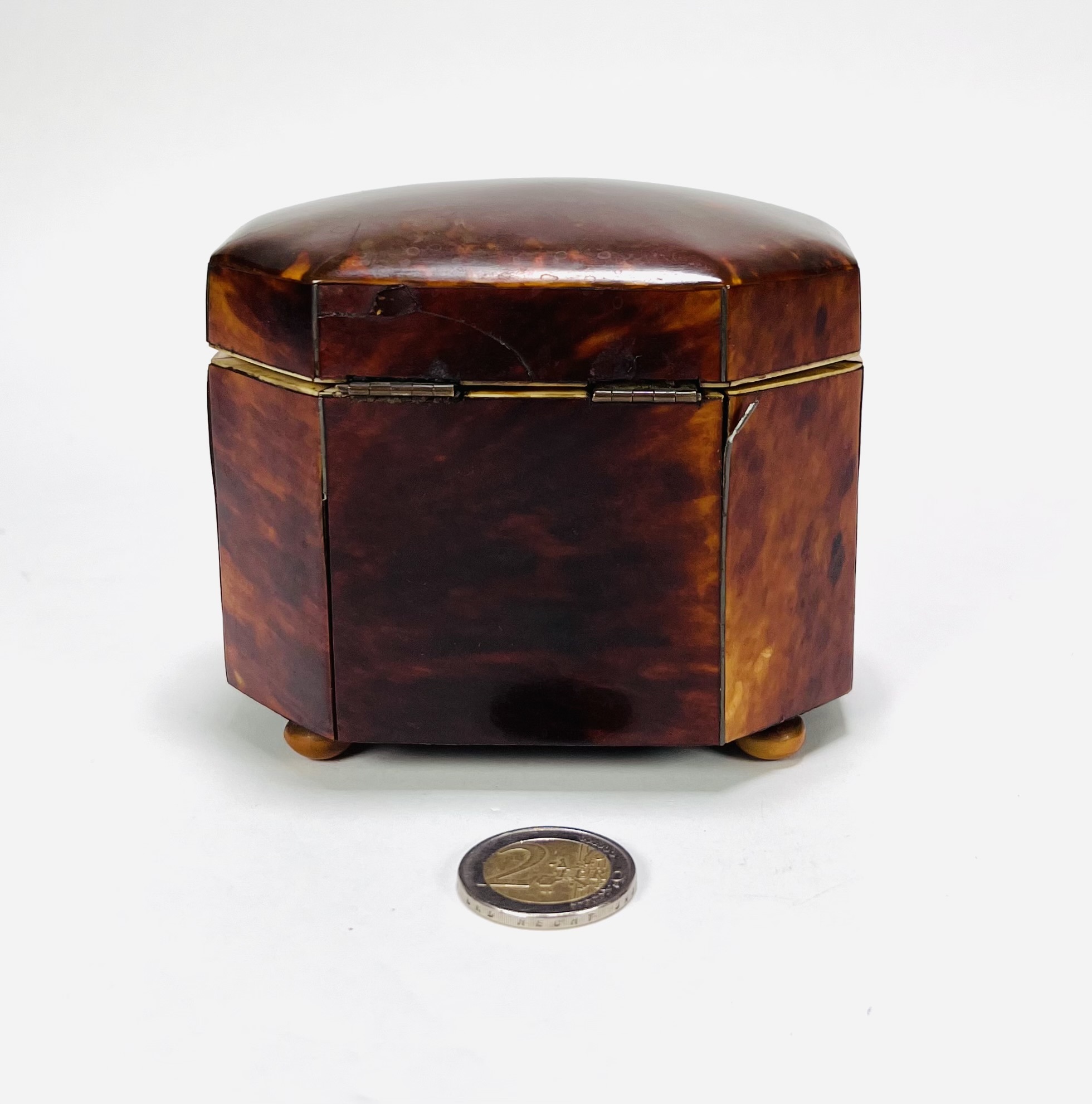 Tortoise theedoos met inwendig deksel, begin 1900. |