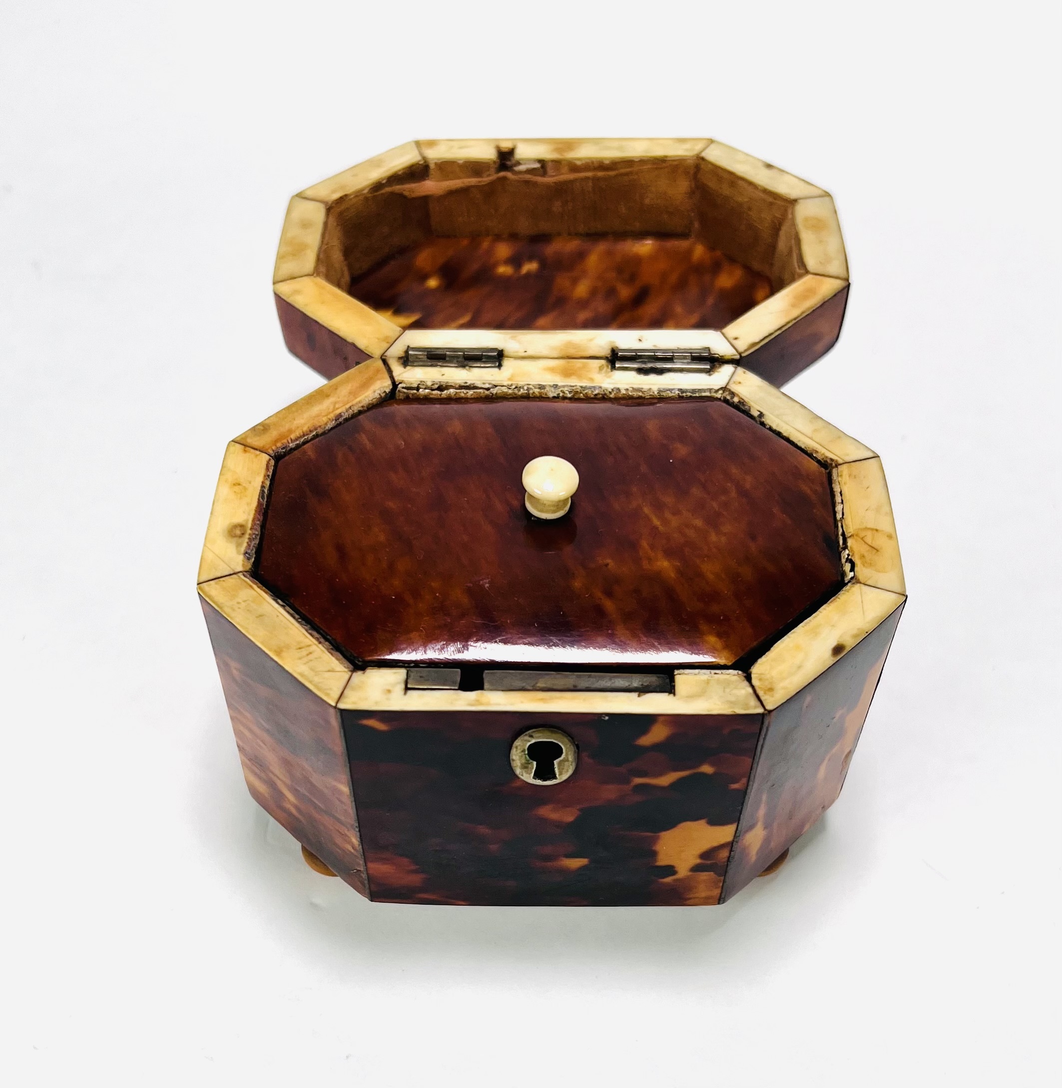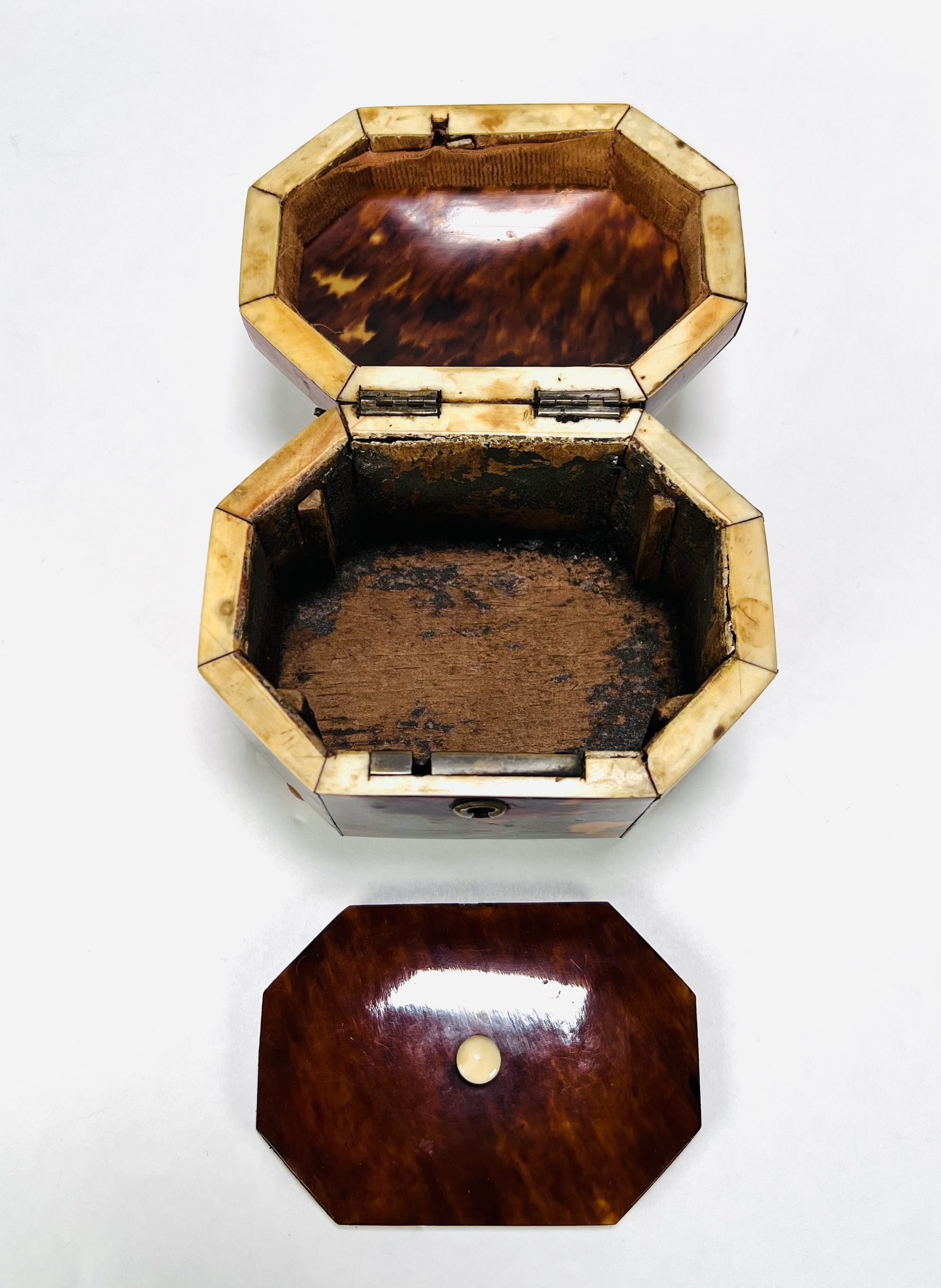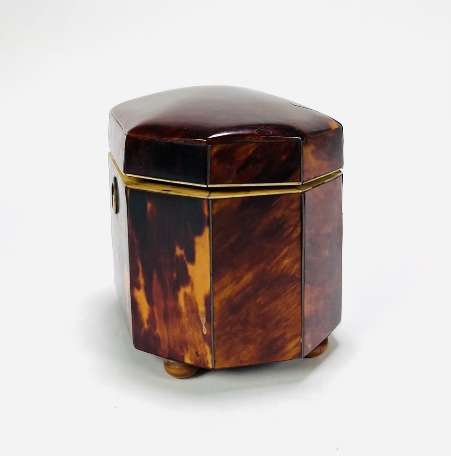 Tortoise theedoos met inwendig deksel, begin 1900. |