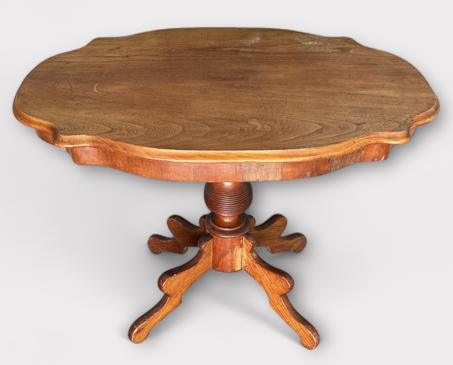 Essenhouten wijntafel/bijzettafel in Biedermeier stijl met gecontourd tafelblad. Eerste helft 20e eeuw. |
