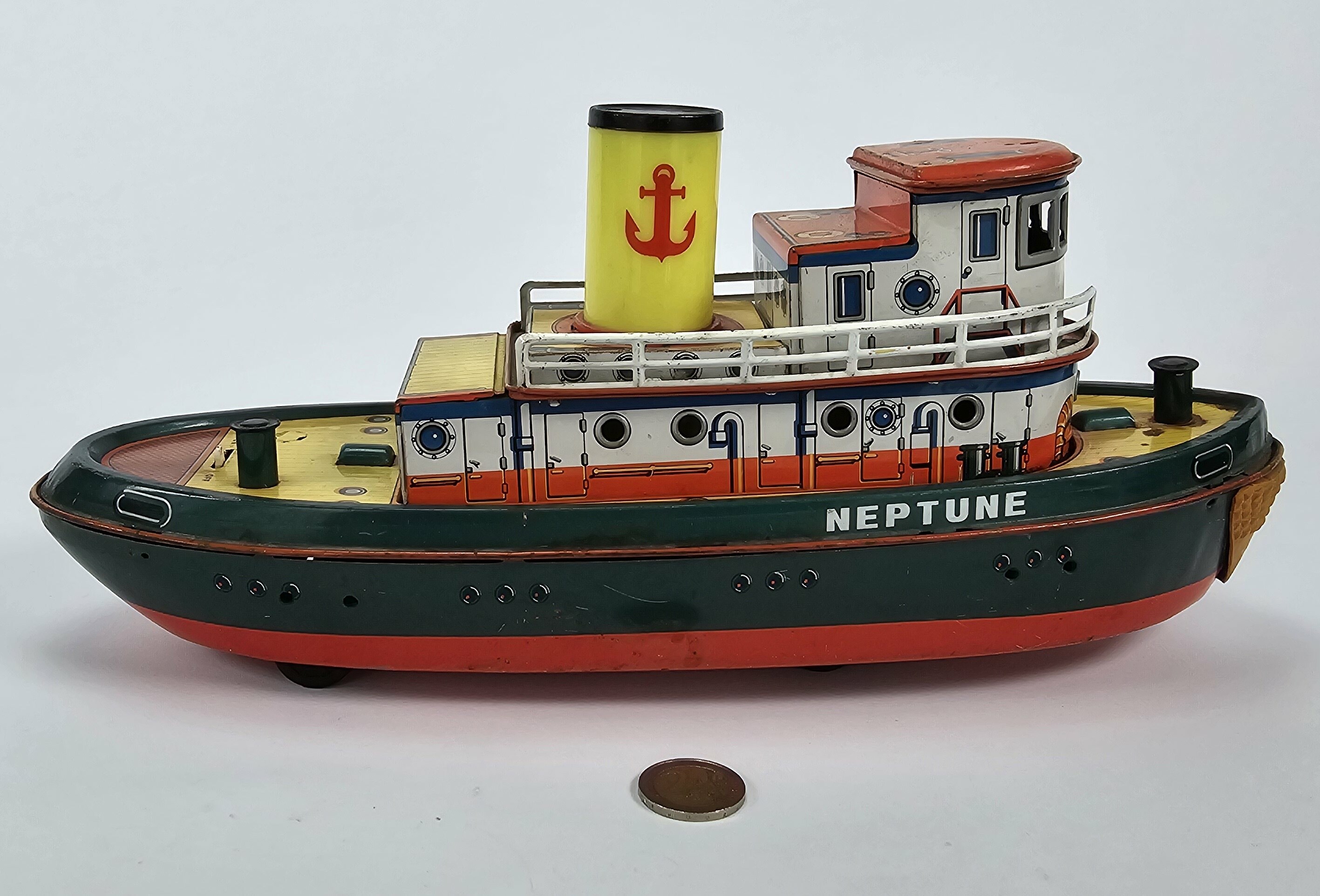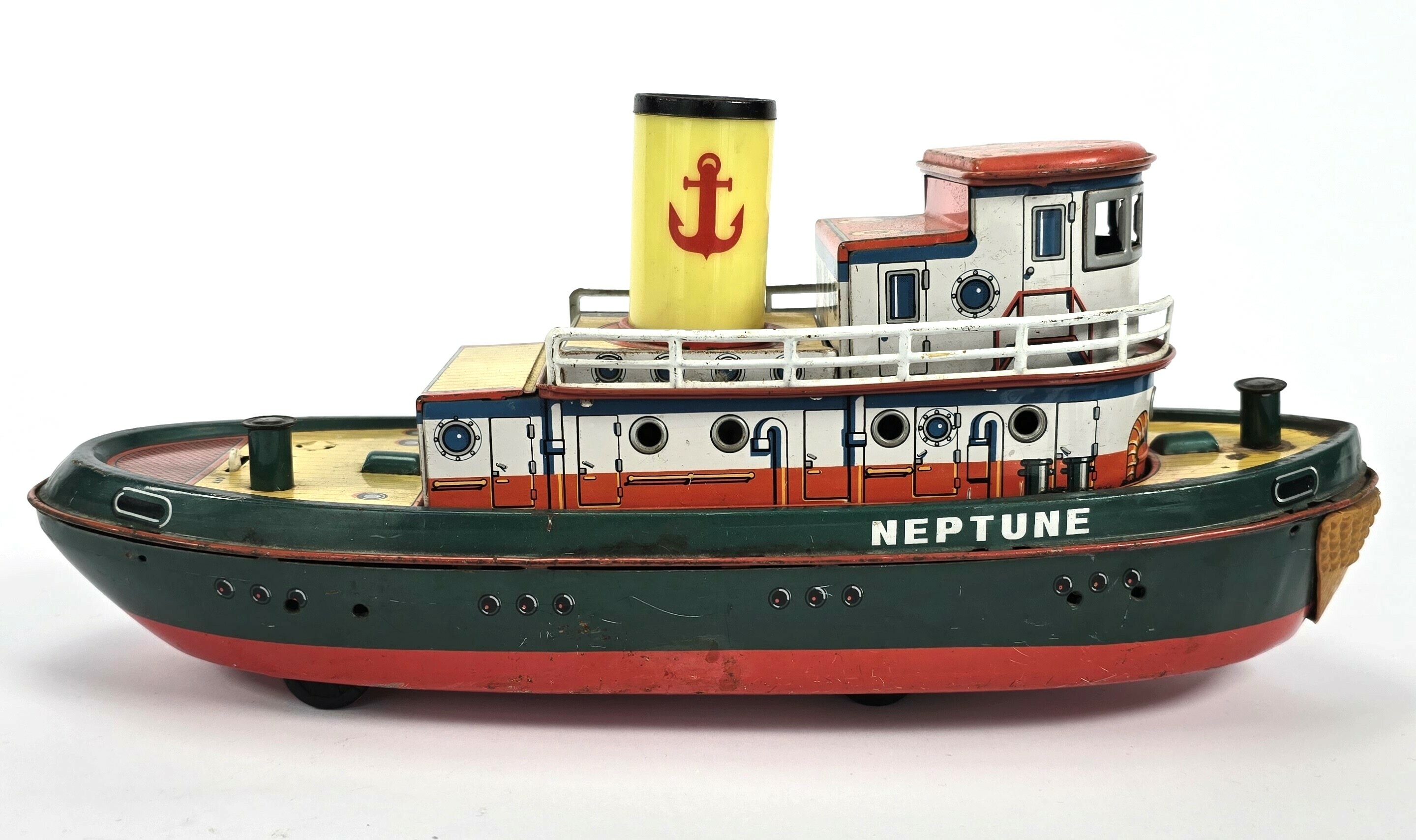 Blikken stoomboot Neptune gemaakt door Modern Toy's. Japan, jaren 50. |