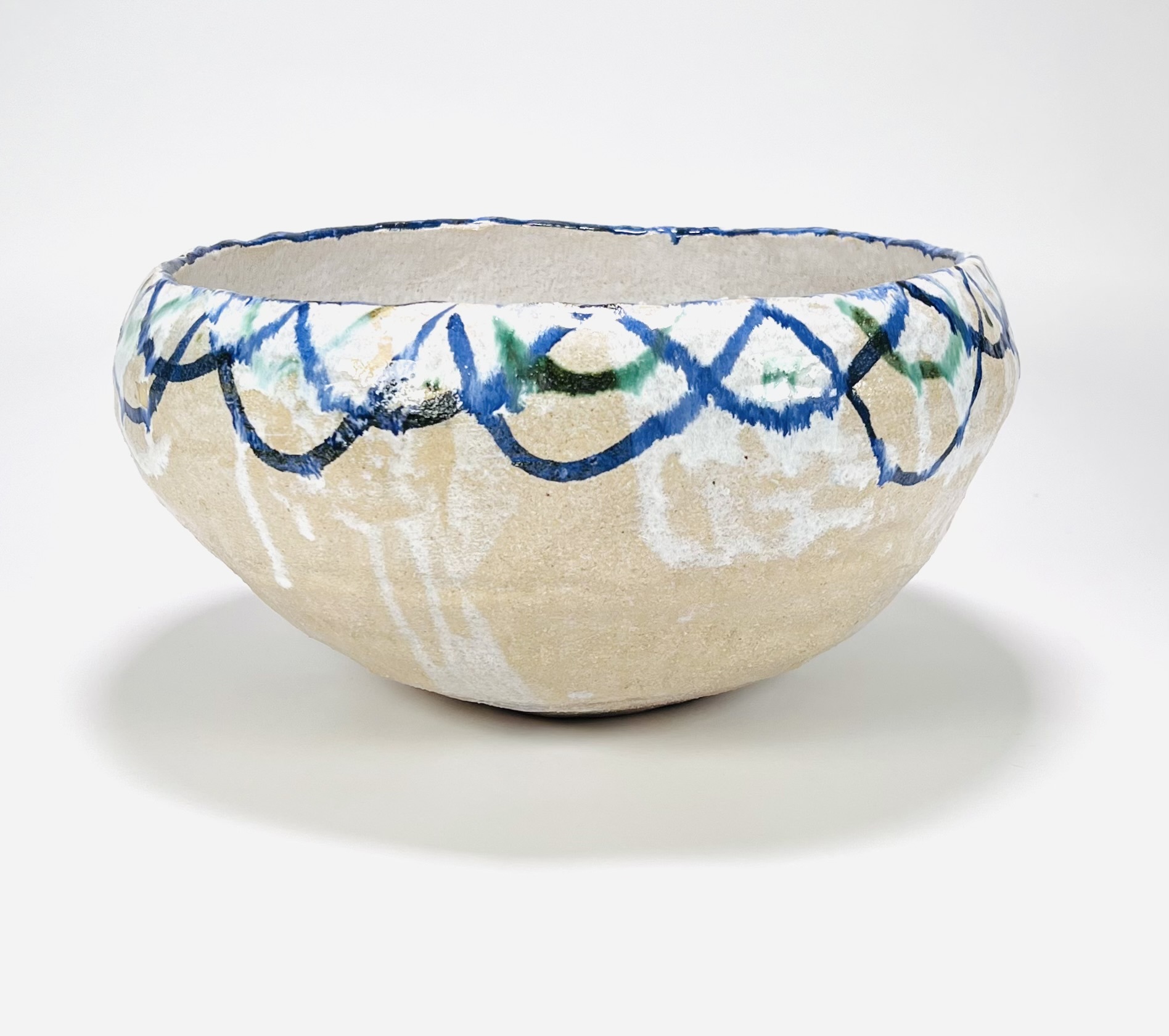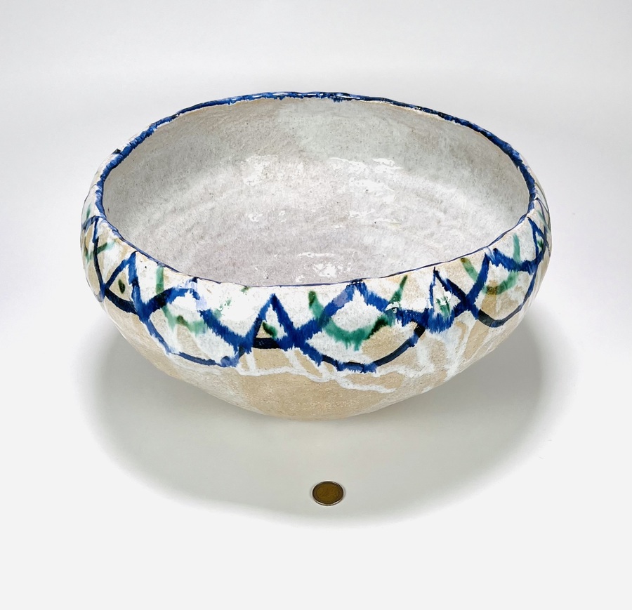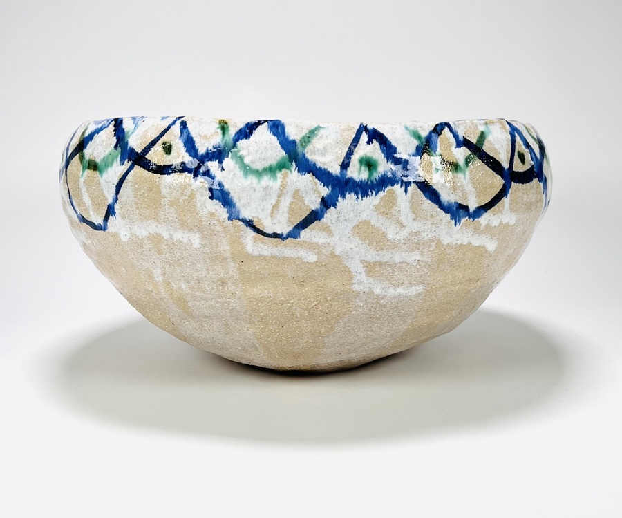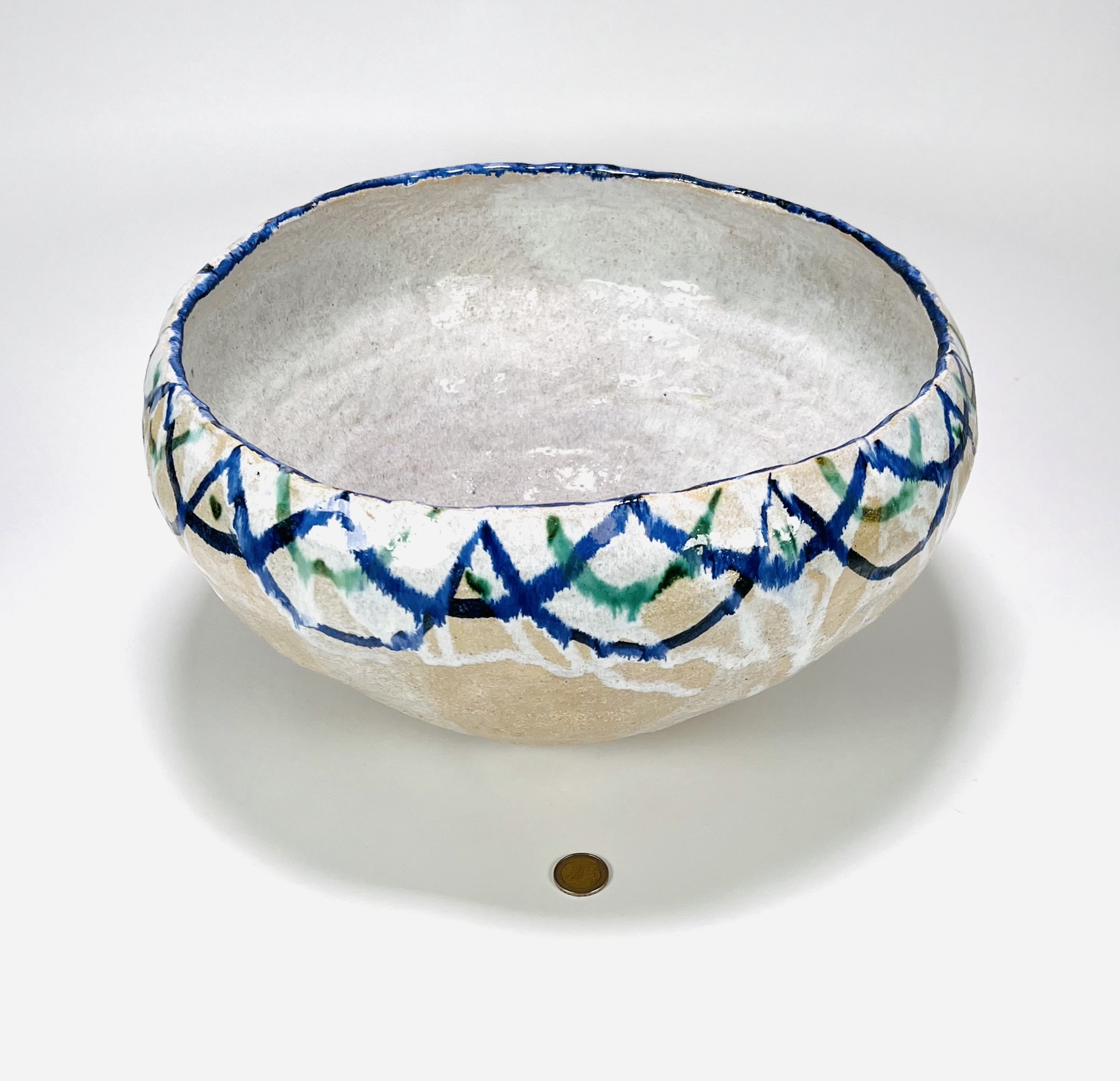 Keramieken Fajalauza schaal met blauw, groen en zwart geglazuurd slinger decor. Spanje, 20e eeuw. |