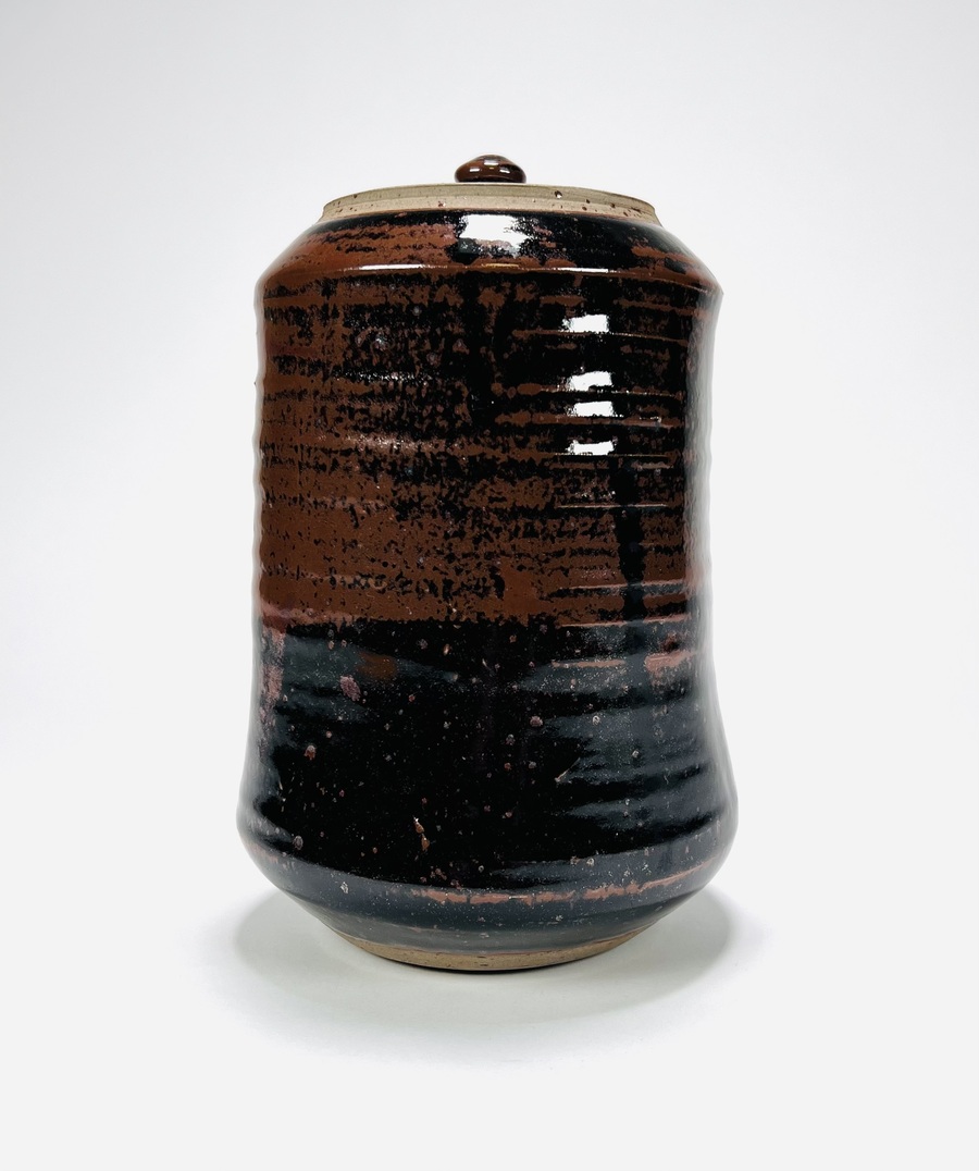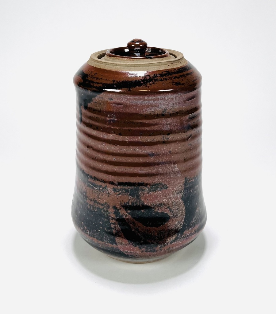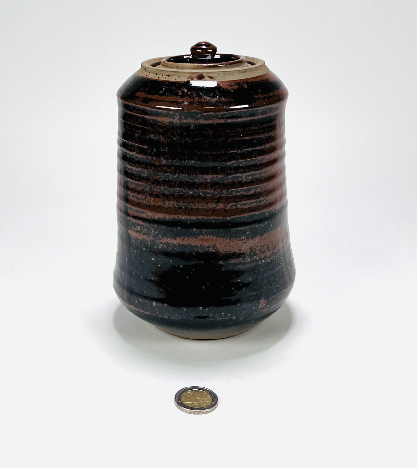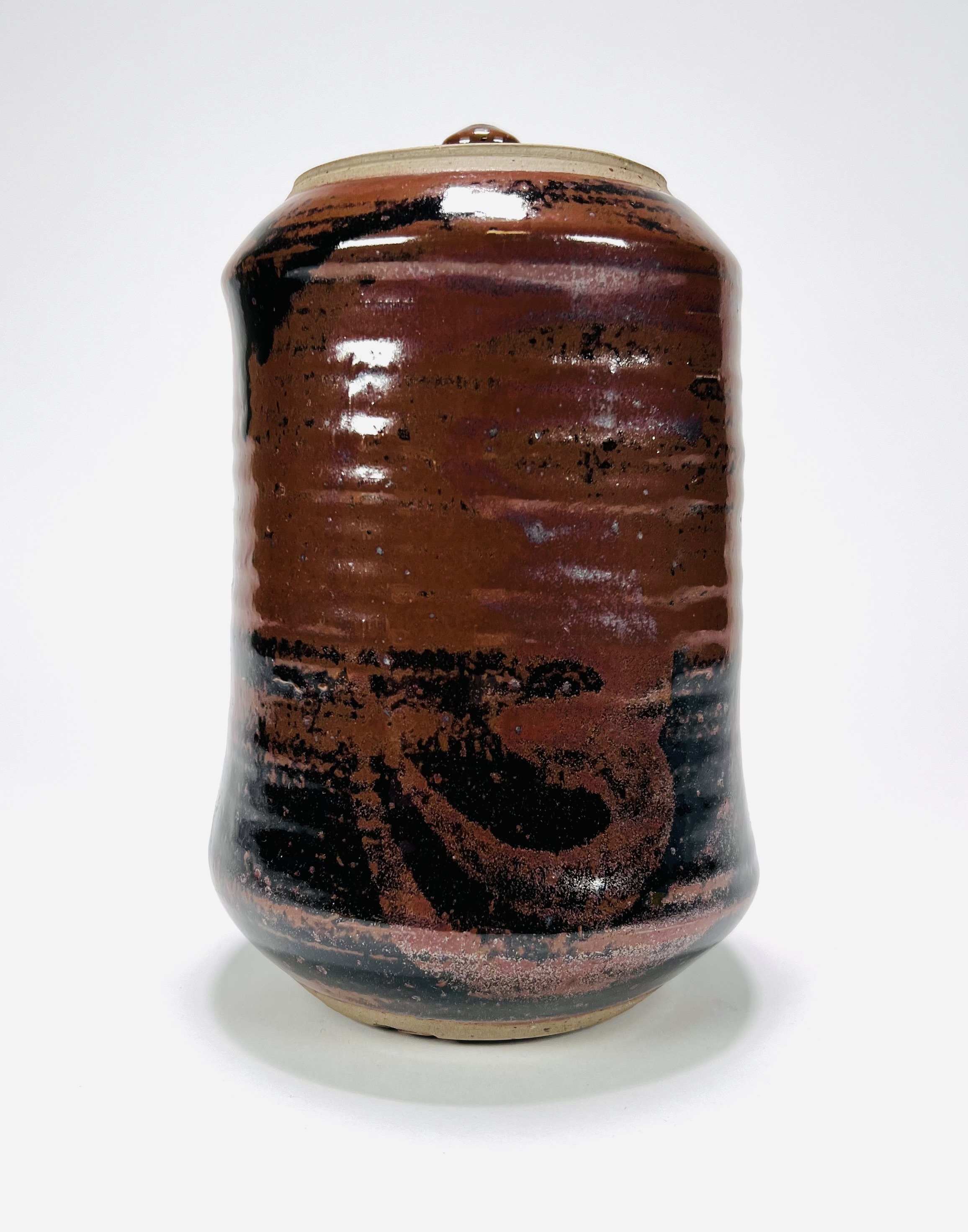 Geglazuurde aardewerken dekselpot door Ronding Keramiek, 's-Hertogenbosch. Aan de onderzijde gemerkt, vierde kwart 20e eeuw. |
