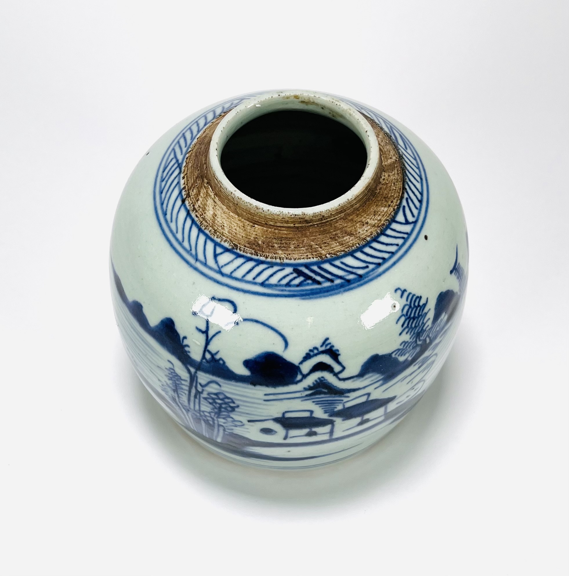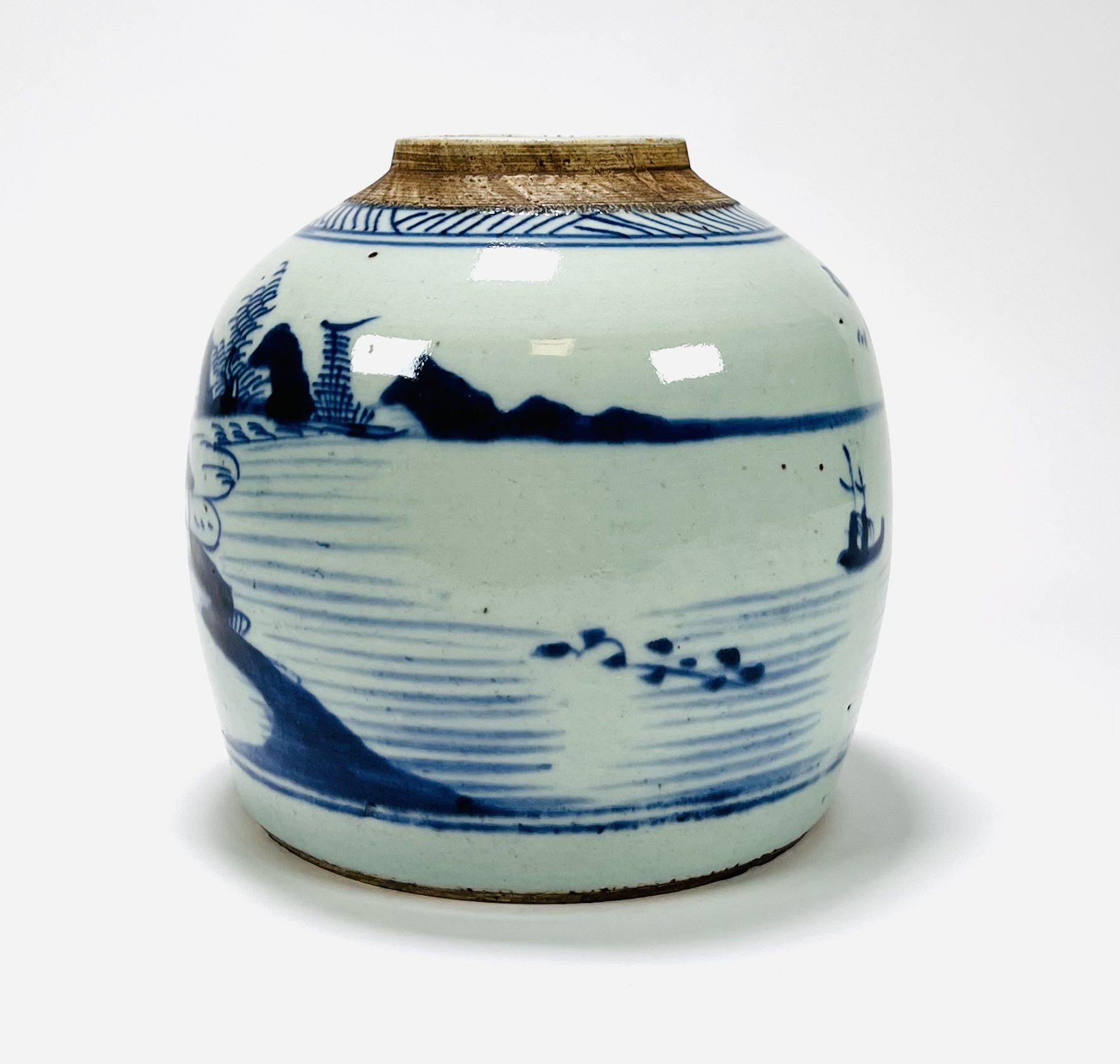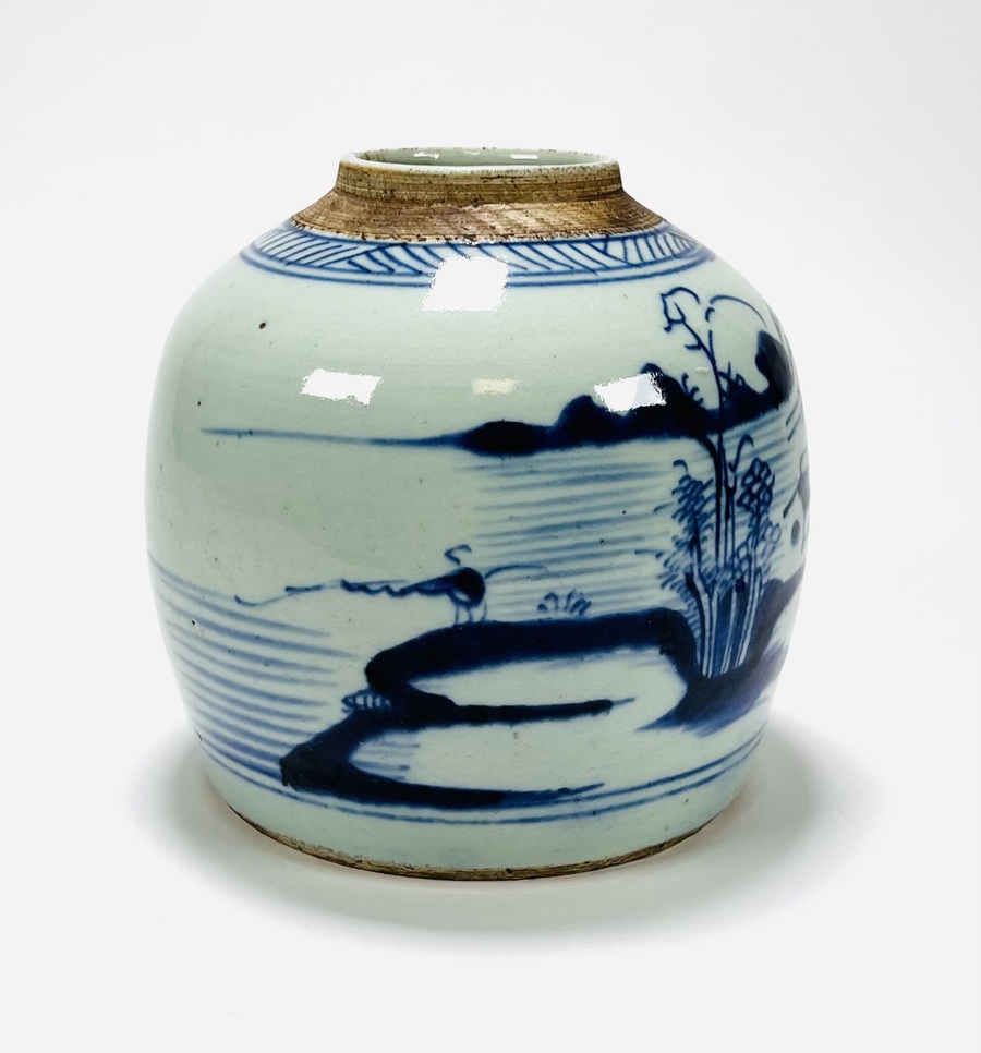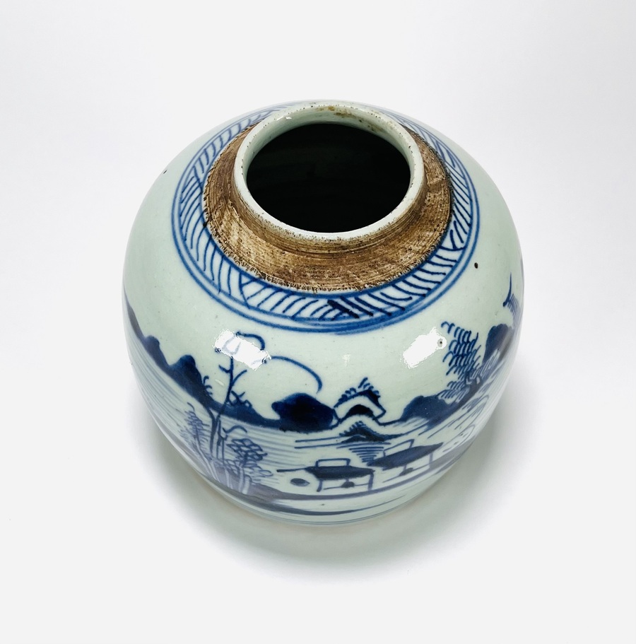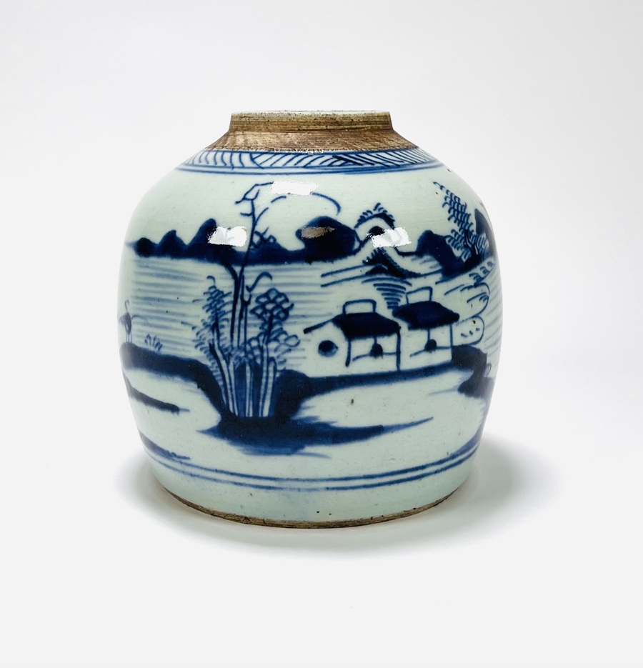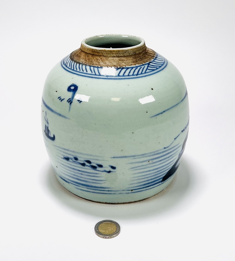 Chinese porseleinen handbeschilderde gemberpot met landschappelijk decor en zeegezicht, 19e eeuw. |