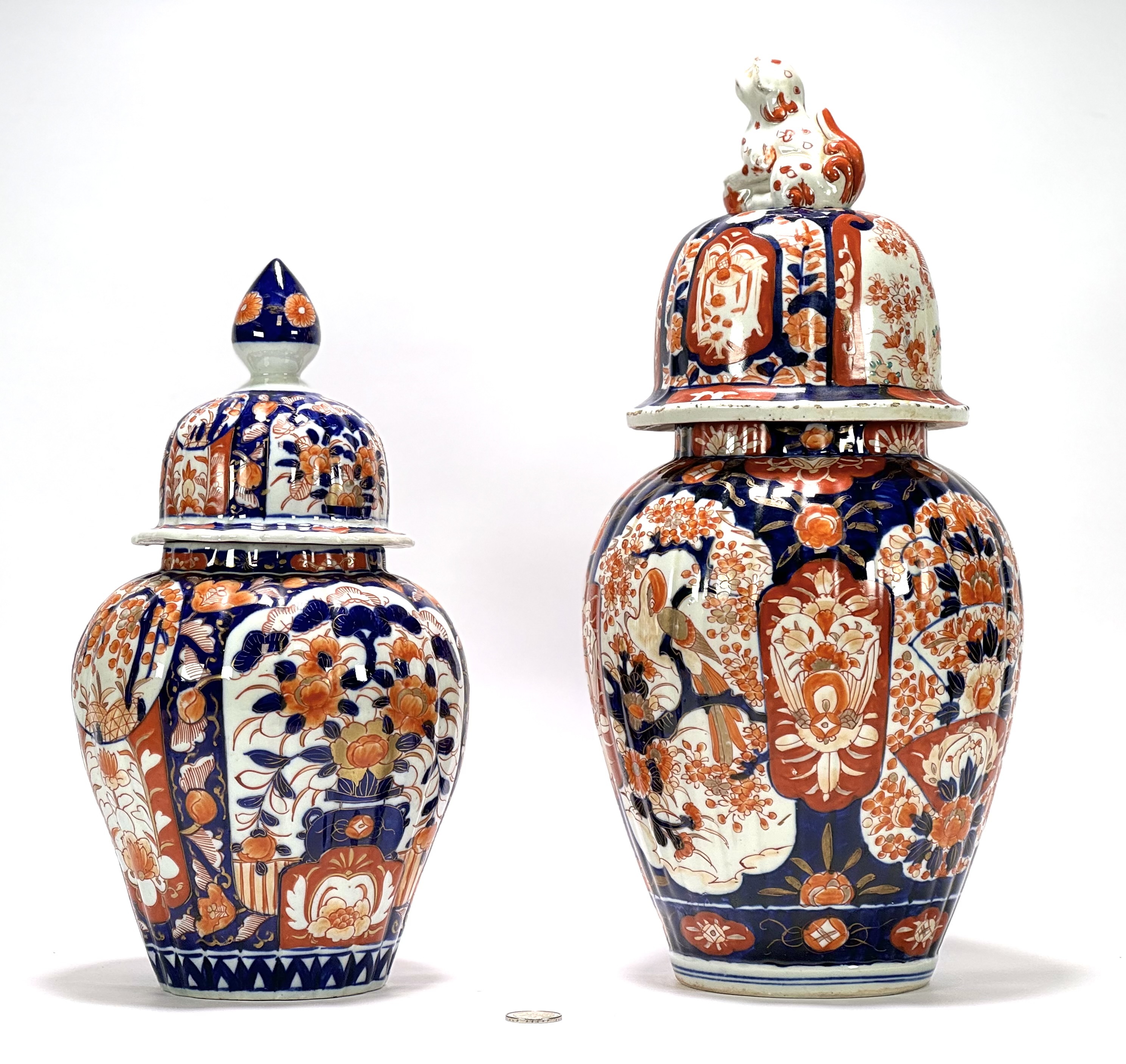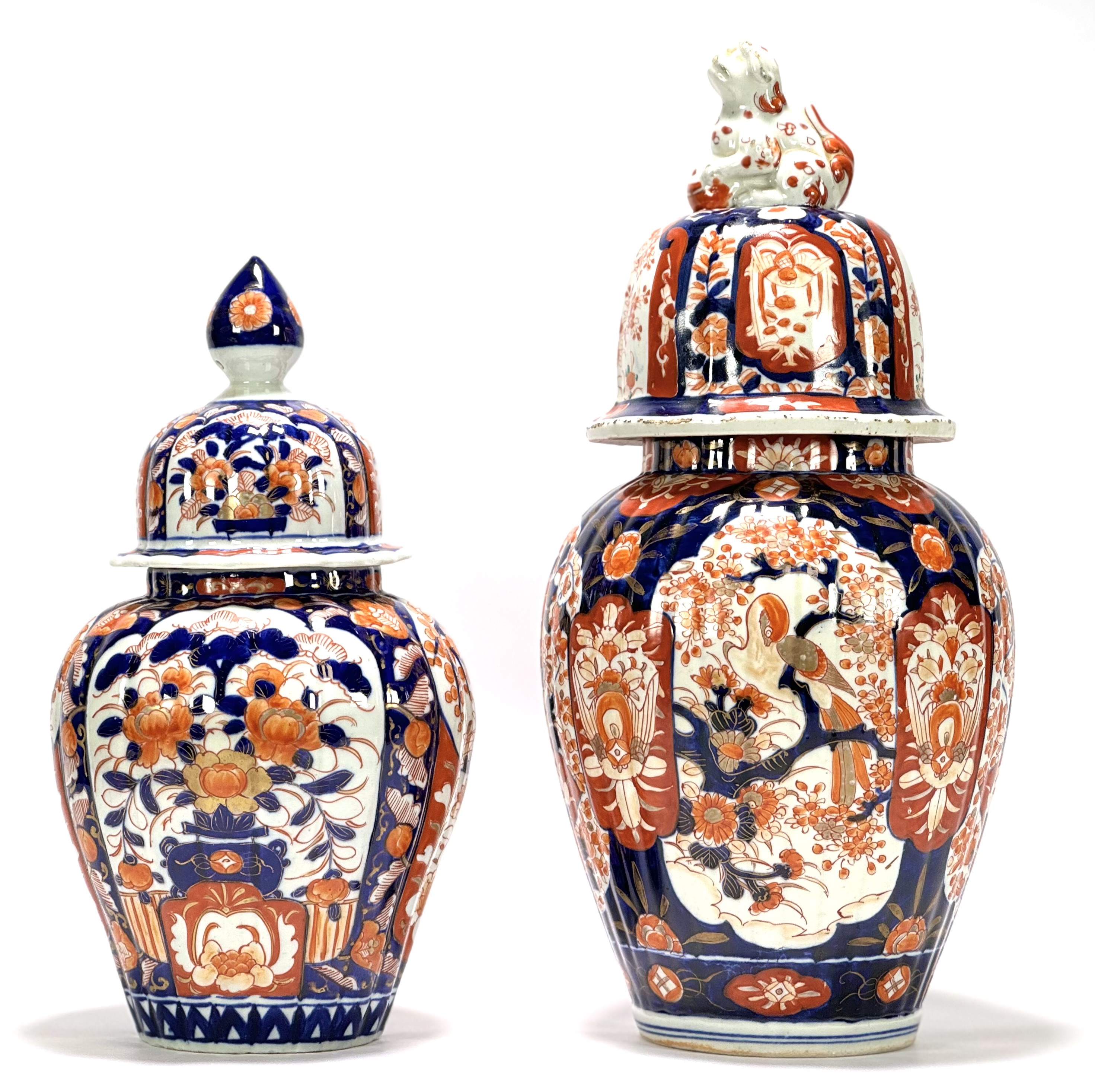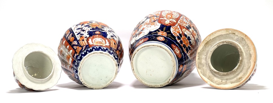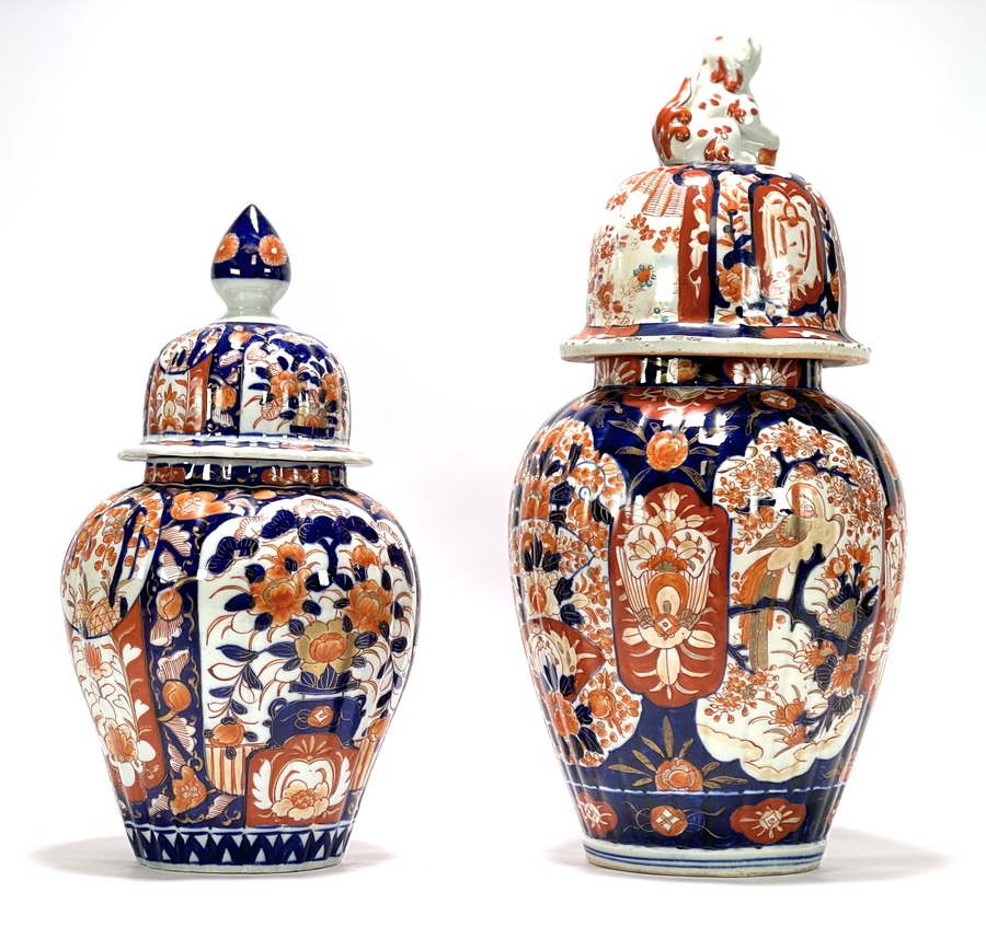 Twee handbeschilderde Japanse Imari porseleinen dekselvazen. Begin 1900. |