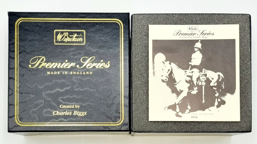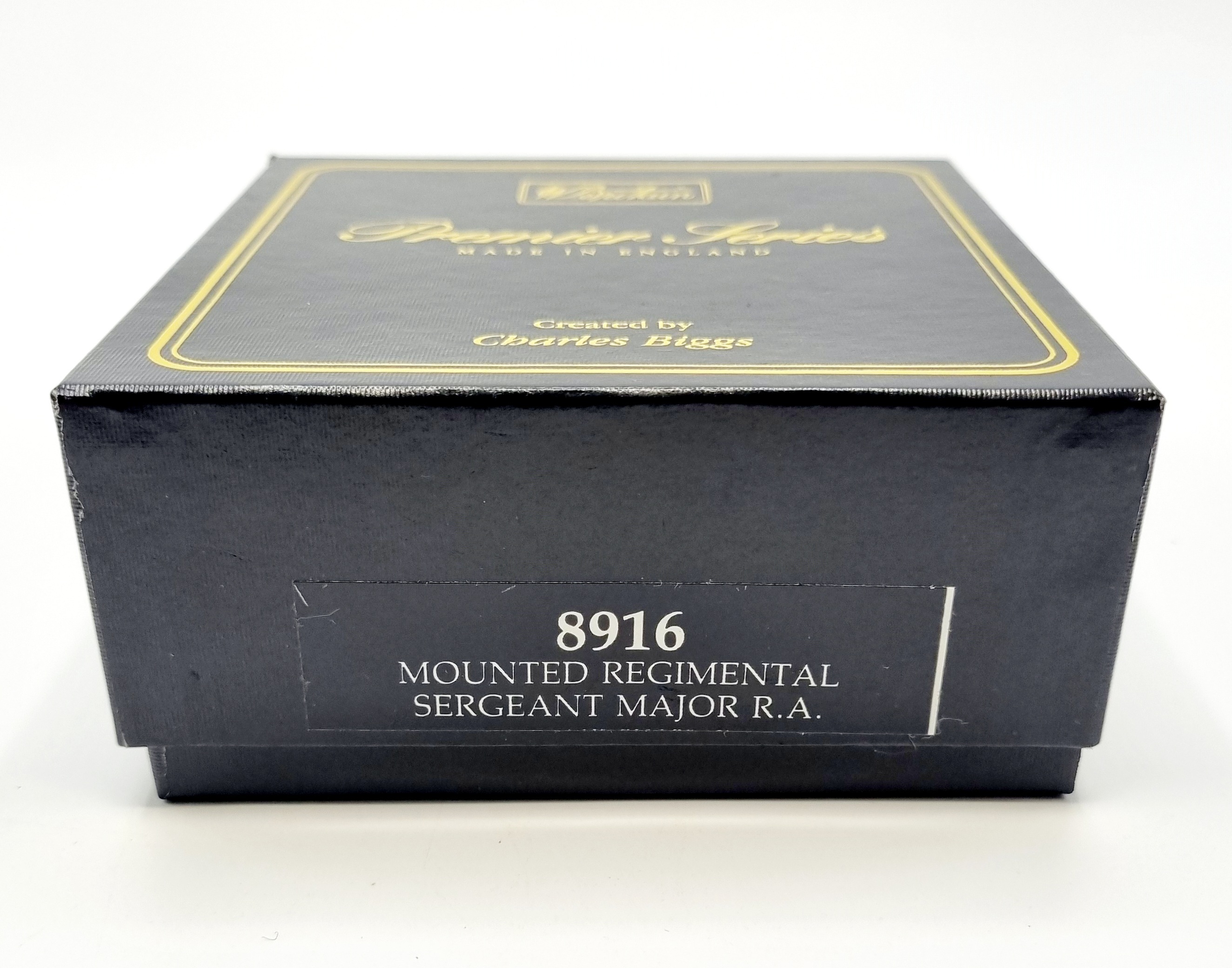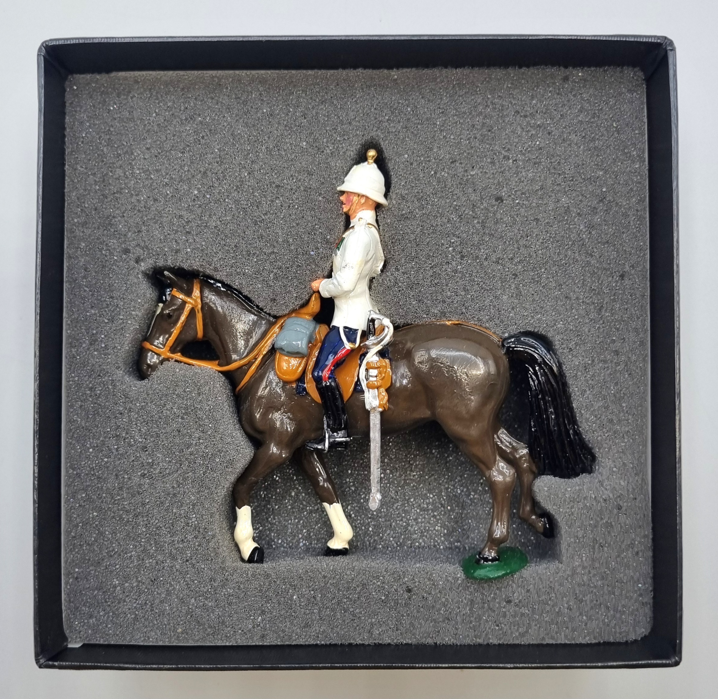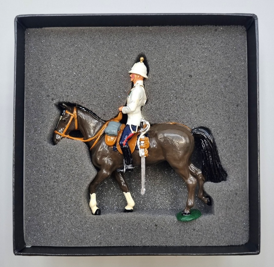 Uit de W. Britains Premier Series ontworpen door Charles Biggs doosje met een handbeschilderde tinnen cavalerist. Catalogusnummer 8916 uit 1995. |