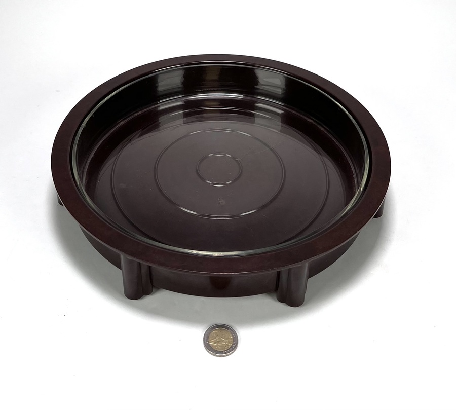 Bakelieten Philite Art Deco schaal met glasinzet. Aan de onderzijde vermelding van modelnummer. Gefabriceerd door Philips in de jaren 30. |